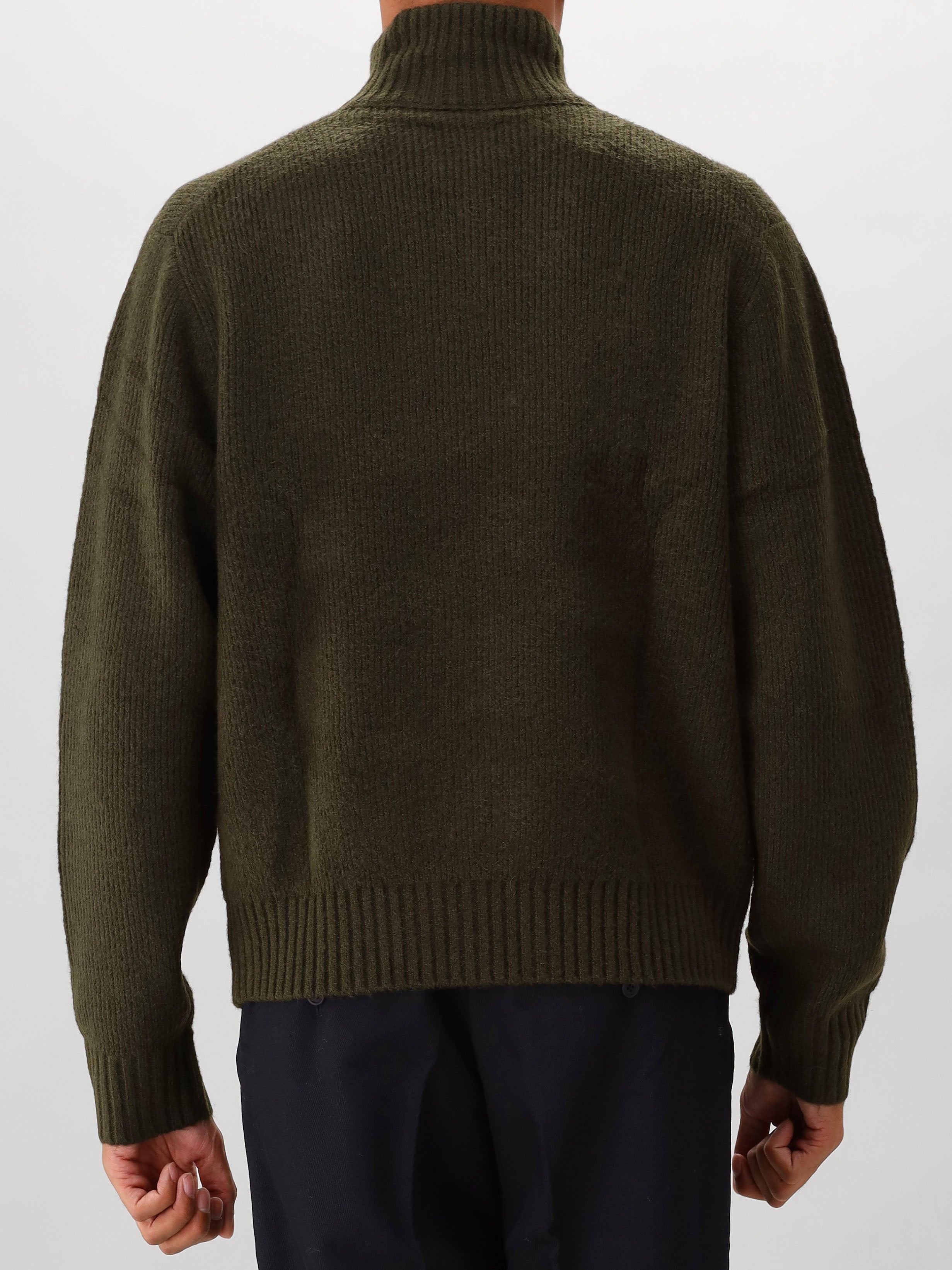 Deze groene gebreide trui van ØLÅF heeft een halve rits. De gebreide trui is zacht, comfortabel en rekbaar.