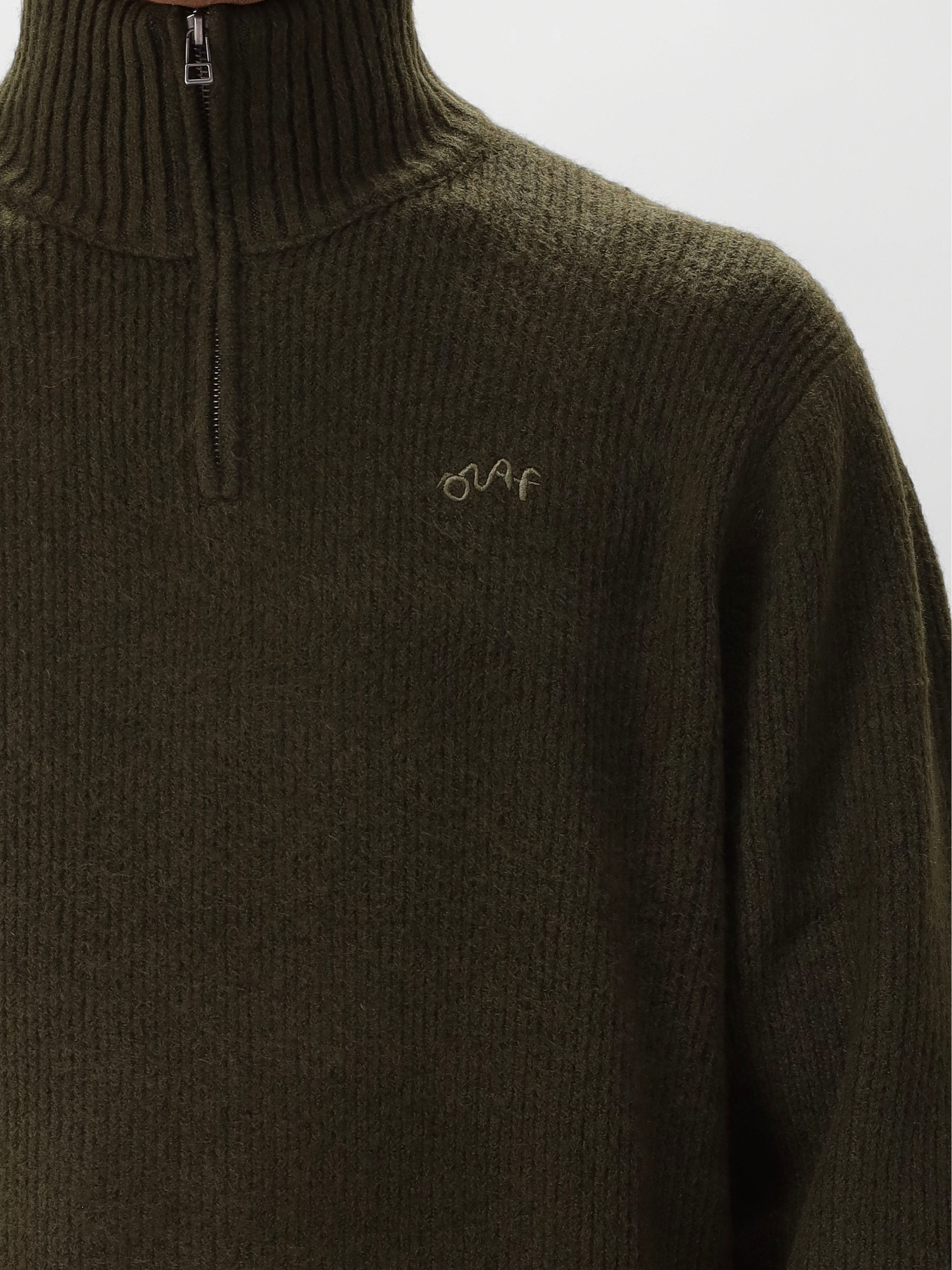 Ølaf Gebreide Trui Groen Signature Knitted Zip Mock