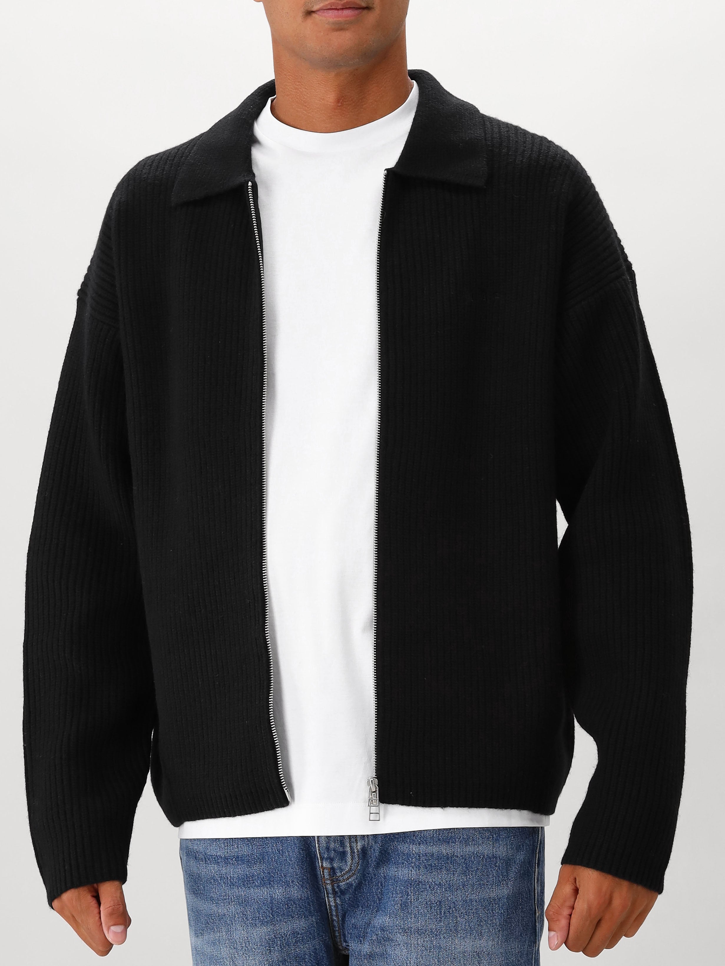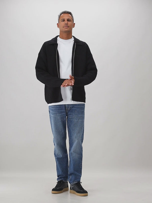 Ølaf Gebreide Vest Zwart Knitted Zip Cardigan