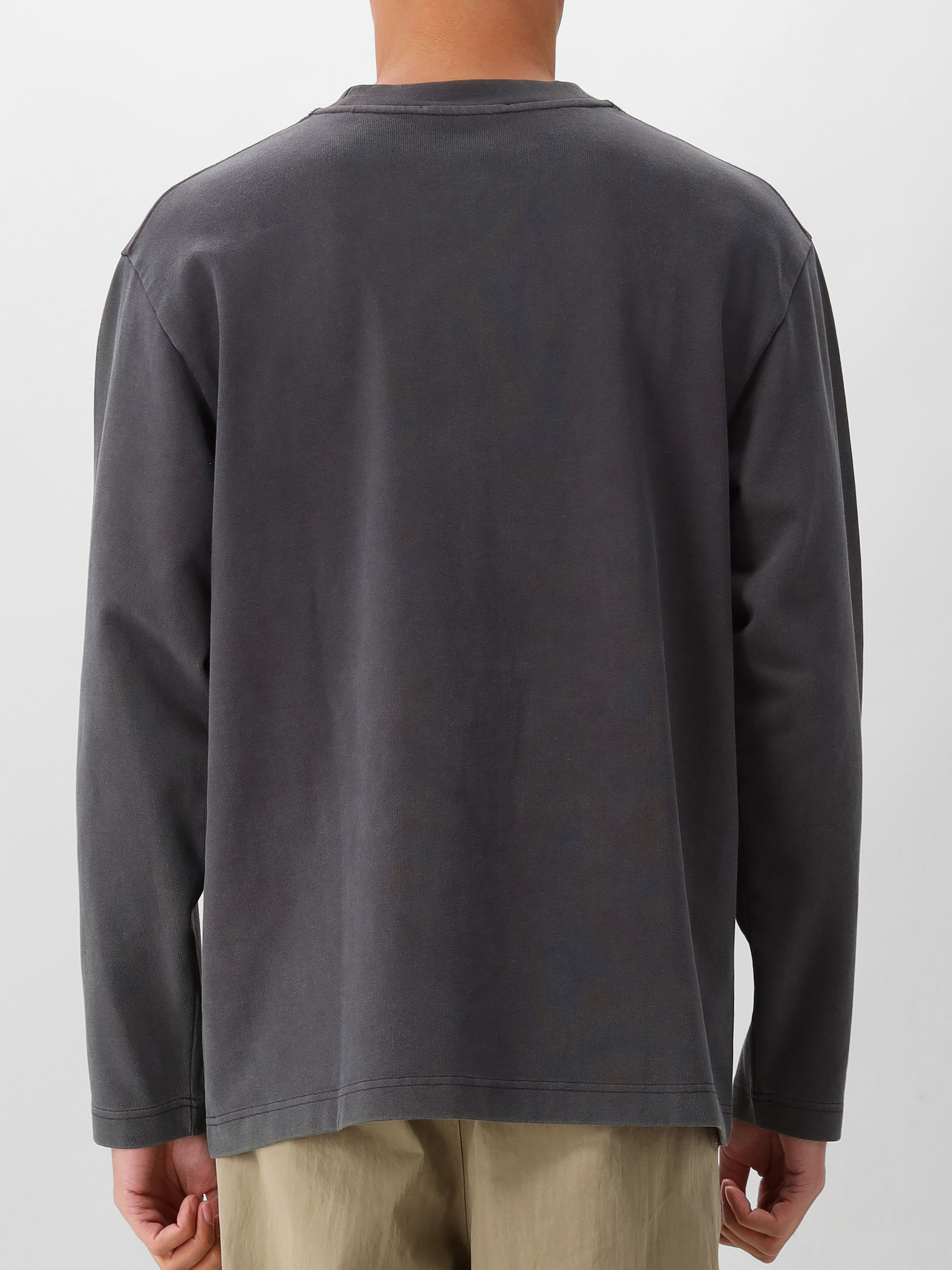 Deze grijze longsleeve van Ølaf met washed finish is een veelzijdig en comfortabel item voor jouw garderobe. Het shirt heeft een moderne washed uitstraling die zorgt voor een relaxte en eigentijdse look. De lange mouwen maken dit item geschikt voor het hele jaar door en perfect voor het creëren van gelaagde outfits. De slongsleeve heeft de dikte van een sweater.