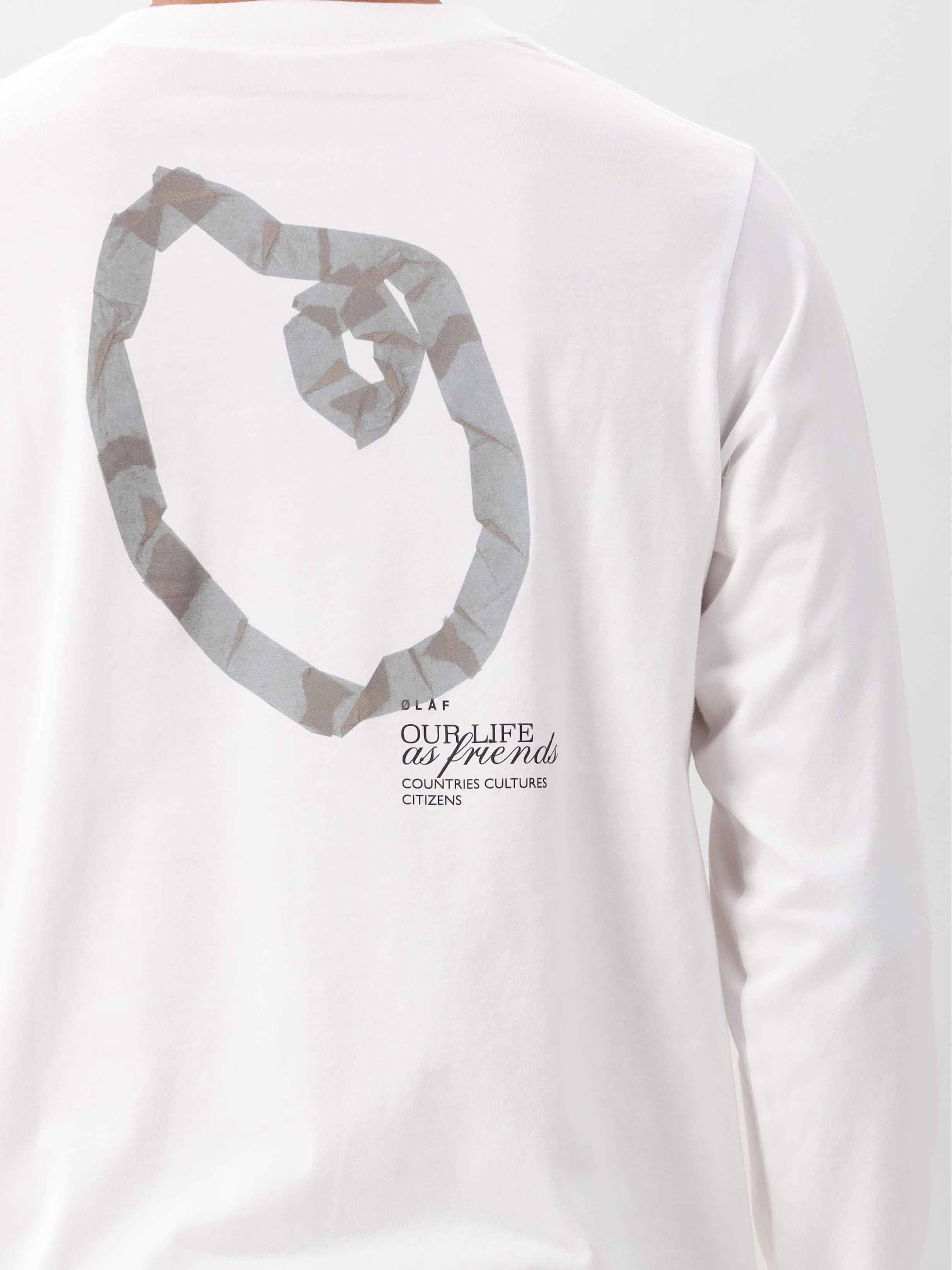 Het Ølaf logo en de tape palette graphic zijn subtiel verwerkt, wat zorgt voor een artistieke maar niet overdreven uitstraling. Deze longsleeve is de perfecte keuze voor de moderne man die op zoek is naar een uniek kledingstuk met een creatieve touch.