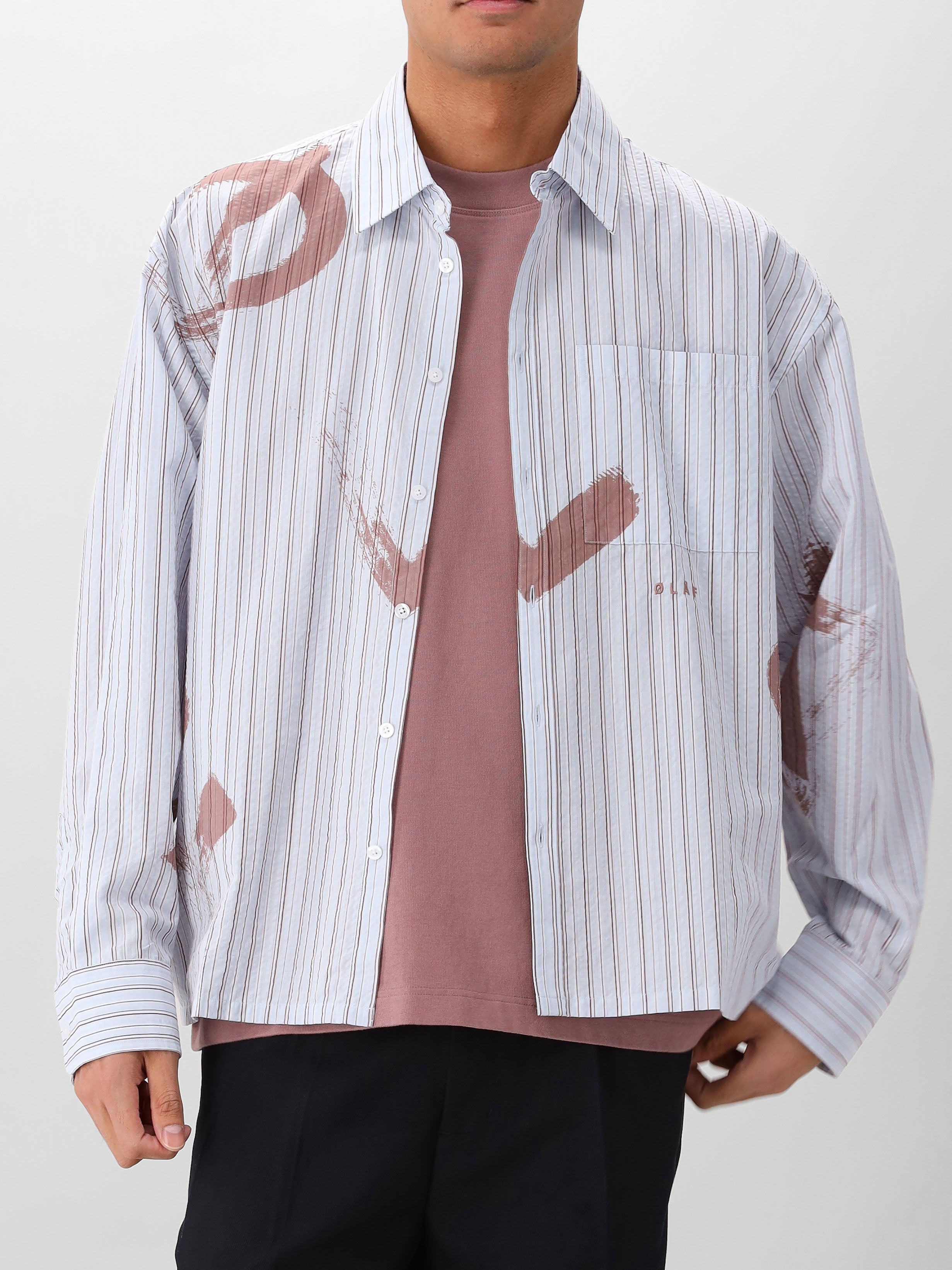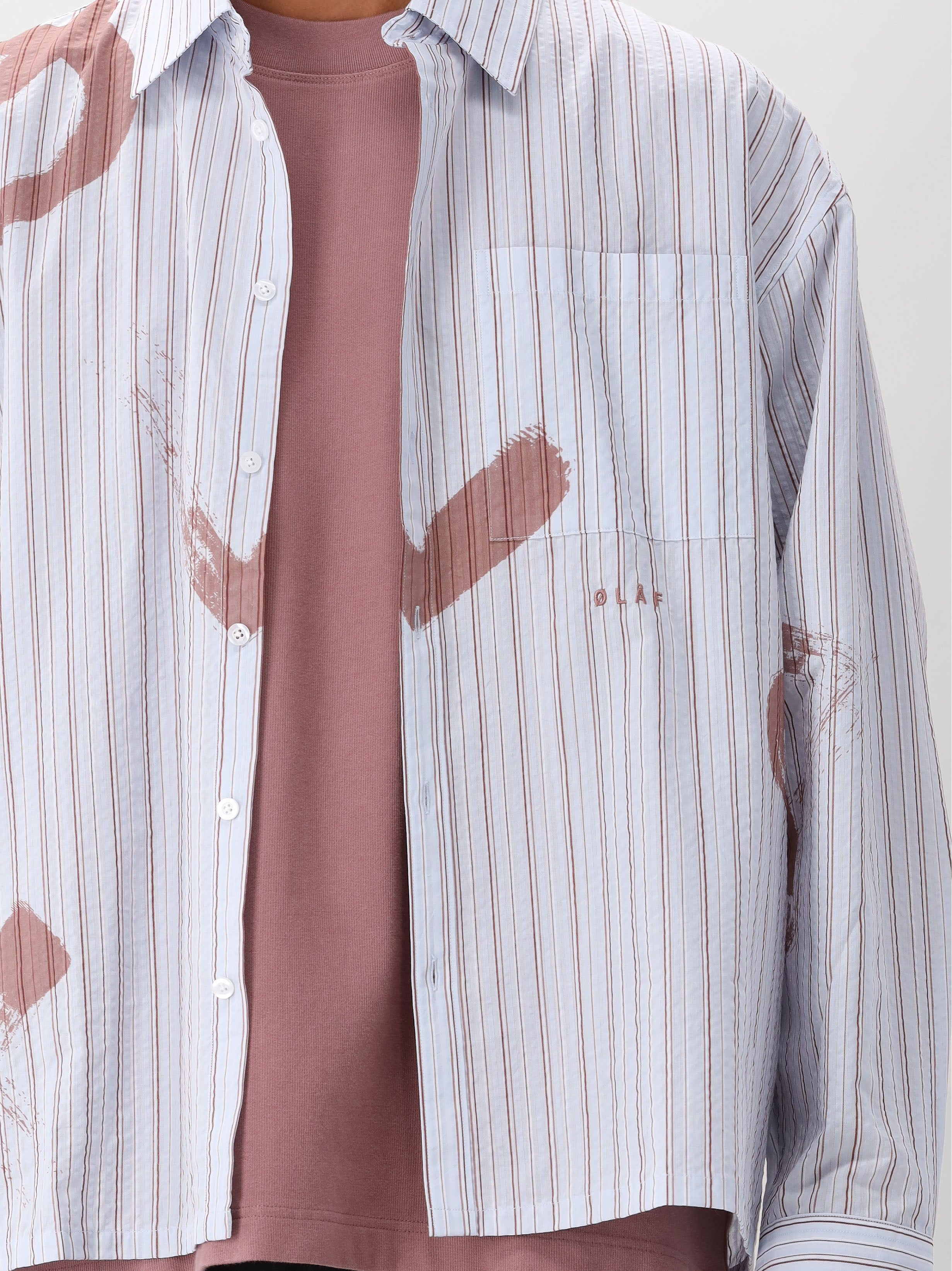 Het Ølaf logo en de brushstroke stripe zijn subtiel verwerkt, wat zorgt voor een artistieke maar niet overdreven uitstraling. Dit overhemd is de perfecte keuze voor de moderne man die op zoek is naar een veelzijdig kledingstuk met een unieke touch.
