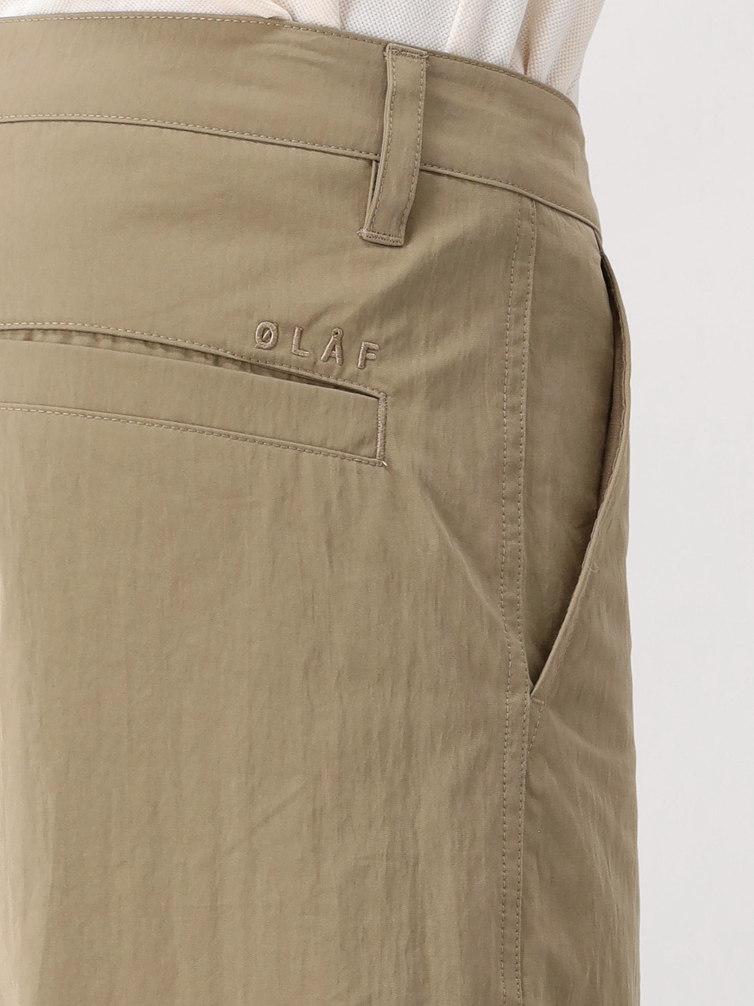 Het Ølaf logo is subtiel verwerkt, wat bijdraagt aan de cleane en minimalistische look. Deze broek is de perfecte keuze voor de moderne man die op zoek is naar een veelzijdig kledingstuk met een unieke fit en kleurencombinatie.