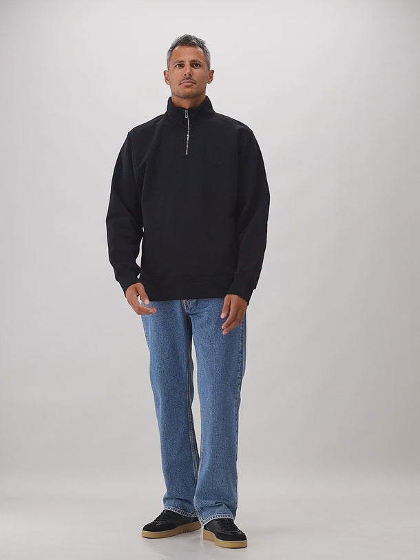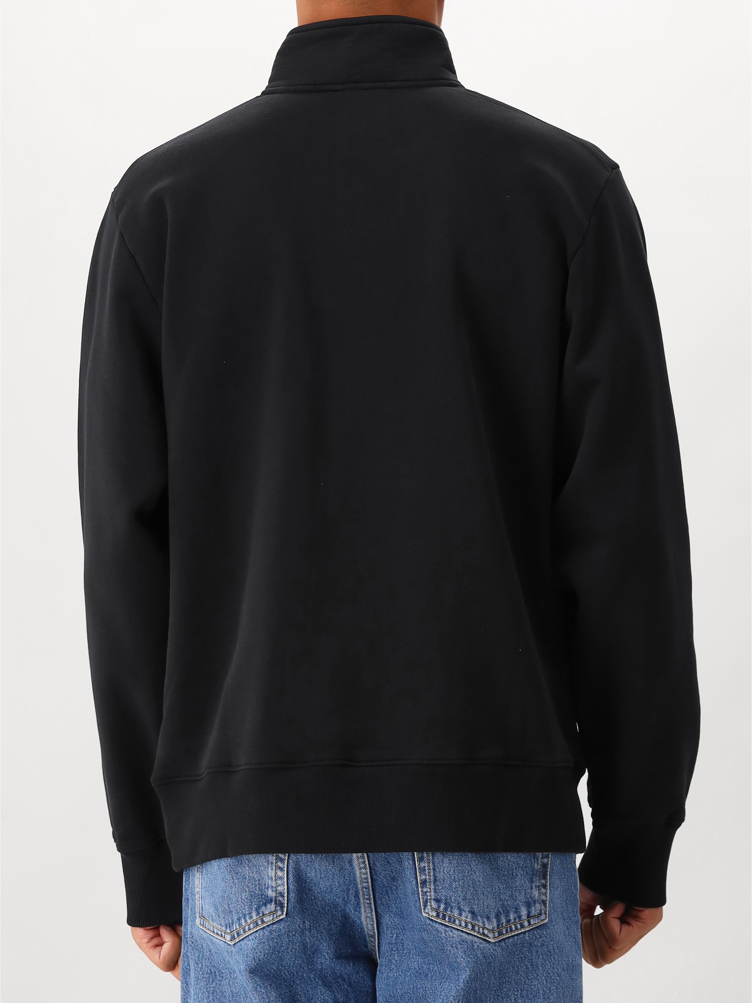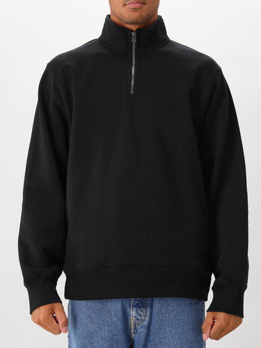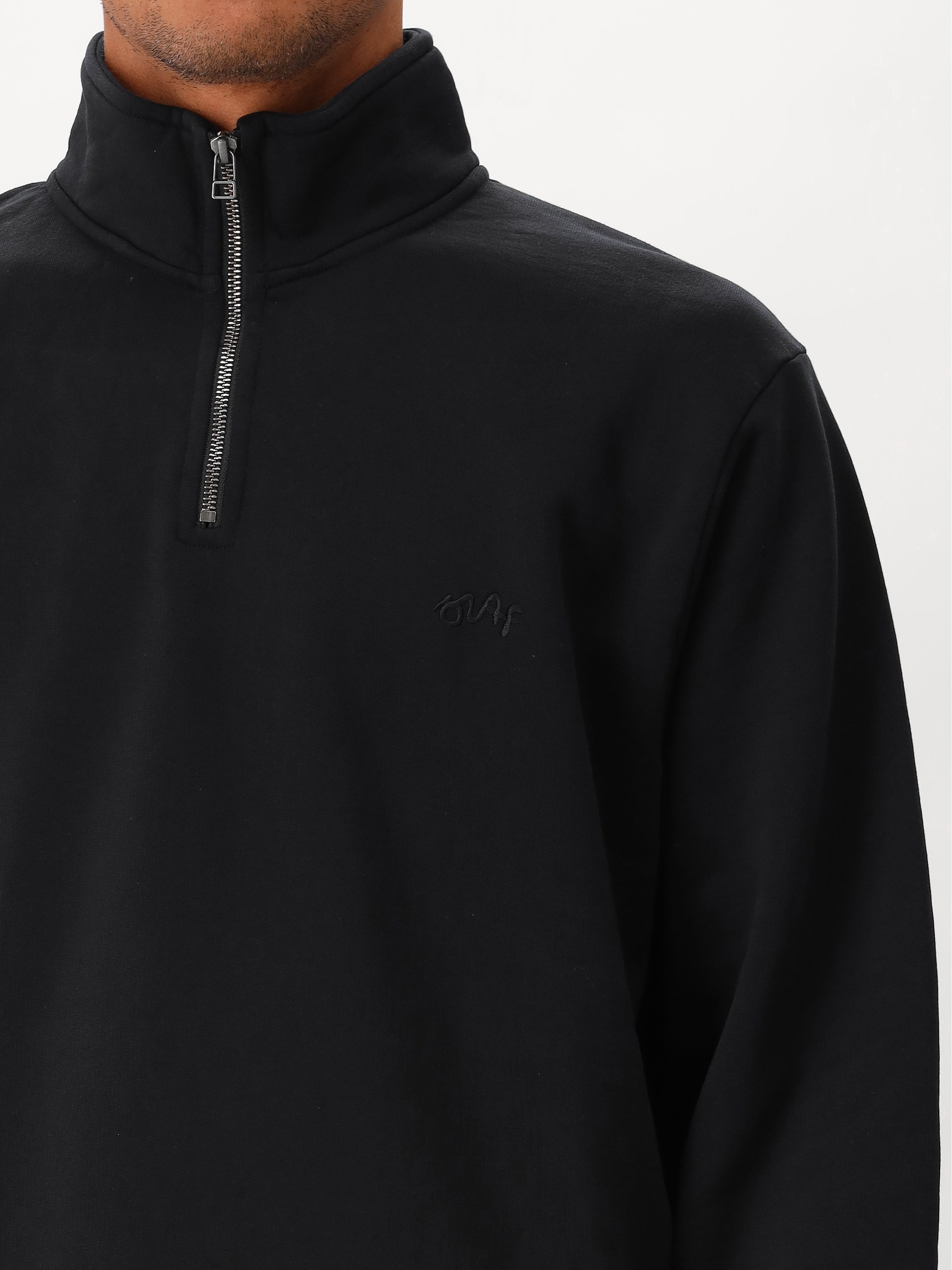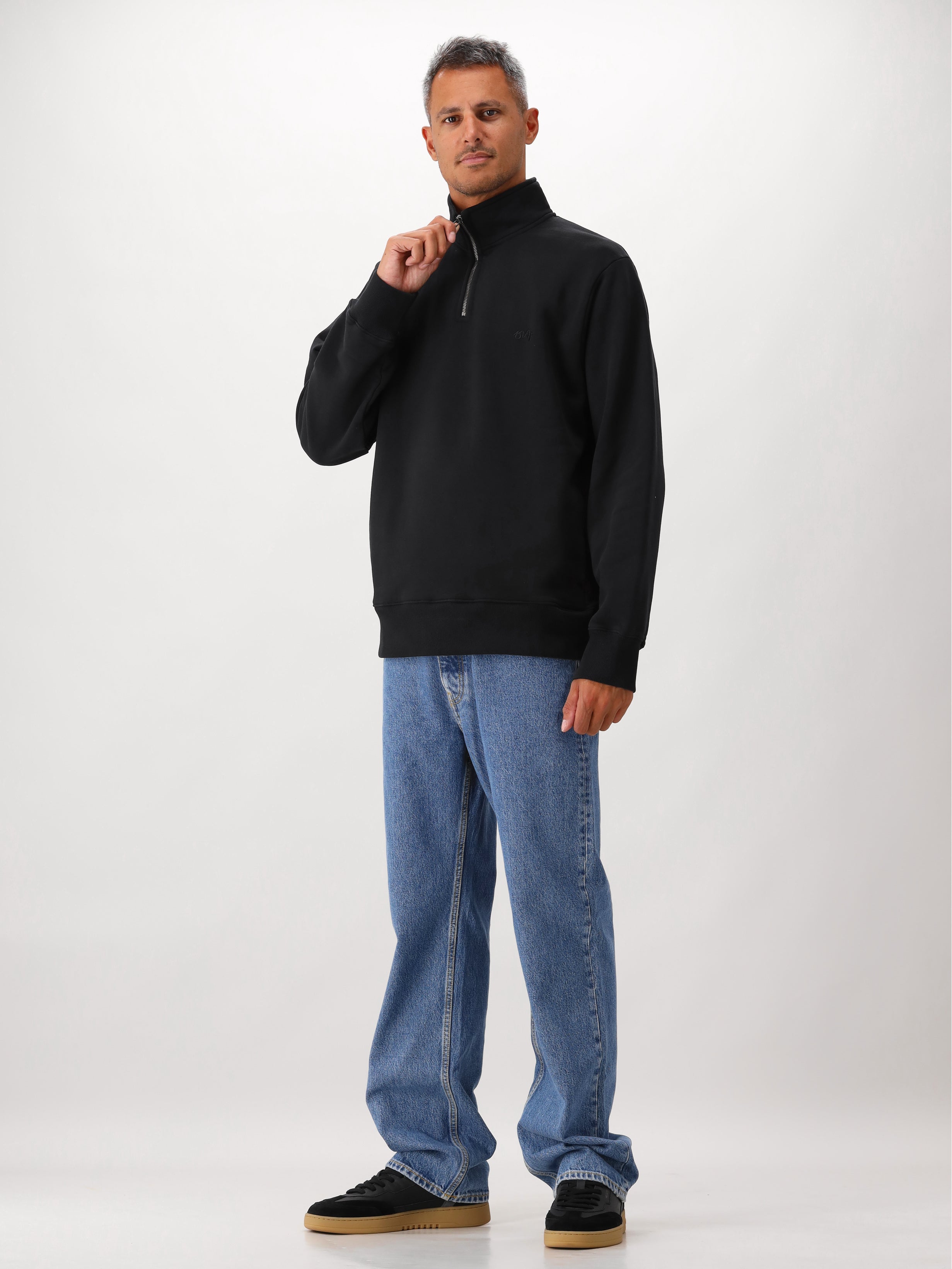 Deze zwarte half-zip sweater van ØLÅF bestaat voor 100% uit katoen. Op de borst vind je het merklogo terug. De halve rits geeft een extra touch aan jouw outfit.
