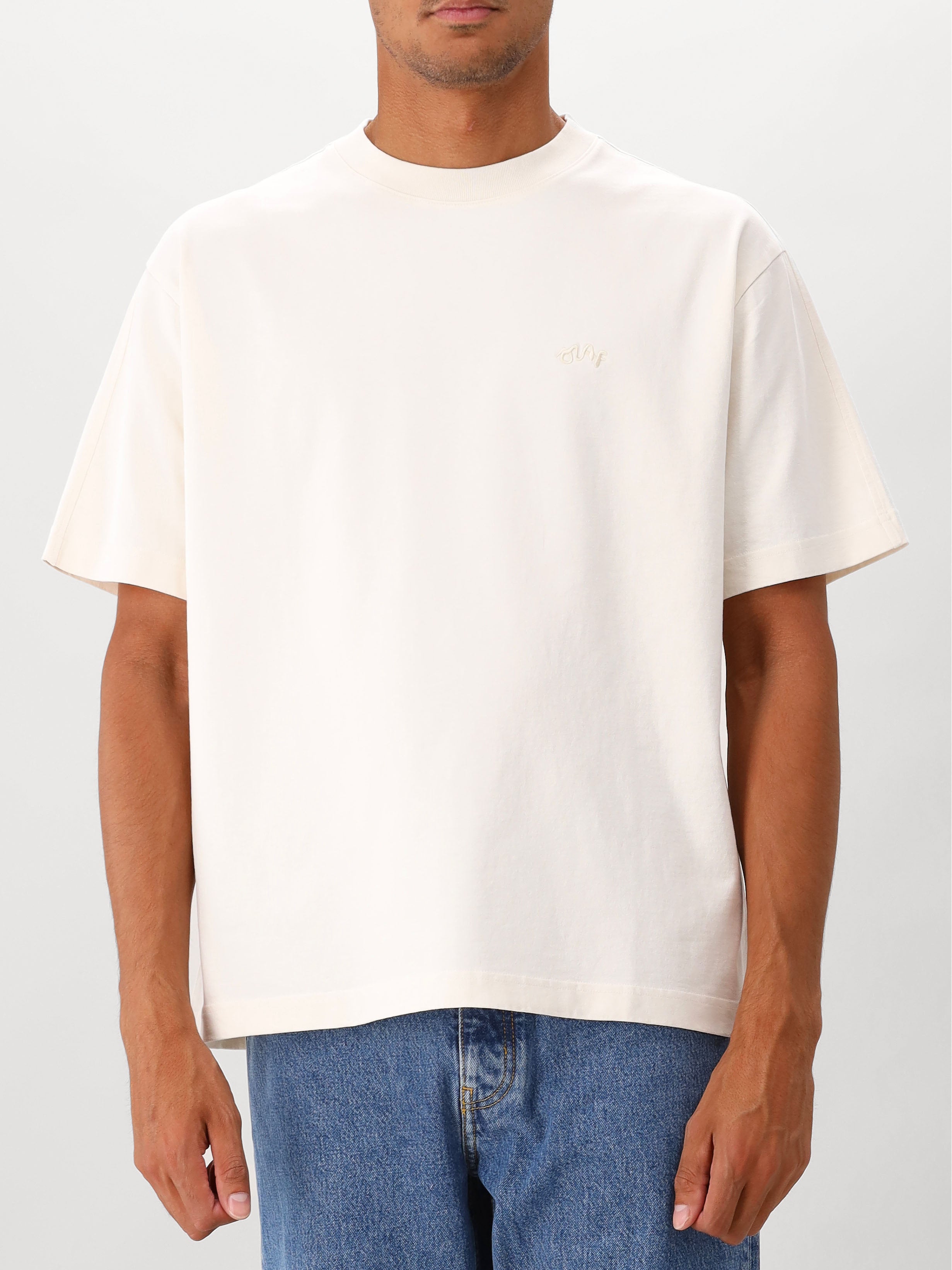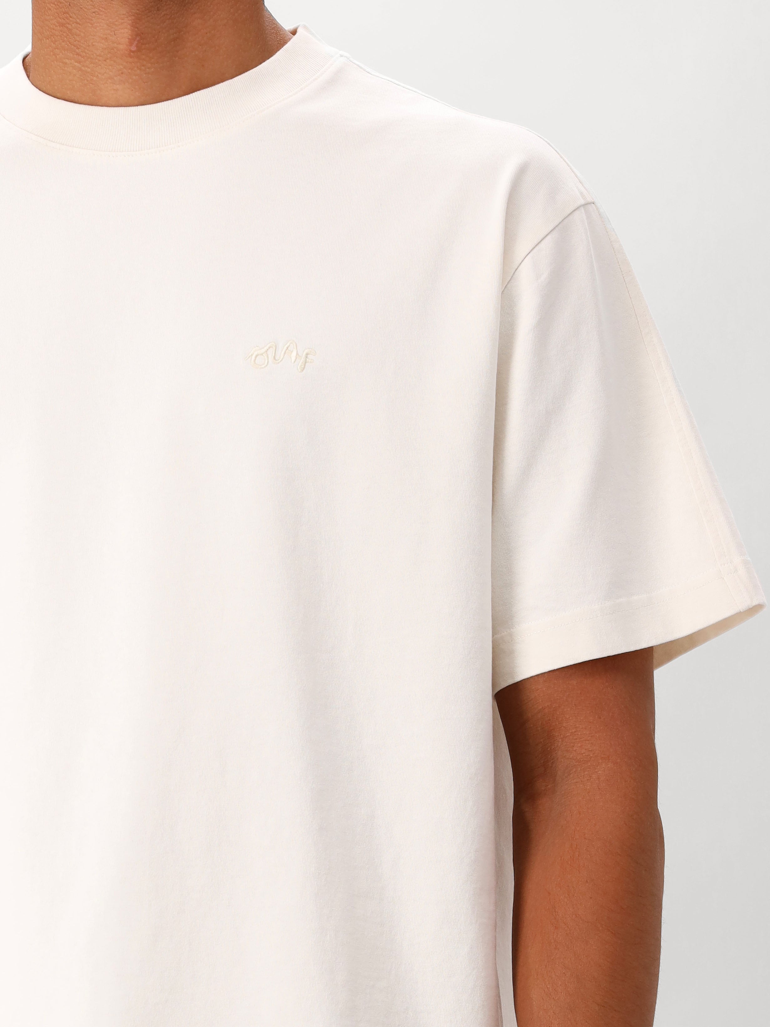 Dit oversized T-shirt van ØLÅF bestaat voor 100% uit katoen. Het T-shirt heeft een tijdloze pasvorm, op de borst vind je een klein merklogo terug. De gebroken witte kleur is stijvol en gemakkelijk te stijlen op verschillende broeken.