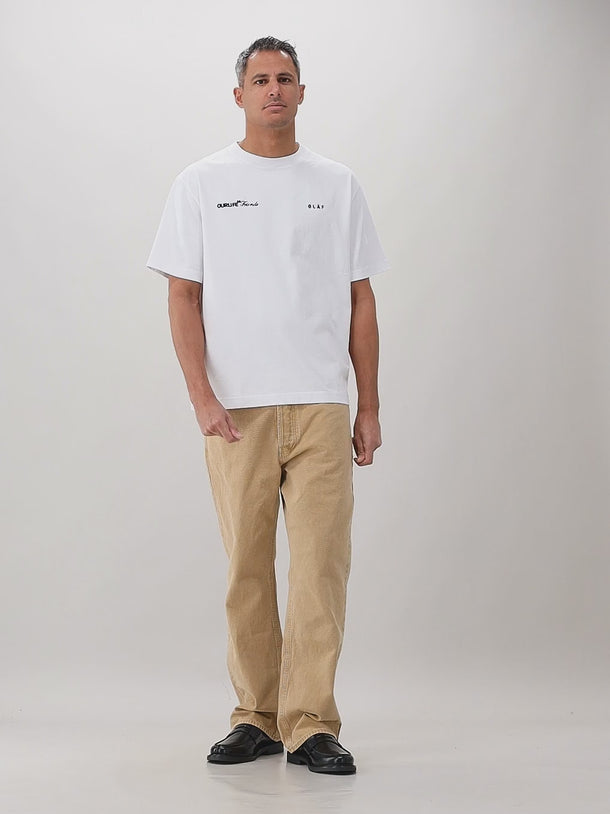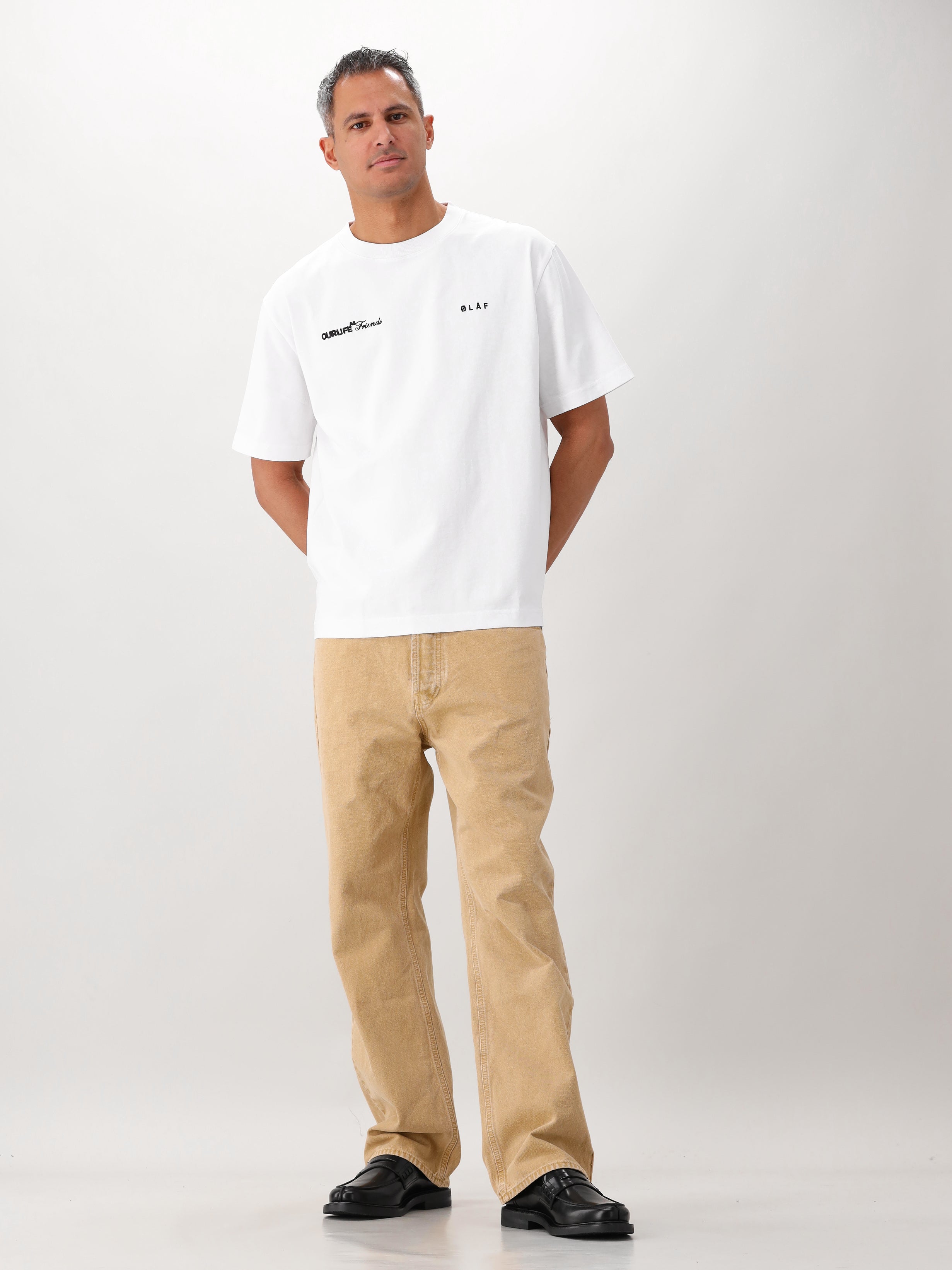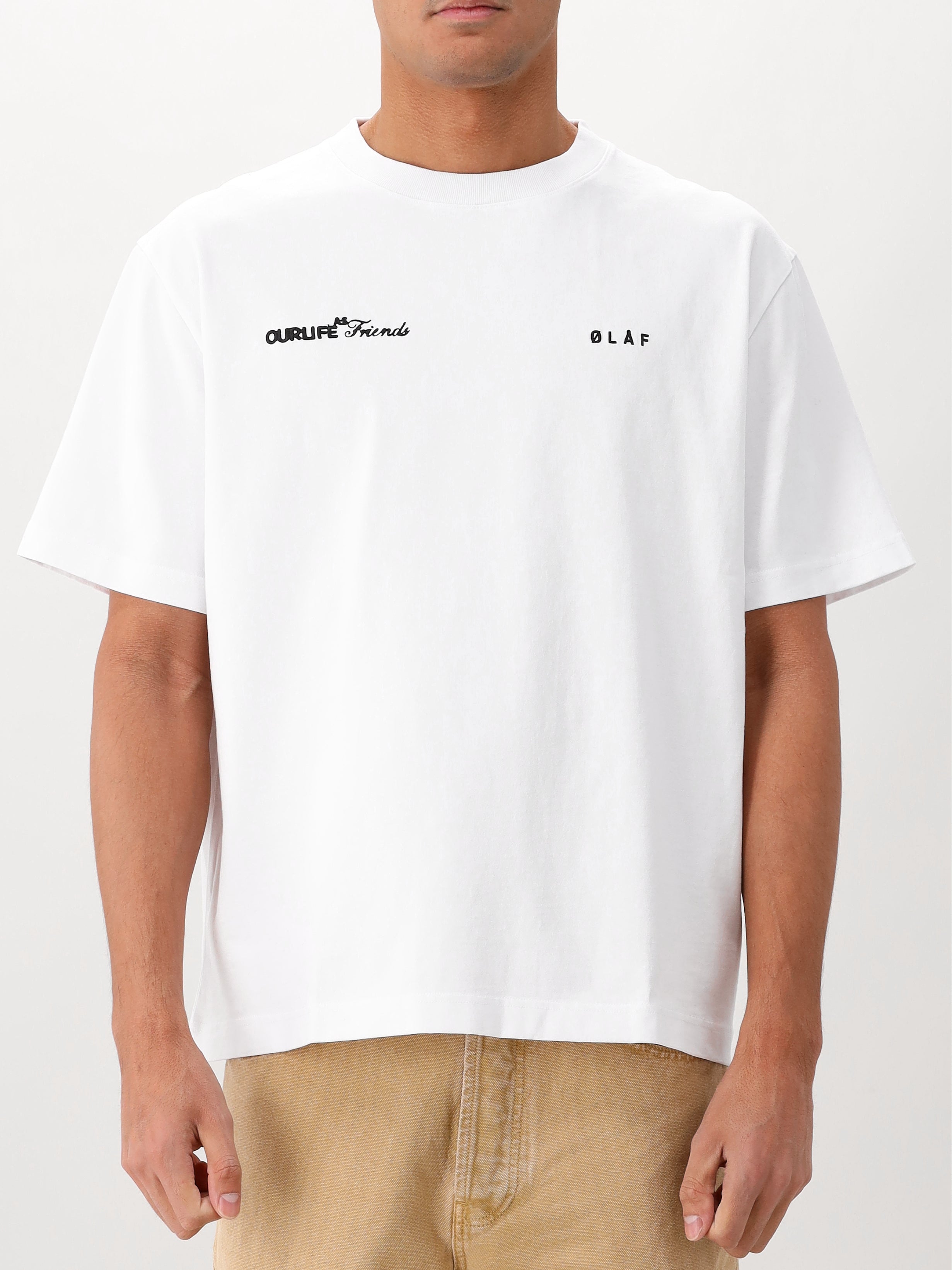 Het Ølaf logo en de script friends graphic zijn subtiel verwerkt, wat zorgt voor een artistieke maar niet overdreven uitstraling. Dit T-shirt is de perfecte keuze voor de moderne man die op zoek is naar een uniek kledingstuk met een relaxte boxy fit.
