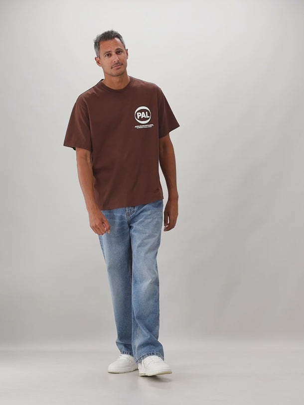 Kies voor dit oversized T-shirt van PAL Sporting Goods. Het shirt bestaat volleidg uit hoogwaardig en stevig katoen. Zowel op de borst als rug vind je merkdetails. De oversized fitting maakt dit item tot een geweldig streetwear component, ook is het T-shirt geschikt voo reen casual setting. De bruine kleur is op verschillende broeken te stijlen!