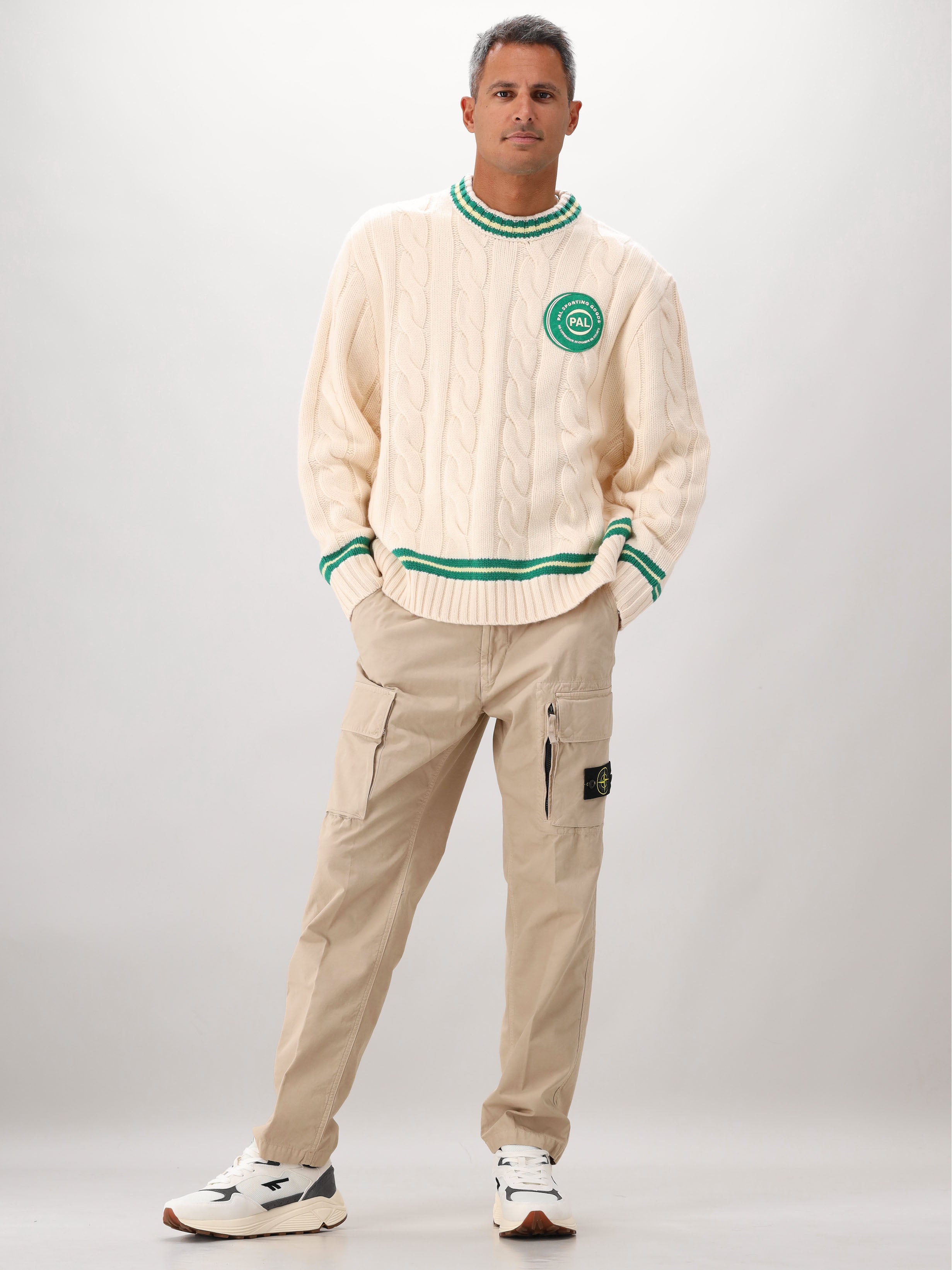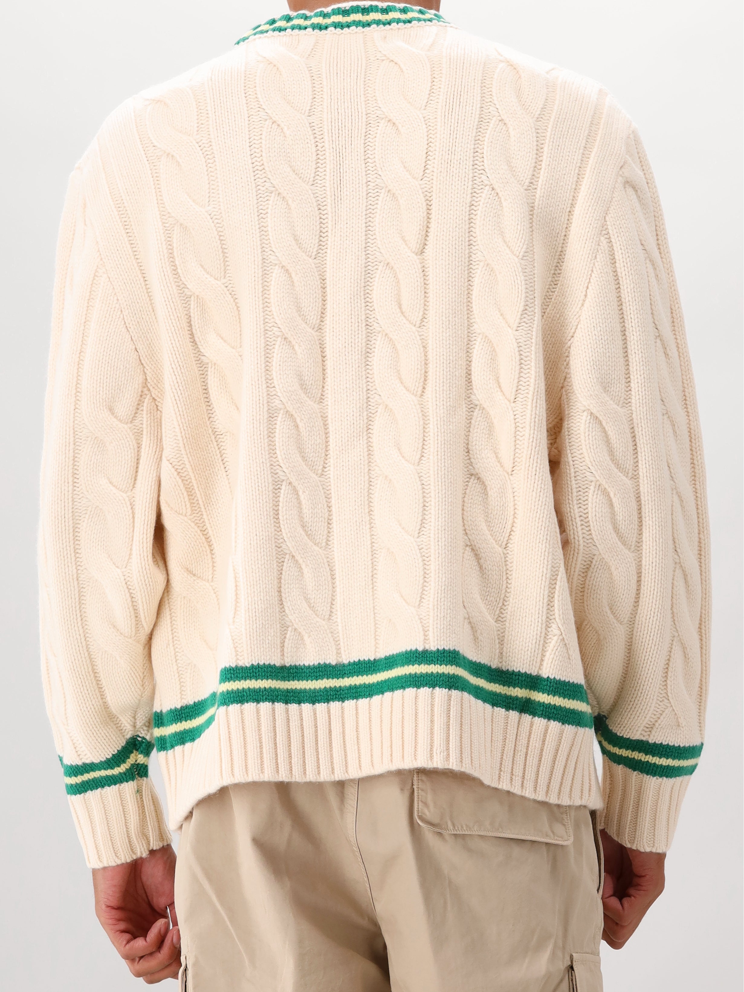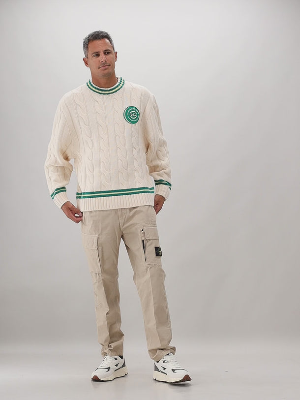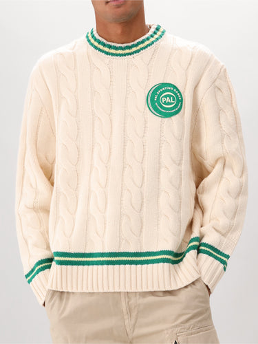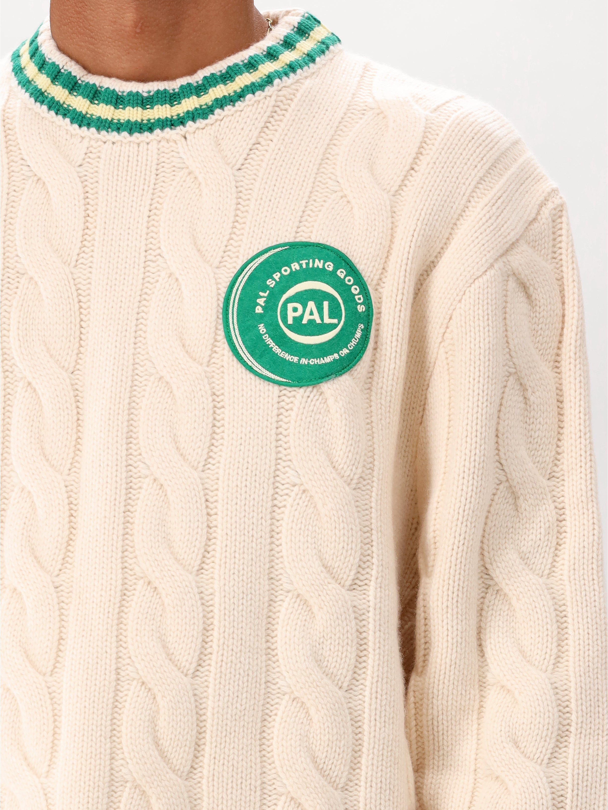 PAL Sporting Goods Trui Wit Bye Cable Knit Wool Cricket Sweater