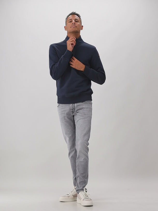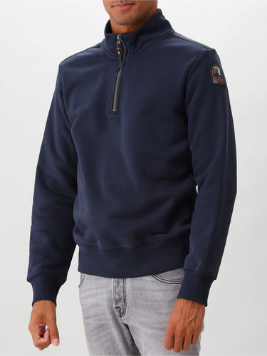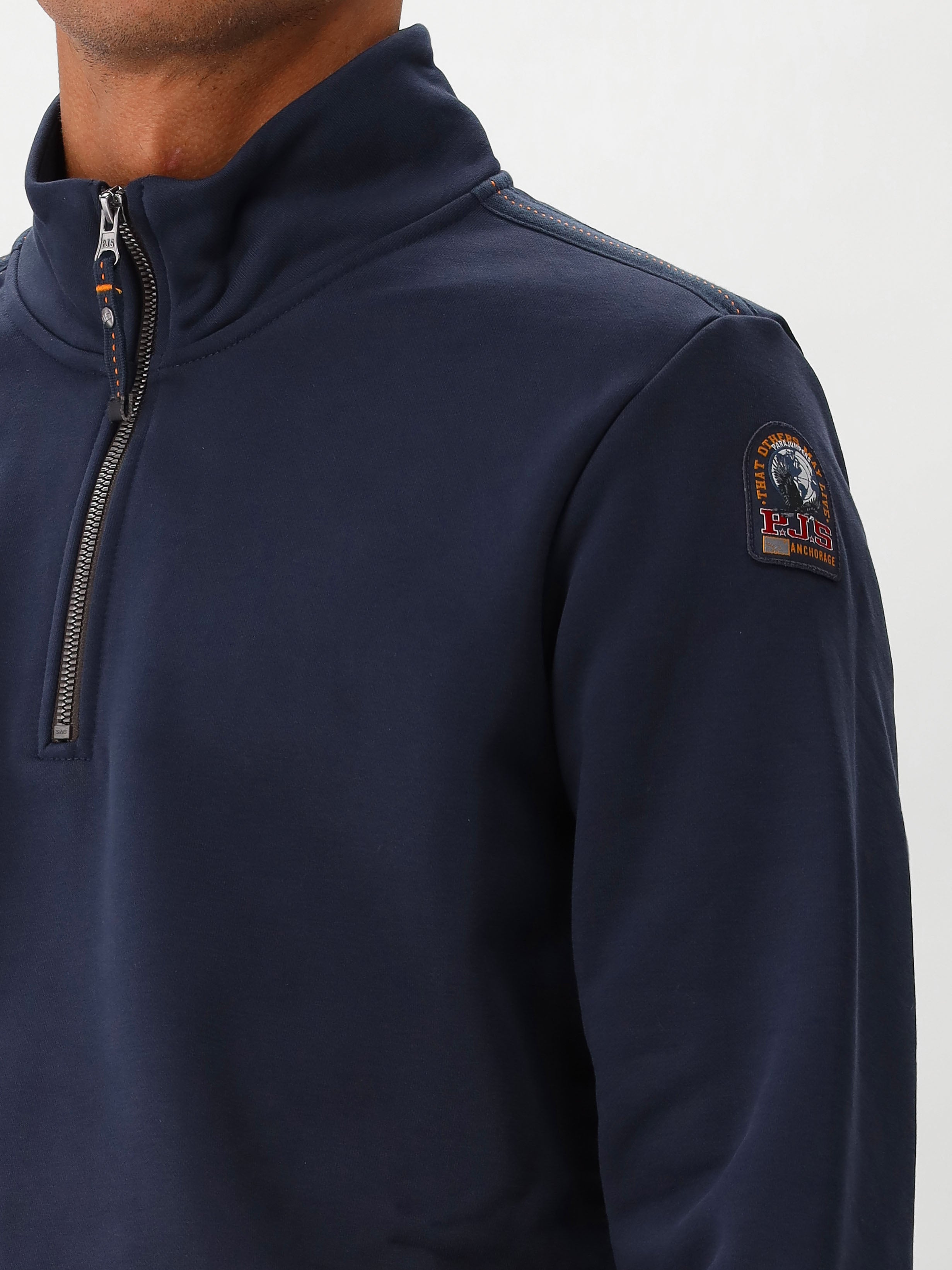 Deze navyblauwe half-zip sweater van Parajumpers bestaat uit een mix van katoen en polyester. Op de linkermouw vind je de Parajumpersbadge terug. Ook de rits van de half-zip heeft merkdetails.