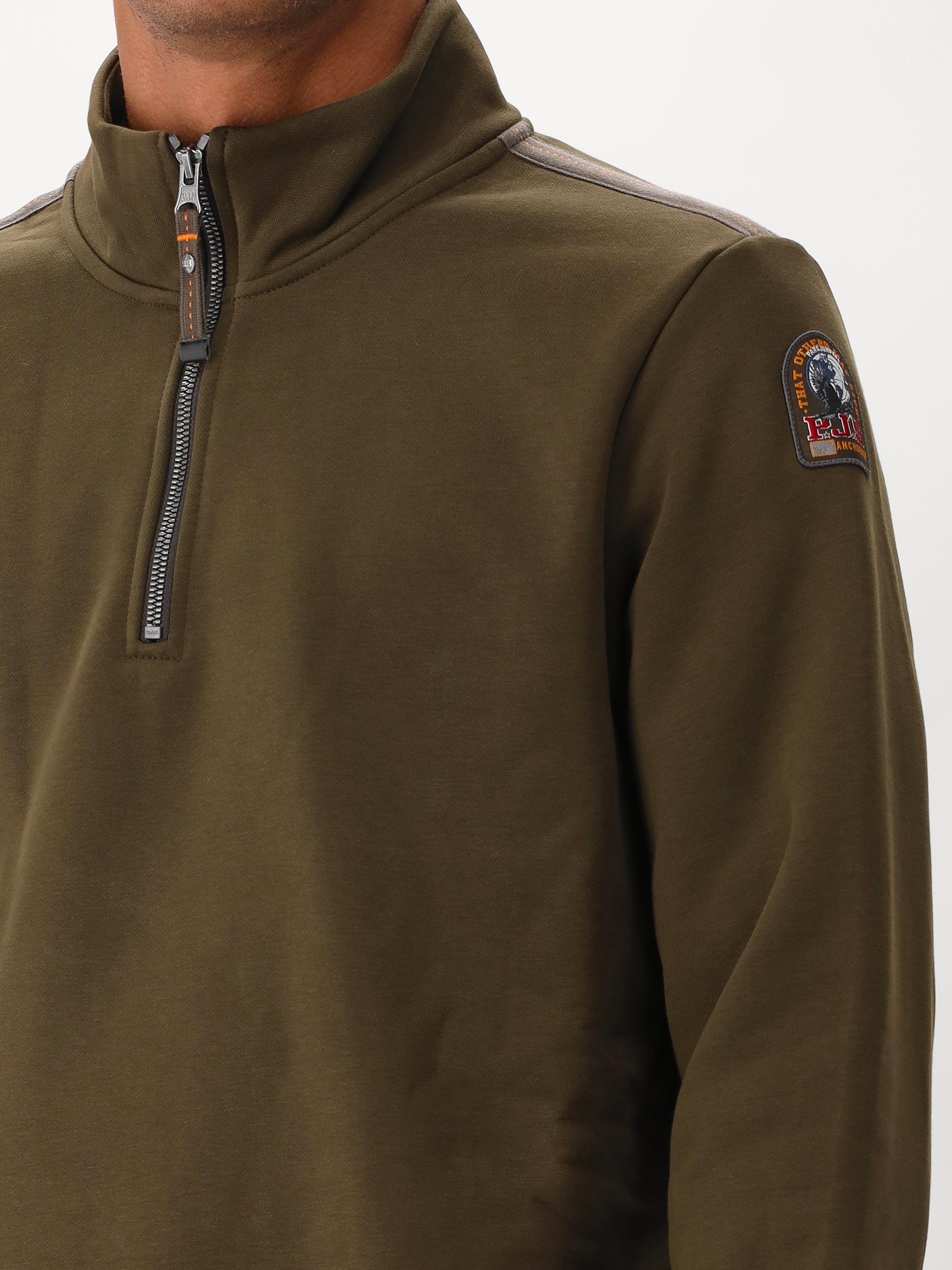 Deze groene half-zip sweater van Parajumpers bestaat uit een mix van katoen en polyester. Op de linkermouw van de sweater vind je de parajumpers badge terug. De halve rits geeft het item net een extra touch.