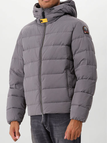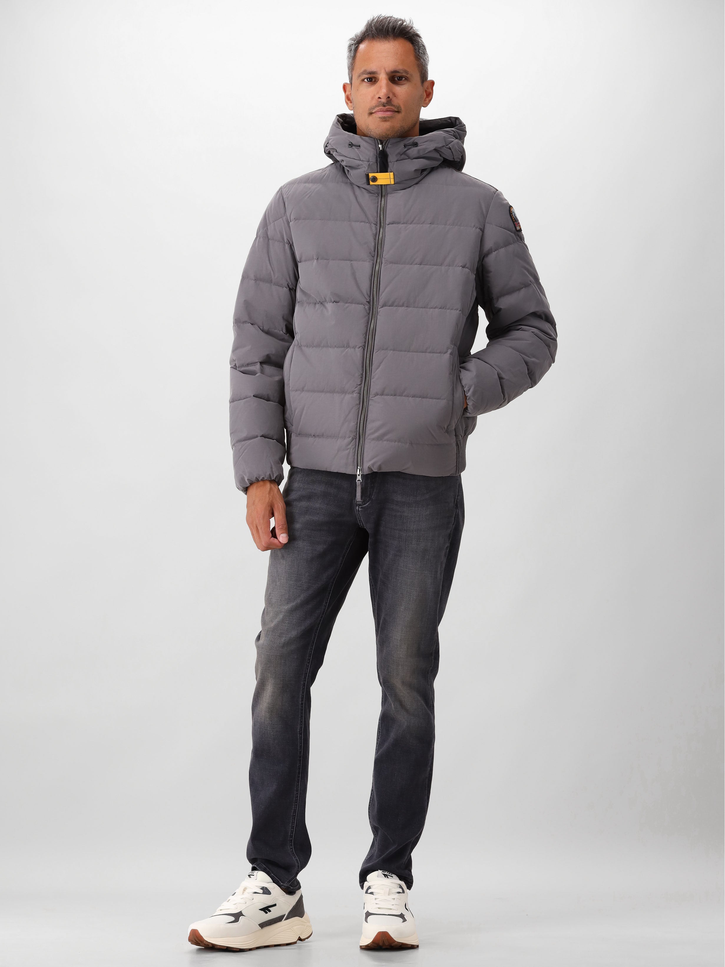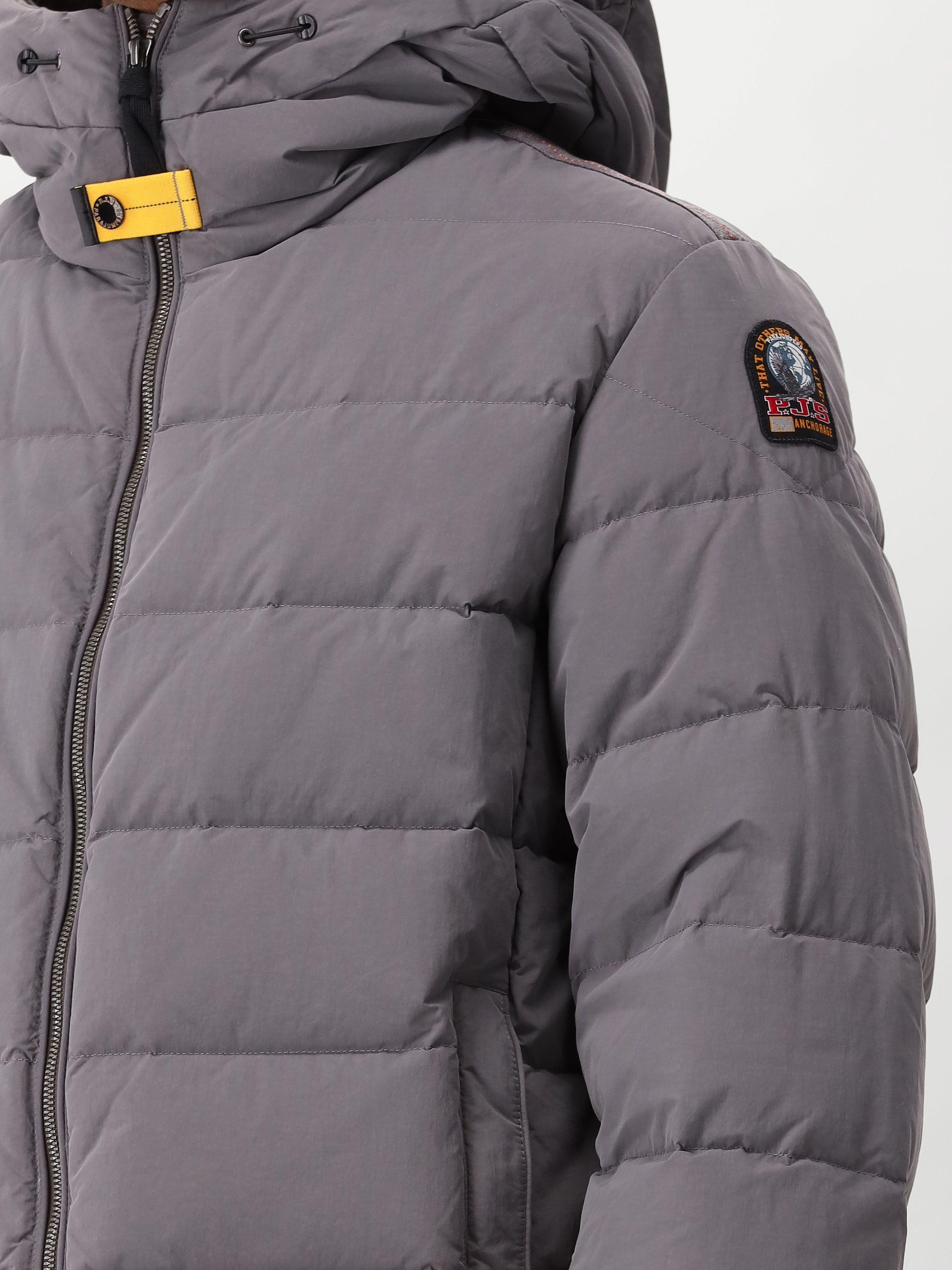 Deze donkergrijze donsjas van Parajumpers heeft een matte look. Op de linkermouw vind je de Parajumpers badge terug. De jas is gevuld met dons en erg comfortabel voor een koude winter!