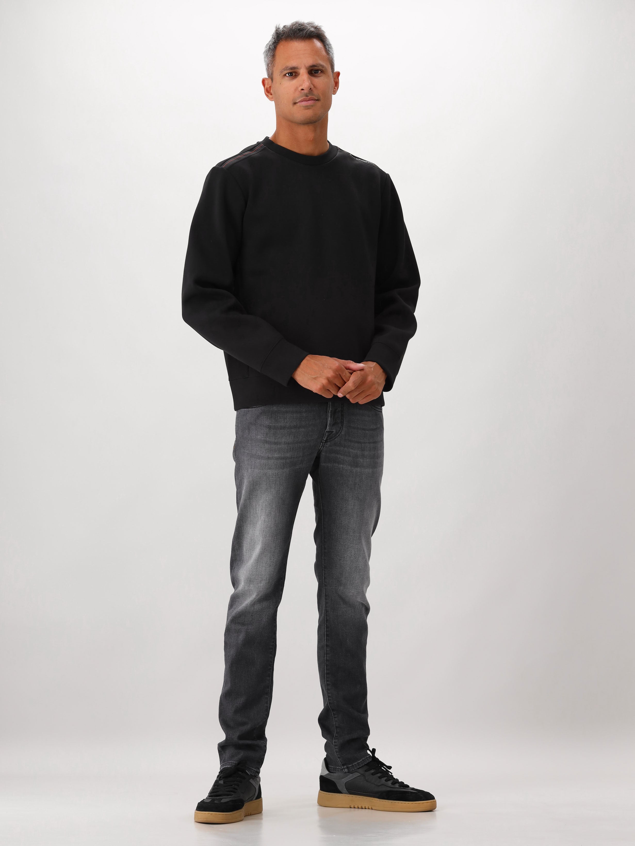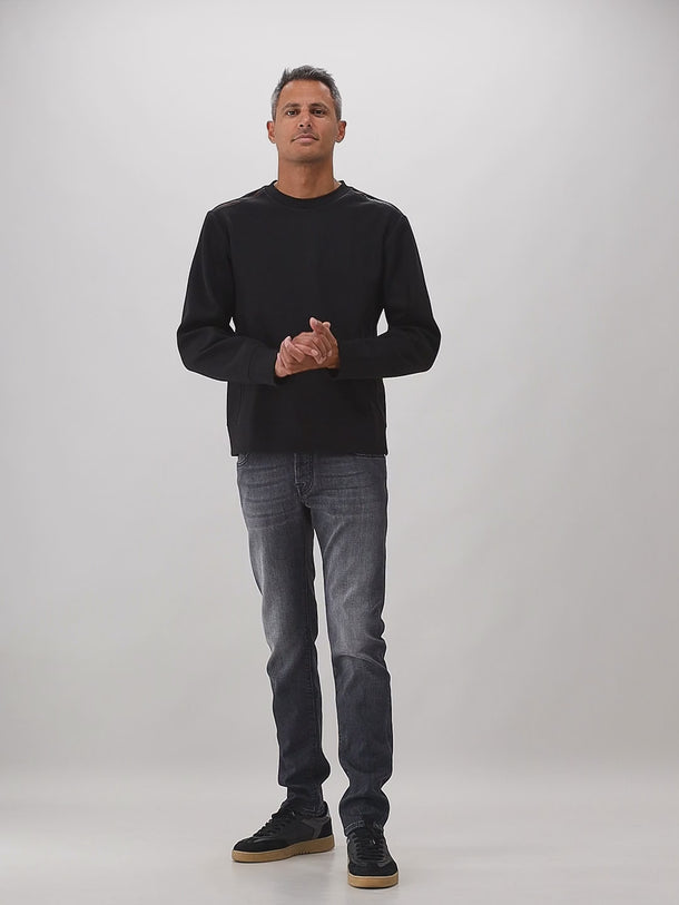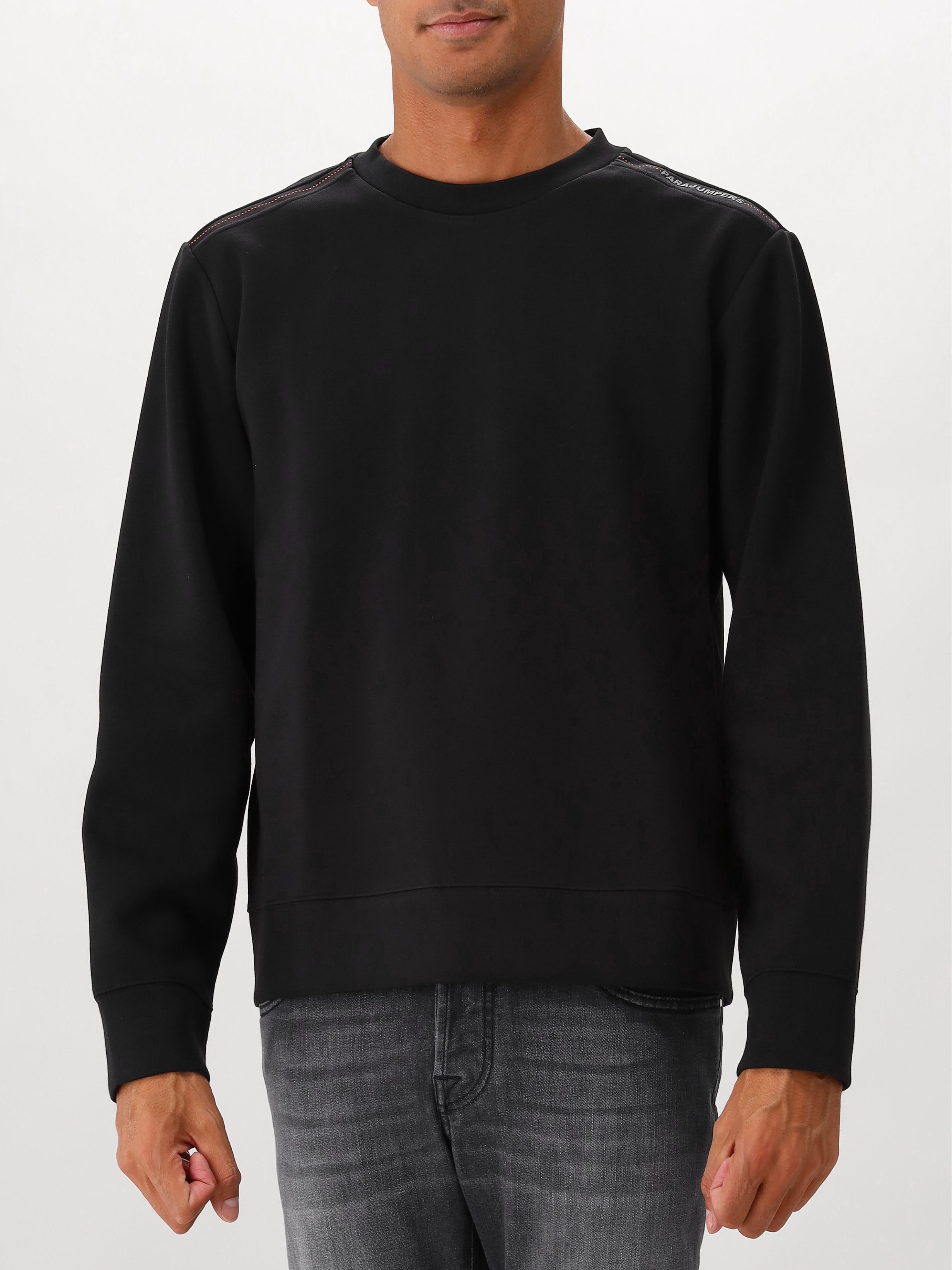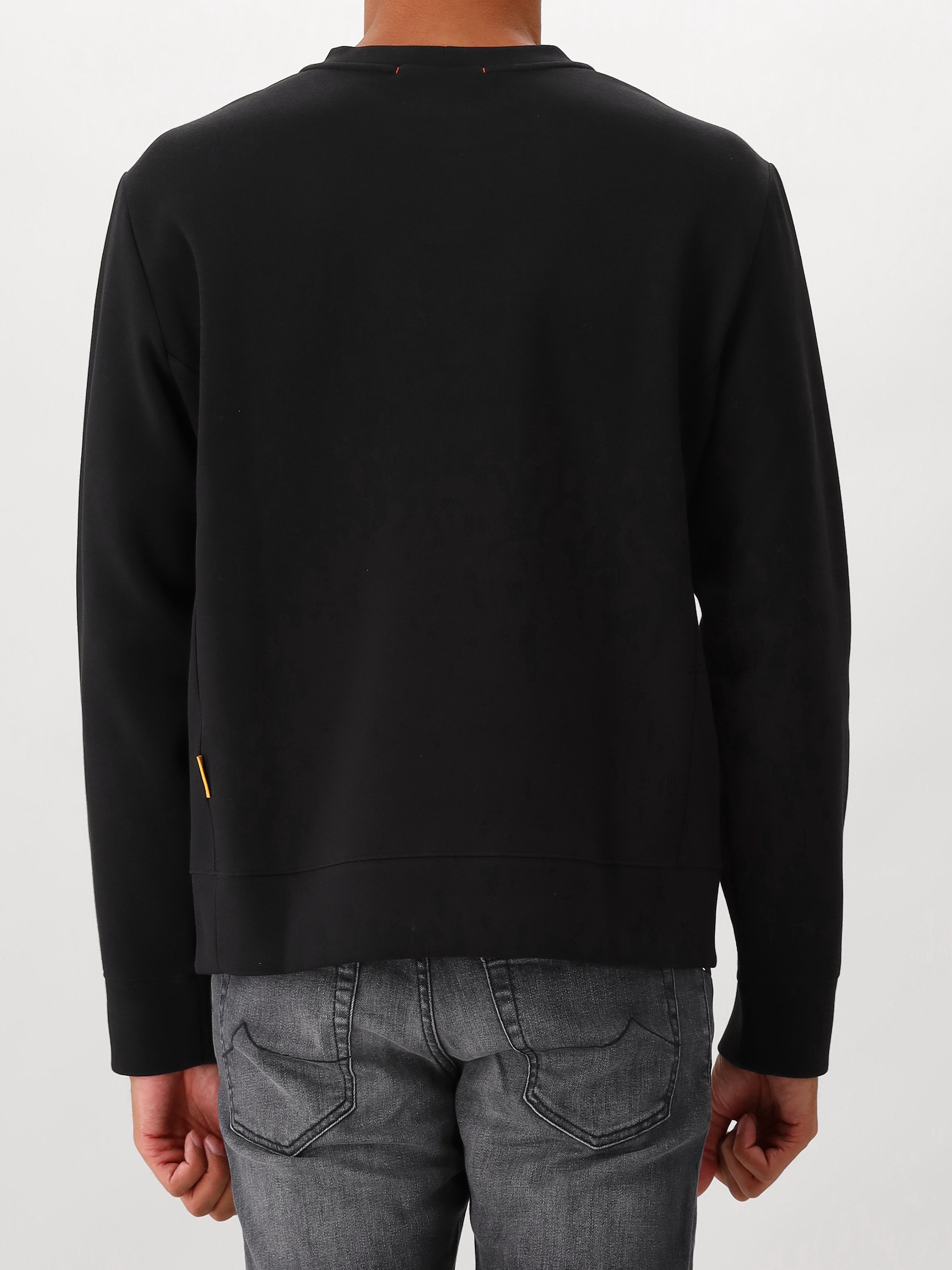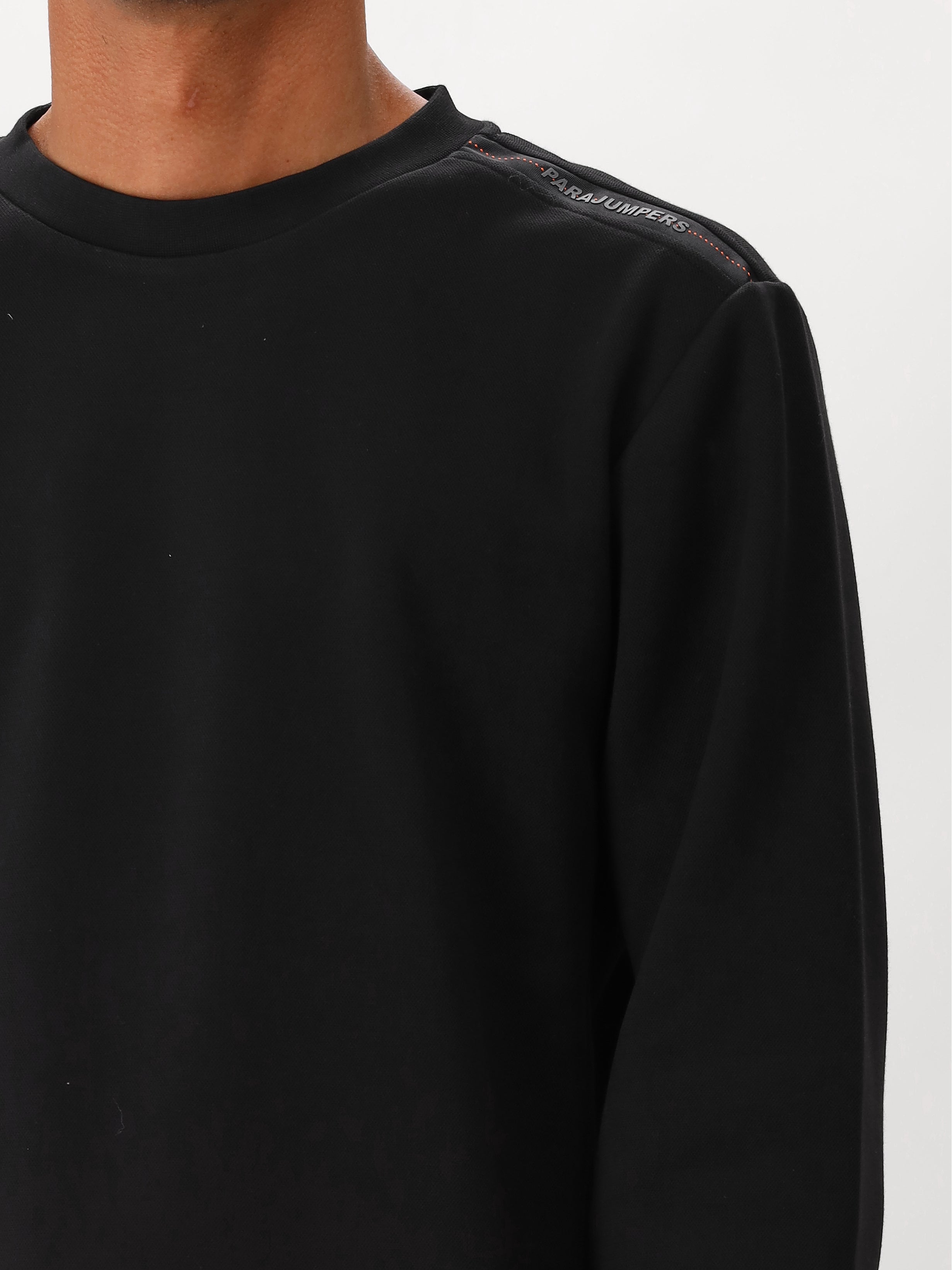 Casual de deur uit met deze zwarte sweater van Parajumpers! De sweater bestaat uit een mix van polyester, katoen en elastaan. Dit zorgt voor comfort en een lichtgewicht item! Op de schouders vind je Parajumpers branding, evenals oranje stiksels, wat zorgt voor een mooi contrast tegenover het item.
