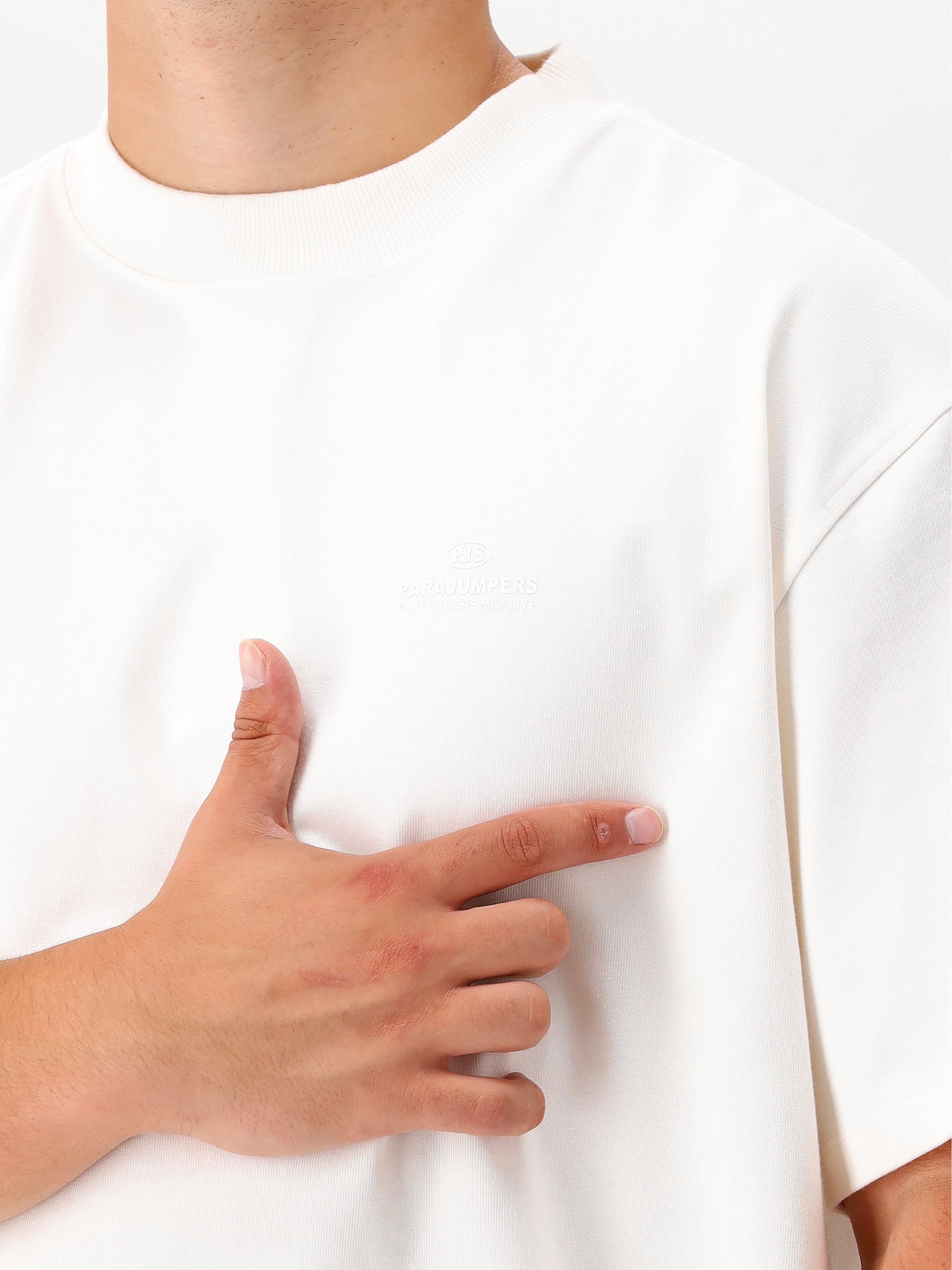 Shop dit T-shirt van Parajumpers! Het shirt heeft een off-white kleur en een oversized fit. Het is gemaakt van 100% katoen en voelt lekker stevig aan. Op de borst zie je het Parajumpers-logo in dezelfde kleur als het shirt, waardoor het subtiel aanwezig is. Aan de zijkant zit een opvallend geel merkdetail.