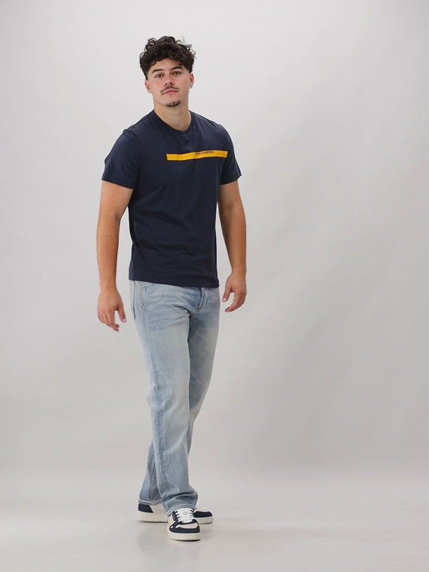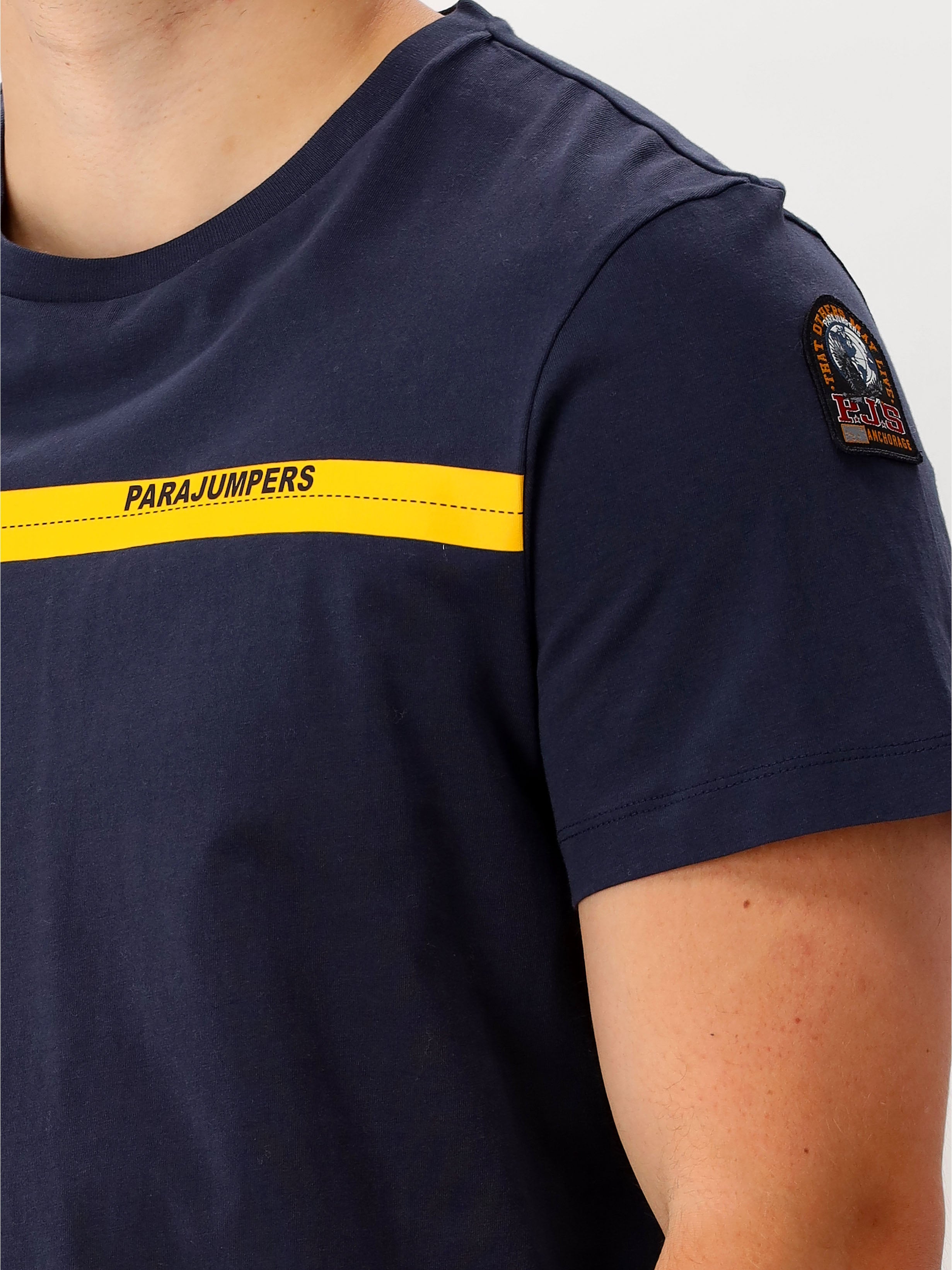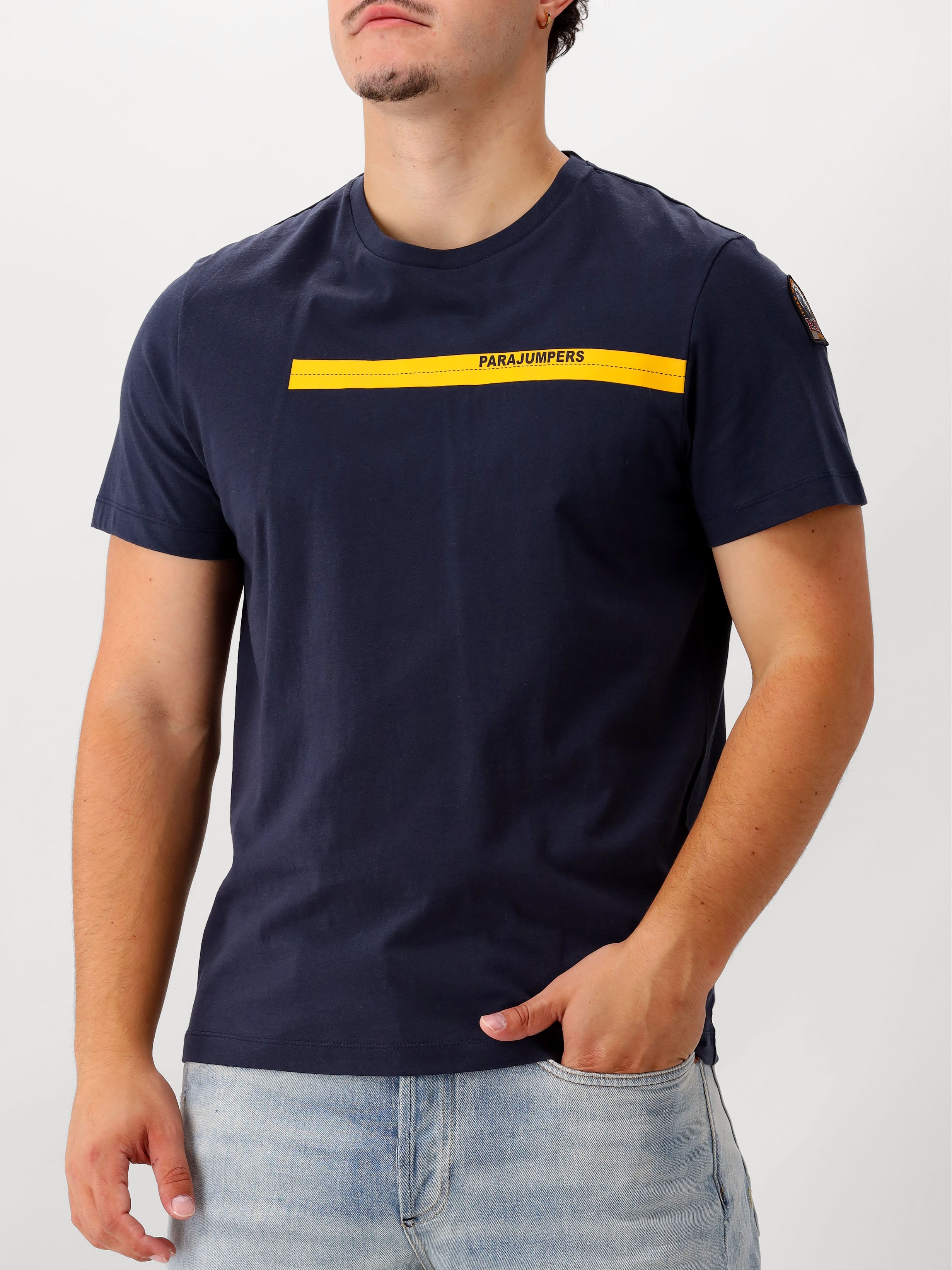 Deze Parajumpers T-shirt Blauw Tape Tee is makkelijk te combineren vanwege het eenvoudige design. Op de borst is een gele print met Parajumpers te zien. Het T-shirt is gemaakt van een lichte katoenenstof en is perfect voor de zomerse dagen.