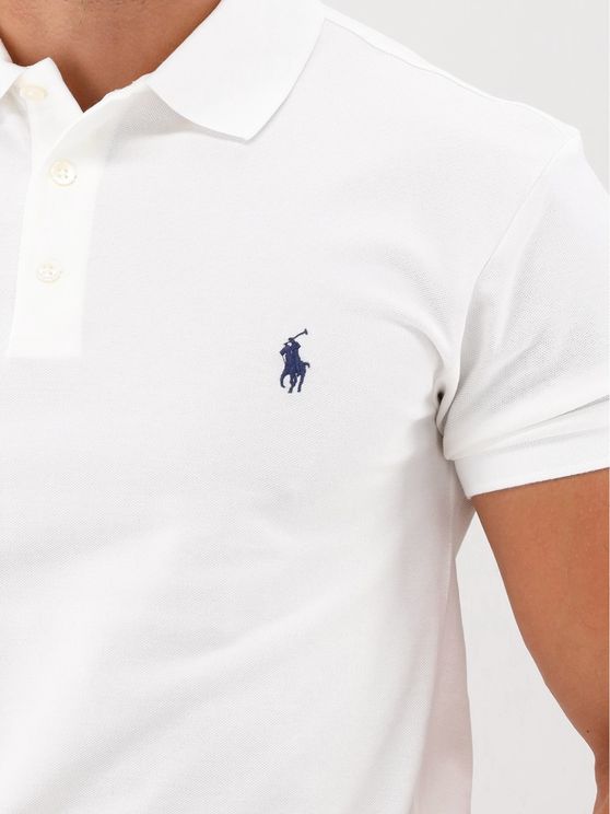 Polo van Polo Ralph Lauren in het wit met blauw merklogo links op de borst. De polo heeft een knoopsluiting met drie knoopjes, en is gemaakt van katoen en elastan.