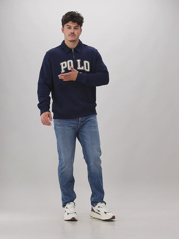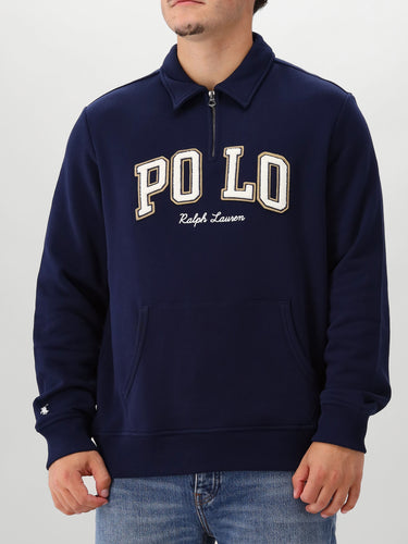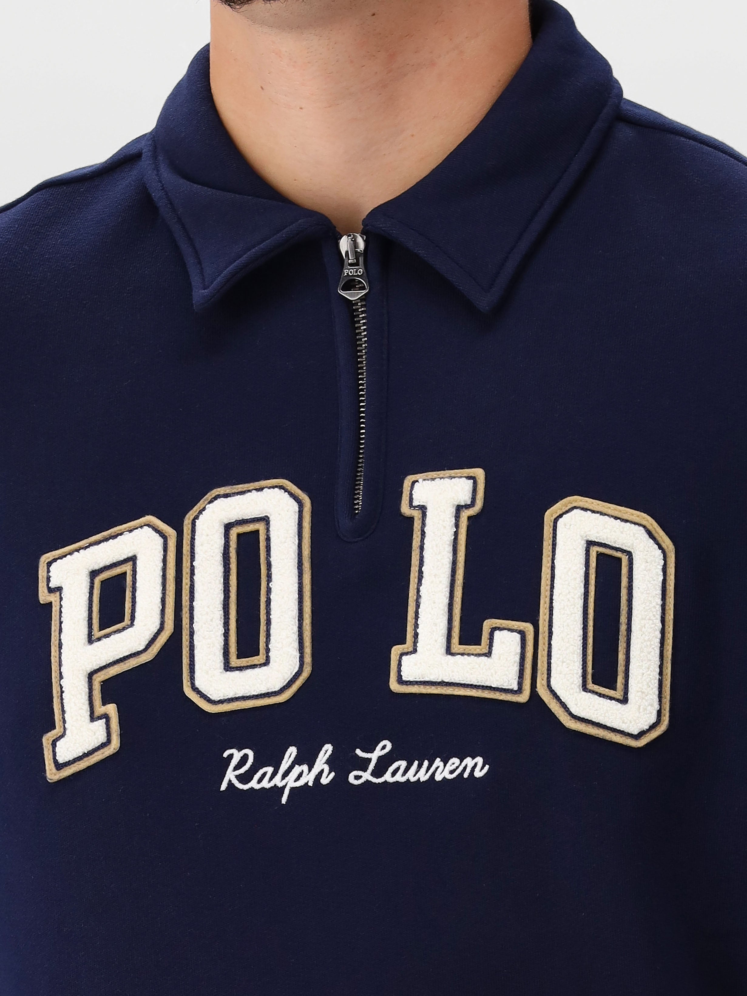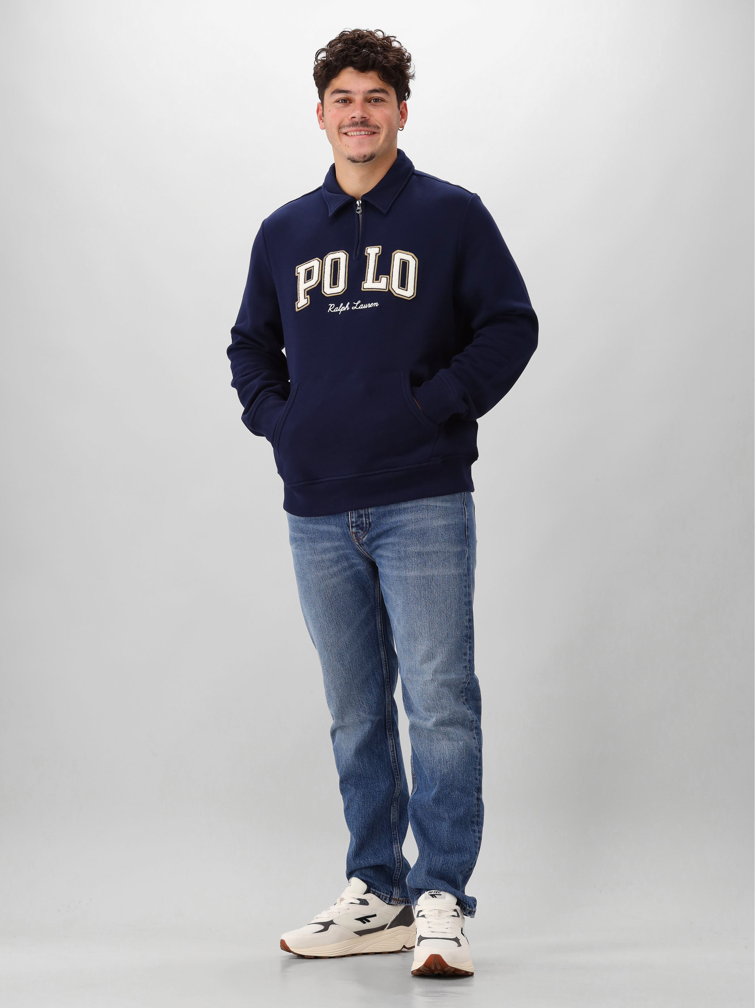 Deze blauwe sweater van Polo Ralph Lauren is erg zacht en stijlvol! Op de borst vind je een groot logo terug. De halve rits is een interessant detail.