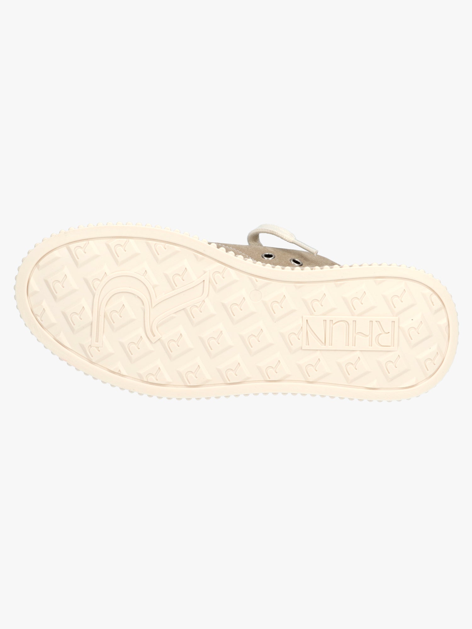 Upgrade jouw streetwear look dankzij deze sneakers van Rhun! De beige kleur is gemakkelijk op verschillende outfits te combineren. De sneaker heeft een dikke, hoge zool, wat een interessant silhouet biedt. Op de achterzijde vind je merkdetails evenals op de tong van de schoen.