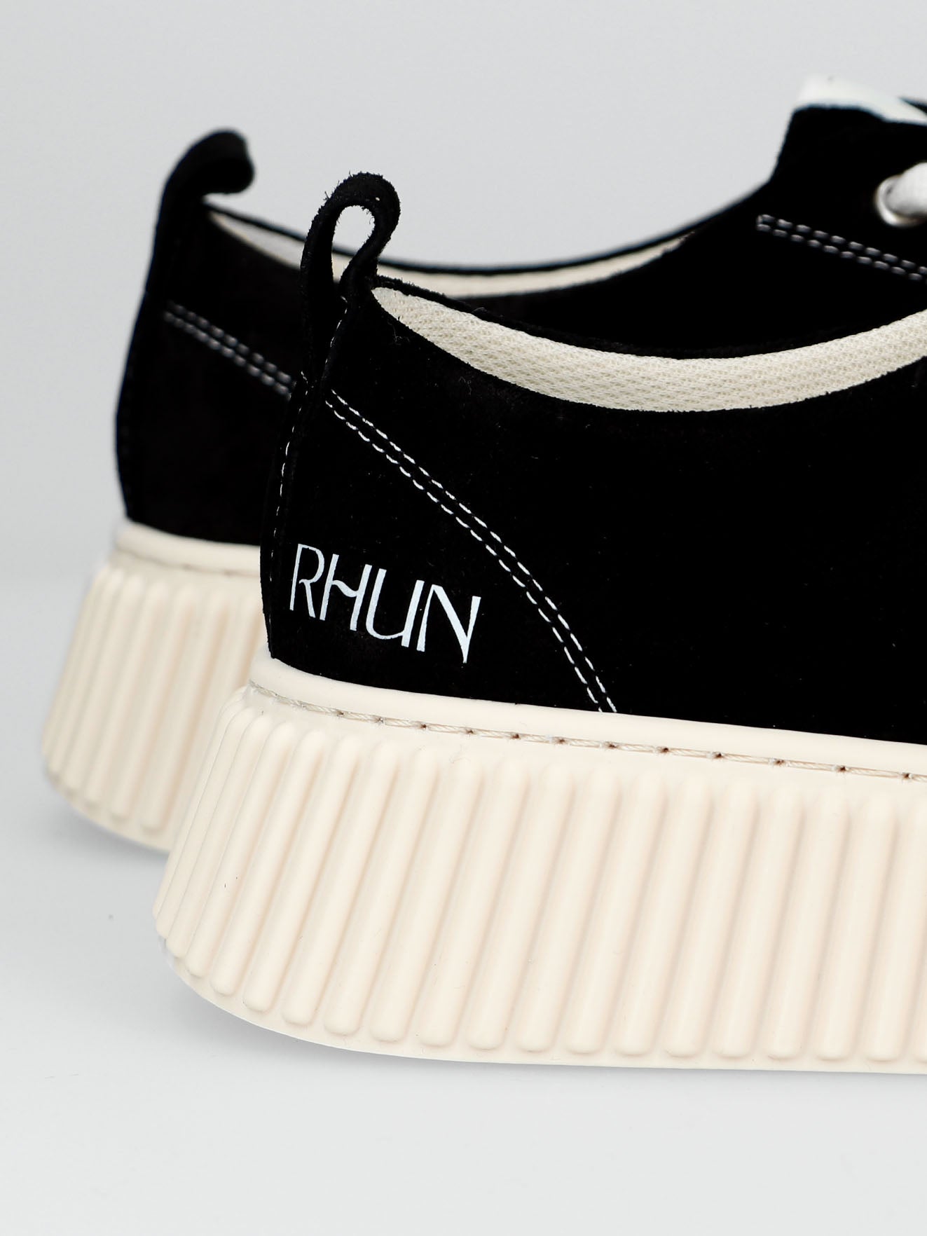Deze zwarte sneakers van Rhun zijn dankzij de kleur gemakkelijk in de combinatie. De sneakers hebben een opvallend en stijlvol silhouet!