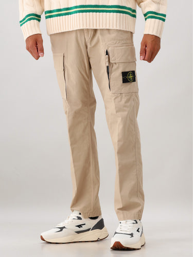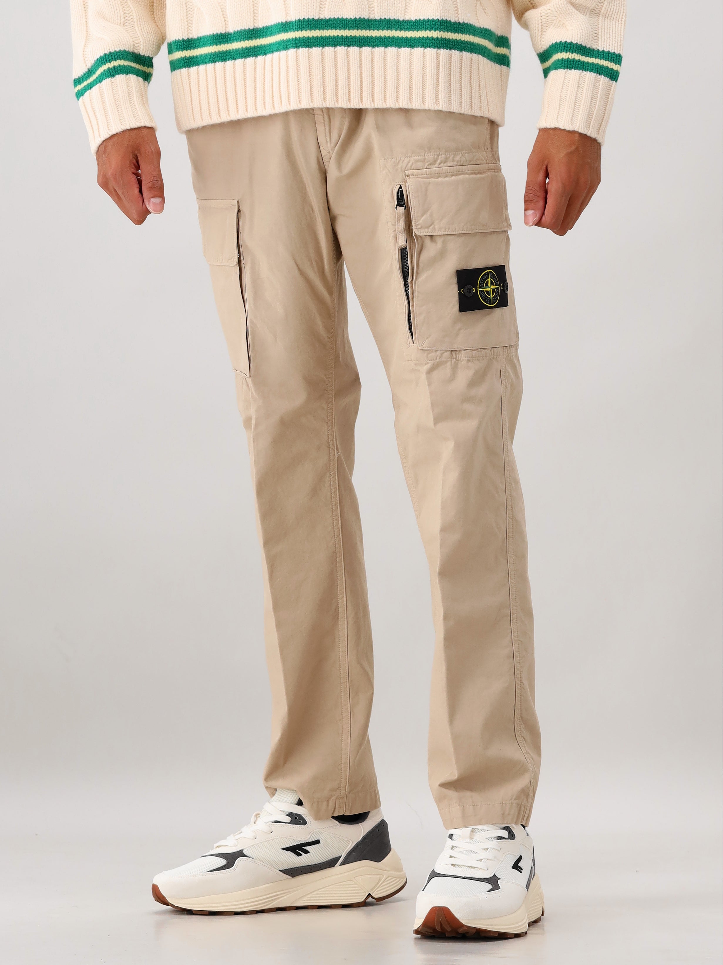 Ga voor deze stijlvolle regular fitting cargo van Stone Island! De broek is dankzij de beige kleur gemakkelijk te stijlen op verschillende tops. Op het linkerbeen vind je een cargozak die met een ritssluiting gesloten wordt. Op het linkerbeen zit een badge gevestigd.