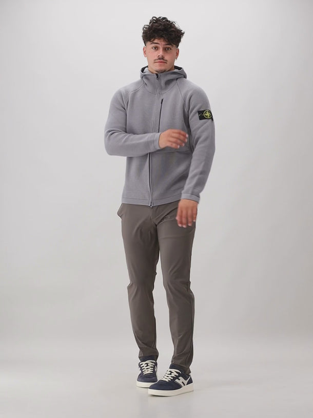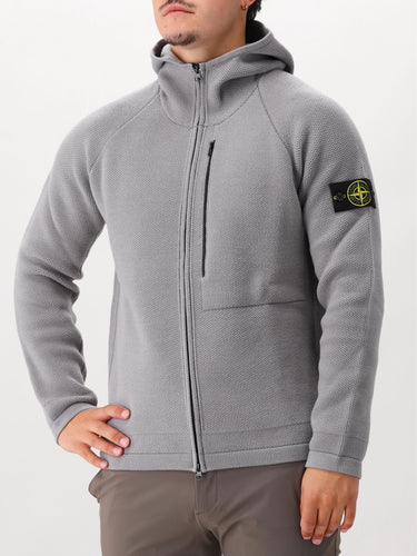 Dit grijze gebreide vest van Stone Island is uiterst comfortabel dankzij het gebruik van wol en polyamide. Het verst heef een capuchon wat zorgt voor comfort op koudere momenten. Op de linkermouw vind je de Stone Island badge terug.