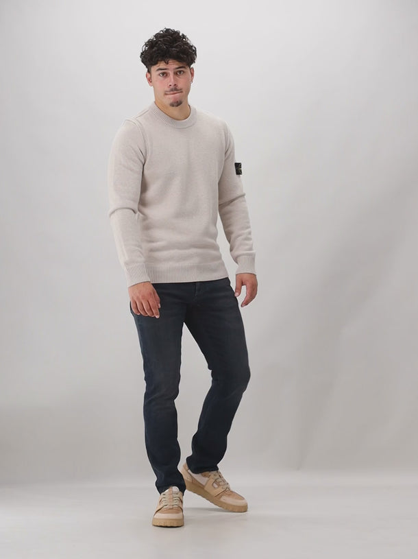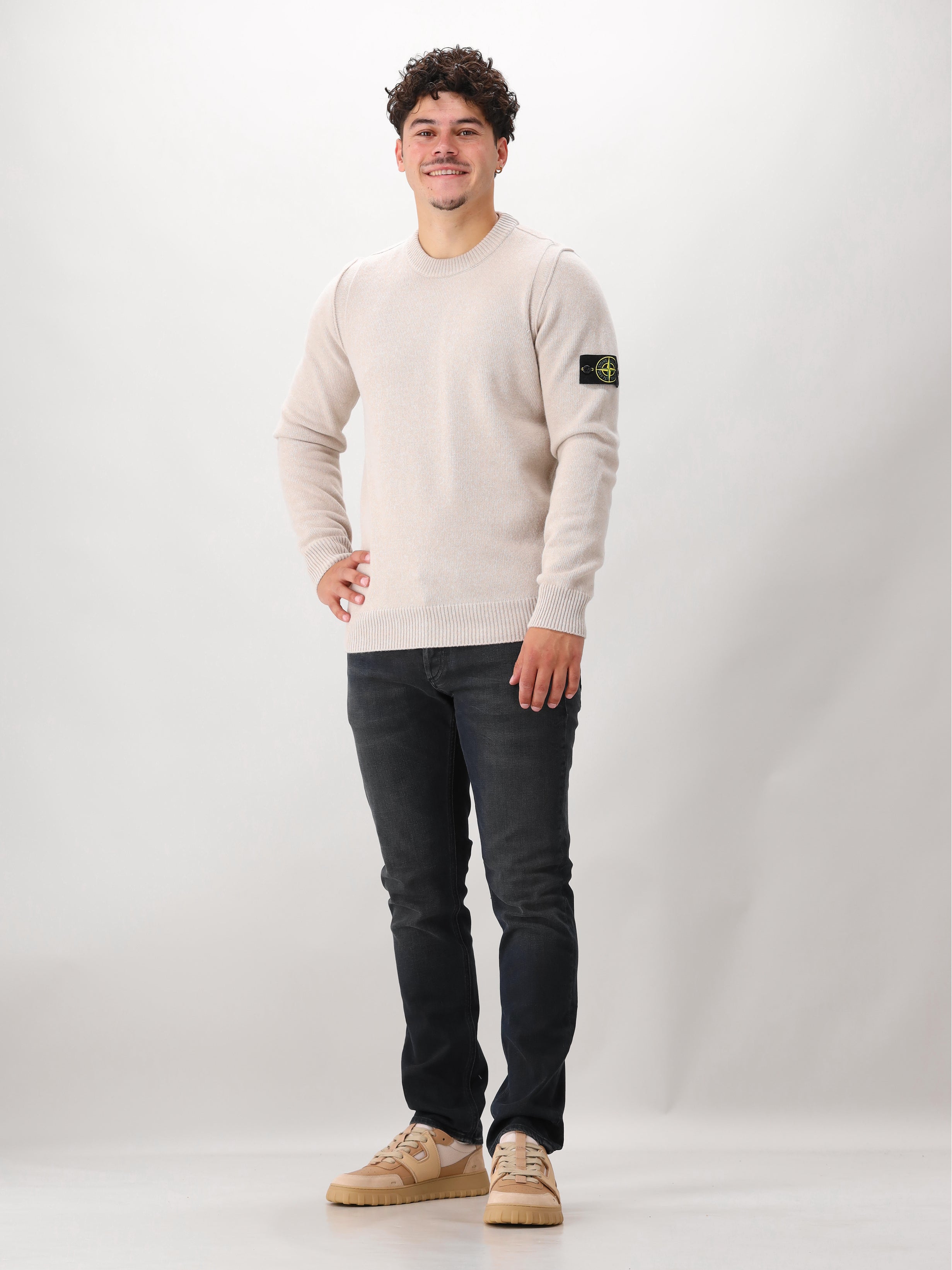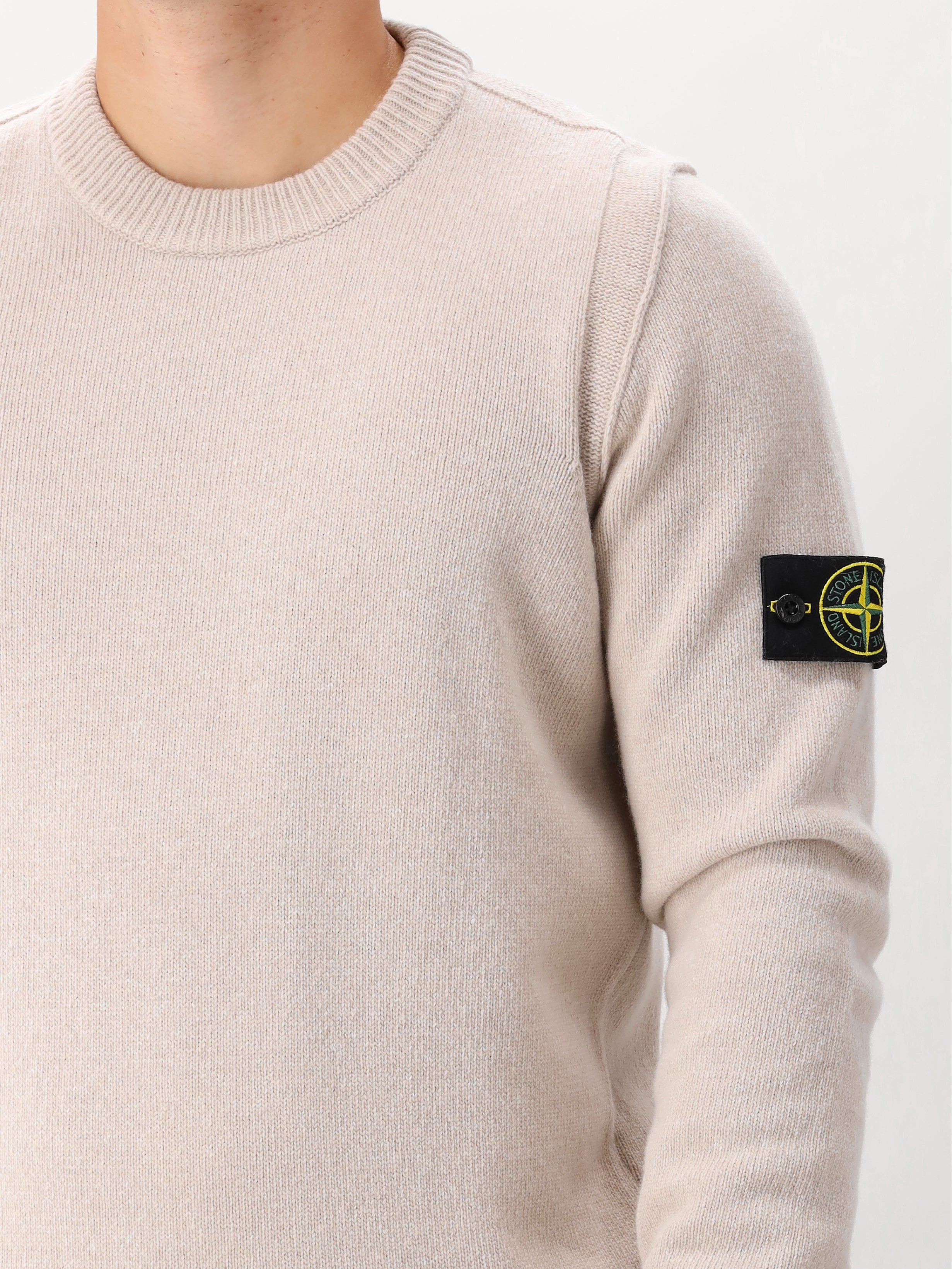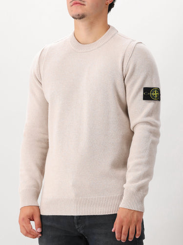 Ga voor deze beige gebreide trui van Stone Island. De trui bestaat uit een mix van wol en polyamide. Op de linkermouw vind je de Stone Island badge terug.