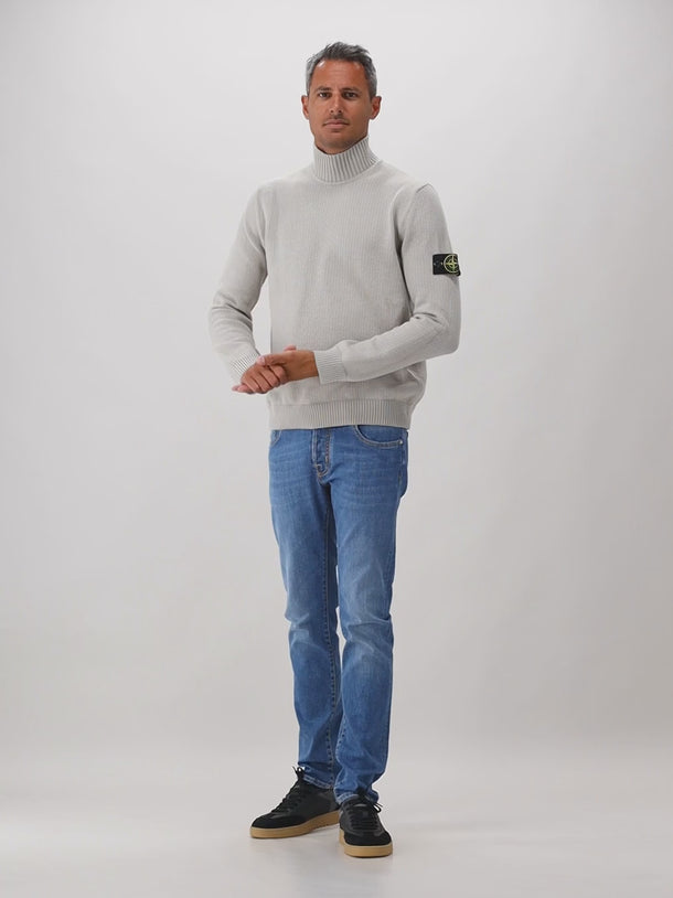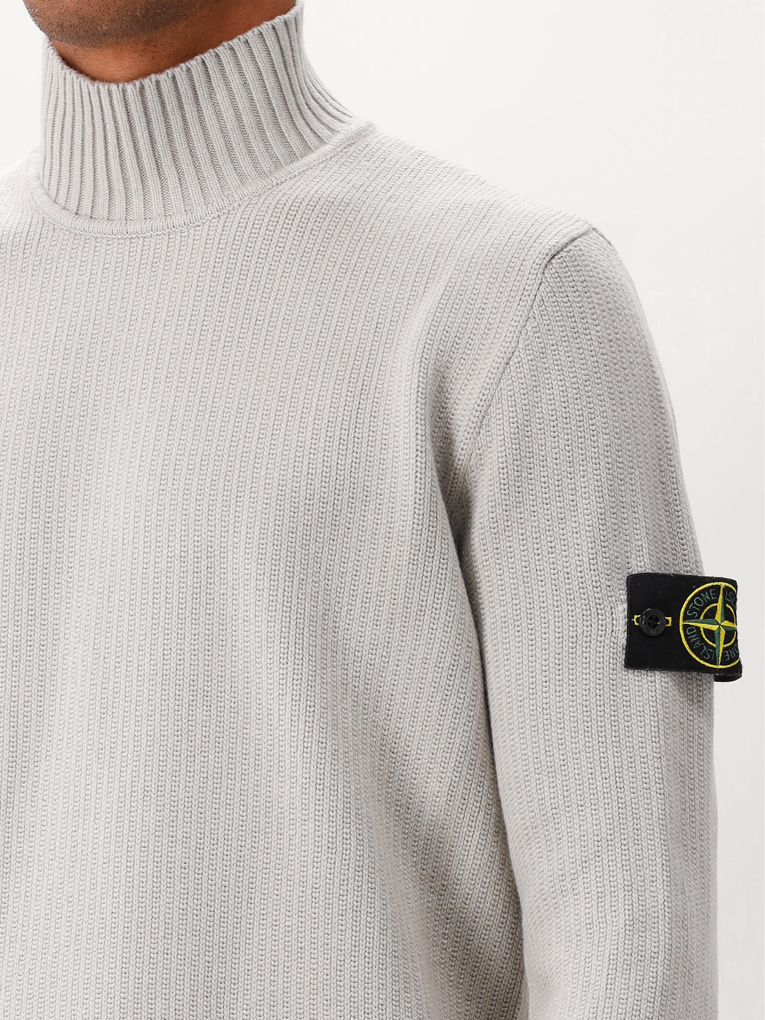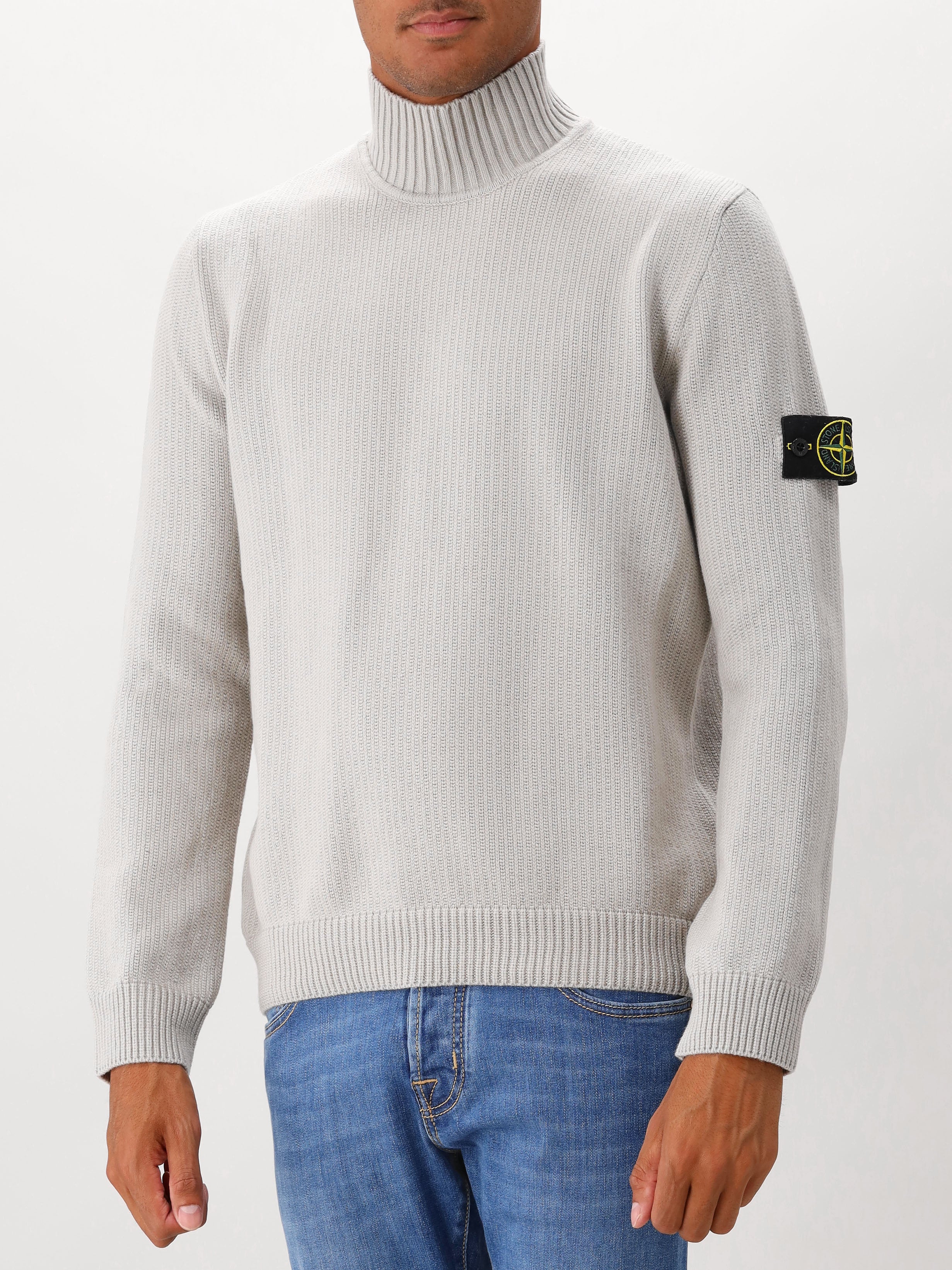 Deze grijze gebreide trui van Stone Island heeft een clean look met een minimalistisch design. Op de linkermouw vind je de Stone Island badge terug. De gebreide trui bestaat uit een mix van katoen en elastaan.