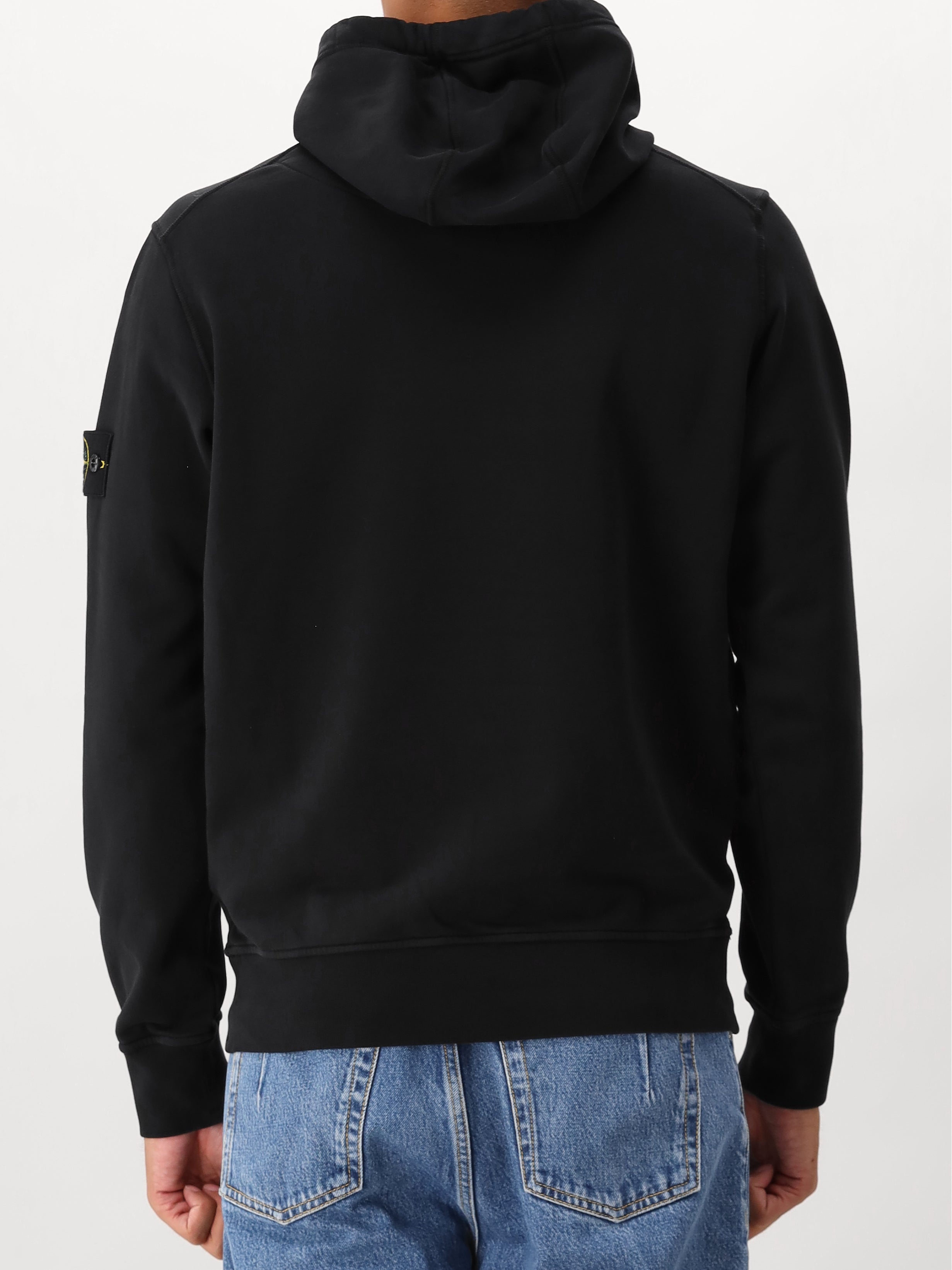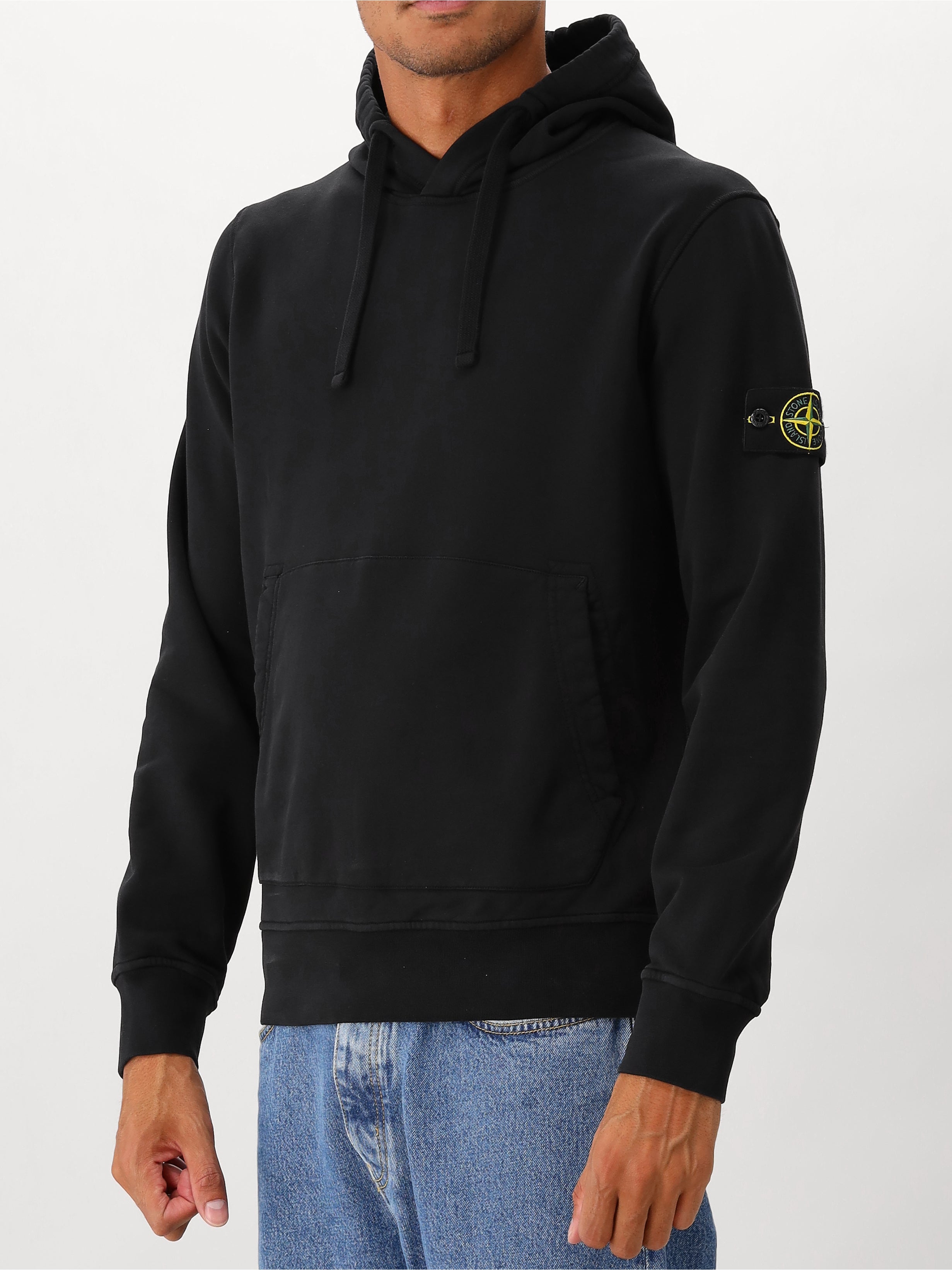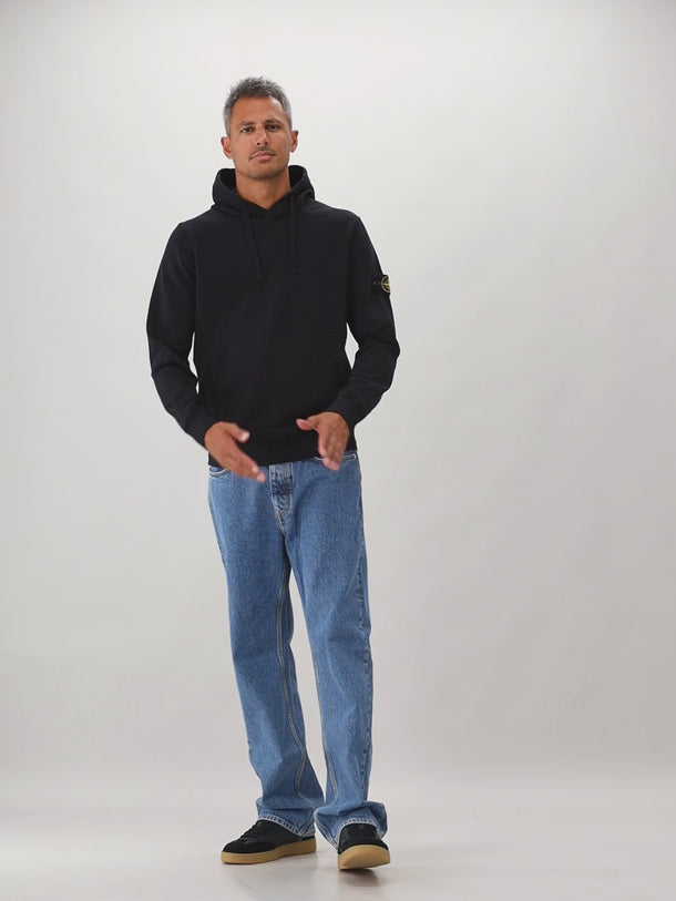 Upgrade your basics met deze zwarte hoodie van Stone Island! De hoodie heeft een egaal zwarte kleur, op de linkermouw zit de Stone Island badge bevestigd. De hoodie bestaat voor 100% uit katoen en heeft een regular/gepaste fitting.