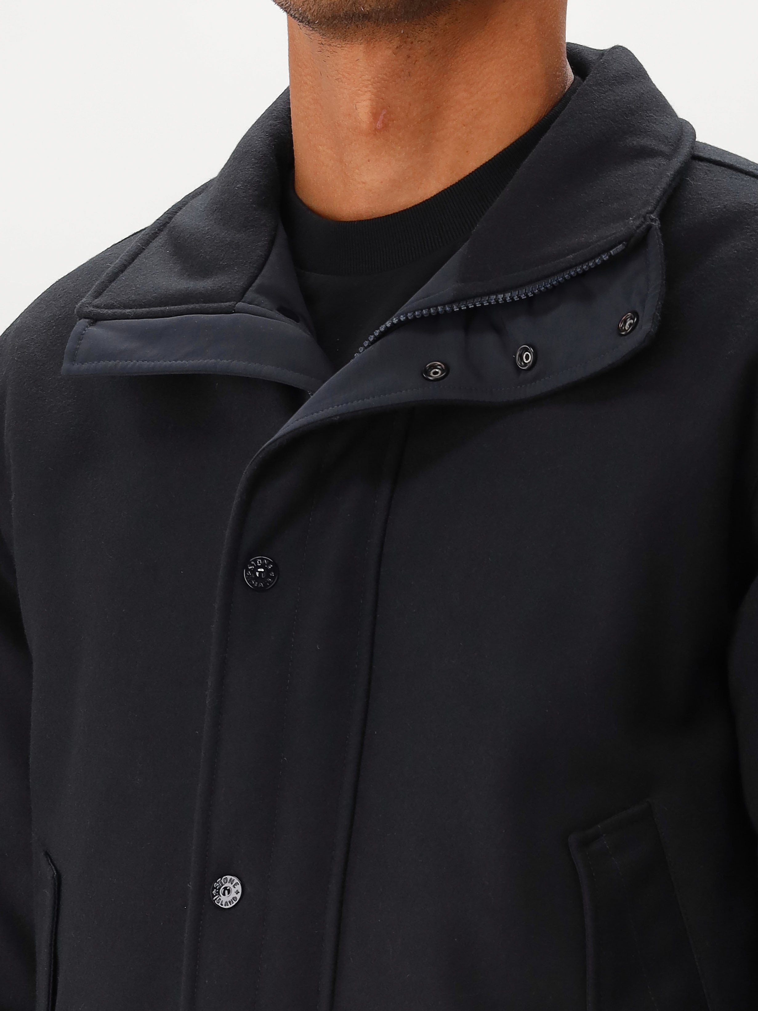 Deze wollen winterjas van Stone Island Ghost heeft een diepe, donkerblauwe kleur, die net tegen zwart aanligt. De jas komt uit de Stone Island Ghost lijn, hierdoor heeft de jas een volledig monochrome kleur, zo ook de badge op de linkermouw! De jas bestaat uit een mix van wol en polyamide, en zit erg comfortabel.