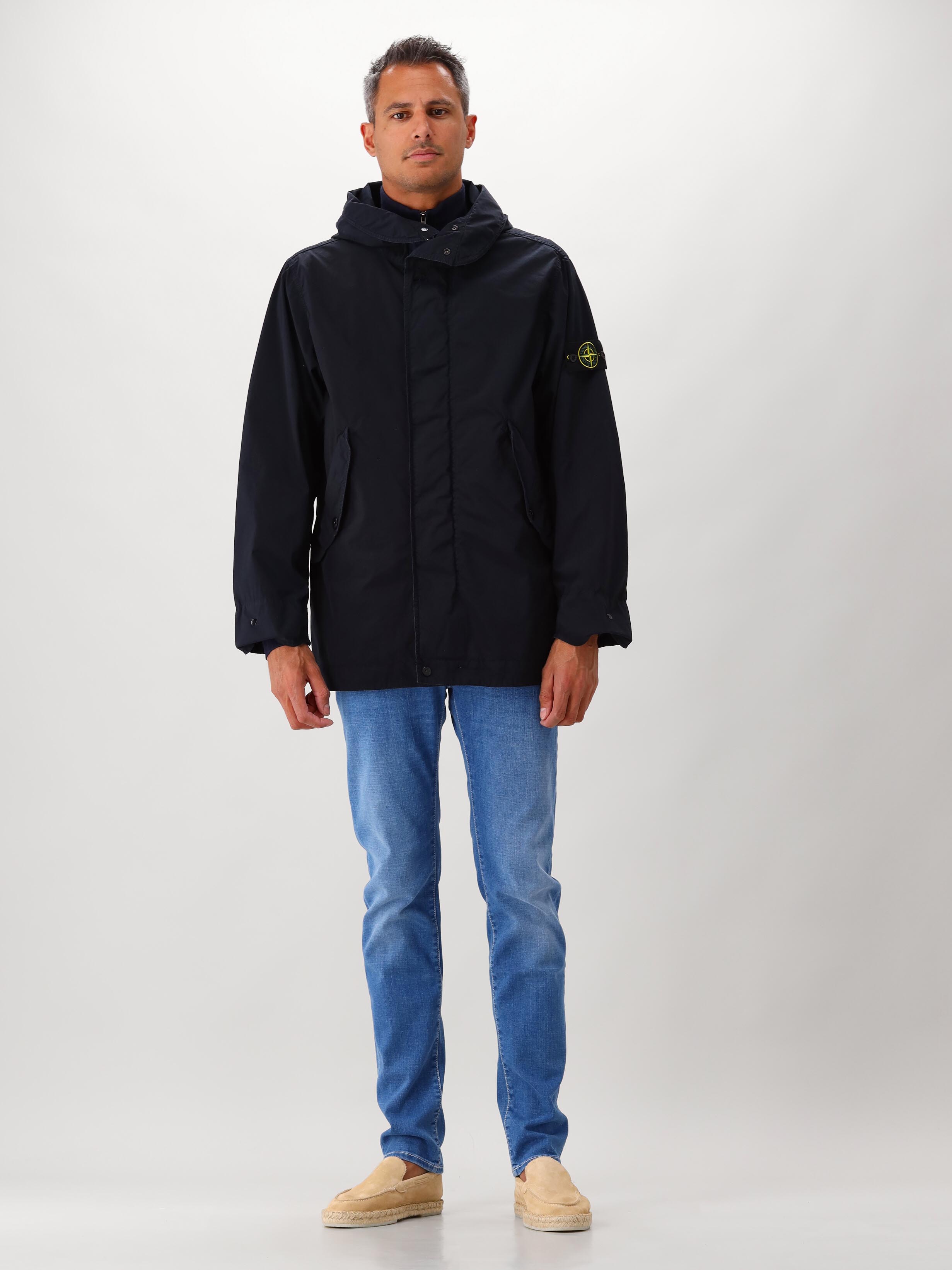 Deze blauwe jas van Stone Island heeft opvallende details bij de capuchon en rits. Op de linkermouw vind je het Stone Island logo. Deze jas is perfect als tussenjas! De donkerblauwe kleur is gemakkelijk te stijlen op verschillende broeken.