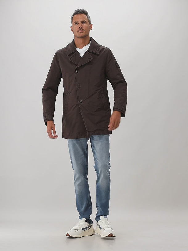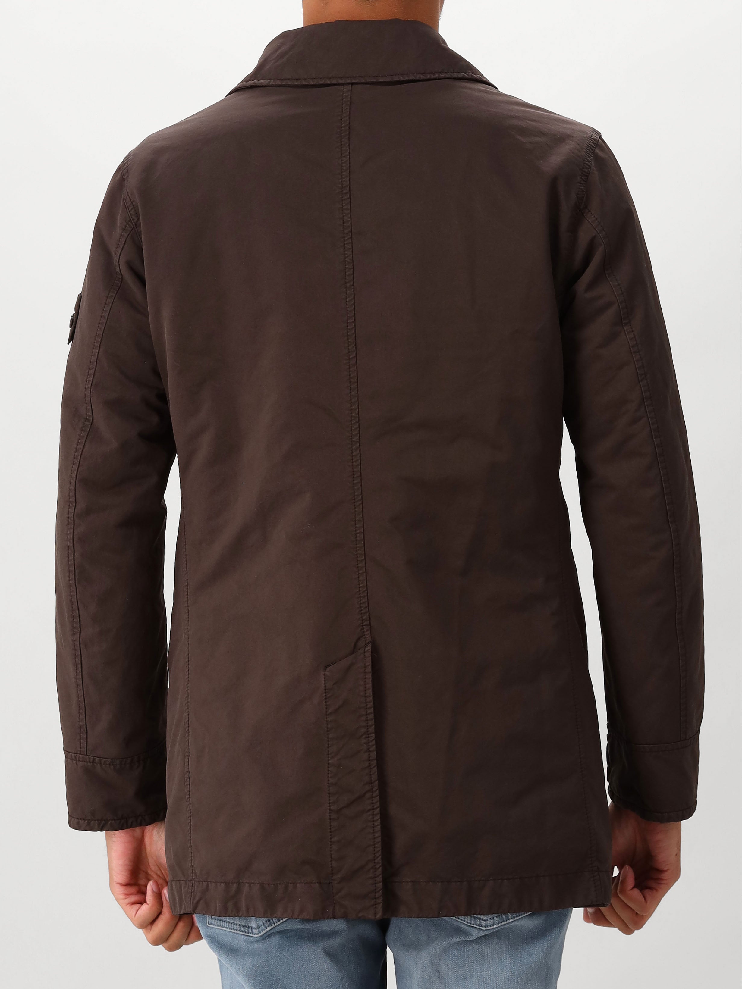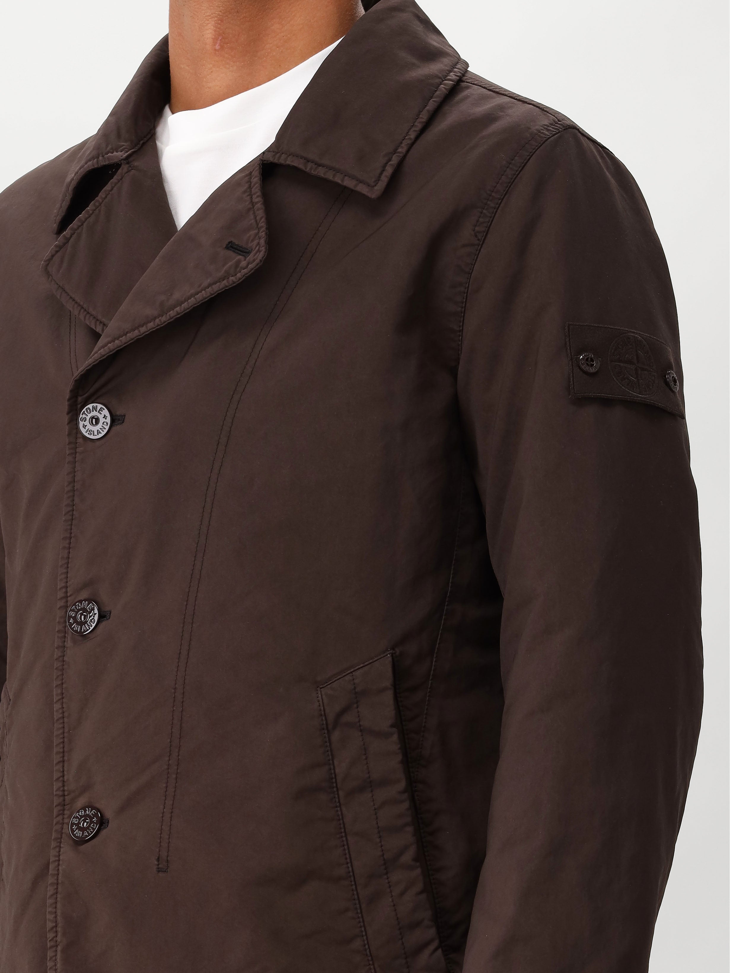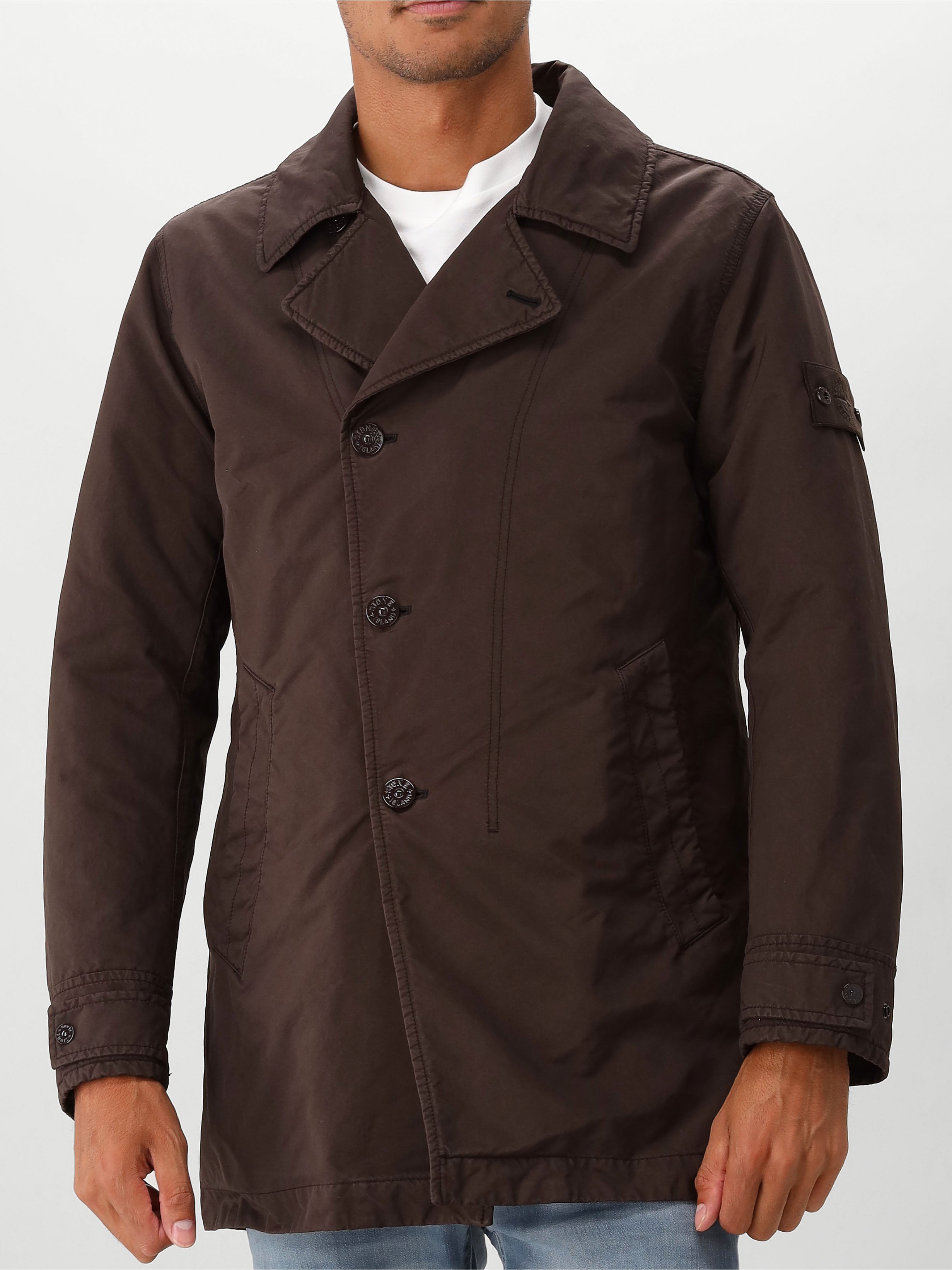 Stijlvol de deur uit met deze gelimiteerde trenchcoat van de Stone Island Ghost lijn. De jas is in een geheel monochrome bruine kleur vervaardigd en wordt met knopen gesloten. Op de linkermouw vind je de Stone Island badge in eenzelfde kleur terug. De jas is gevuld met een primaloft vulling.