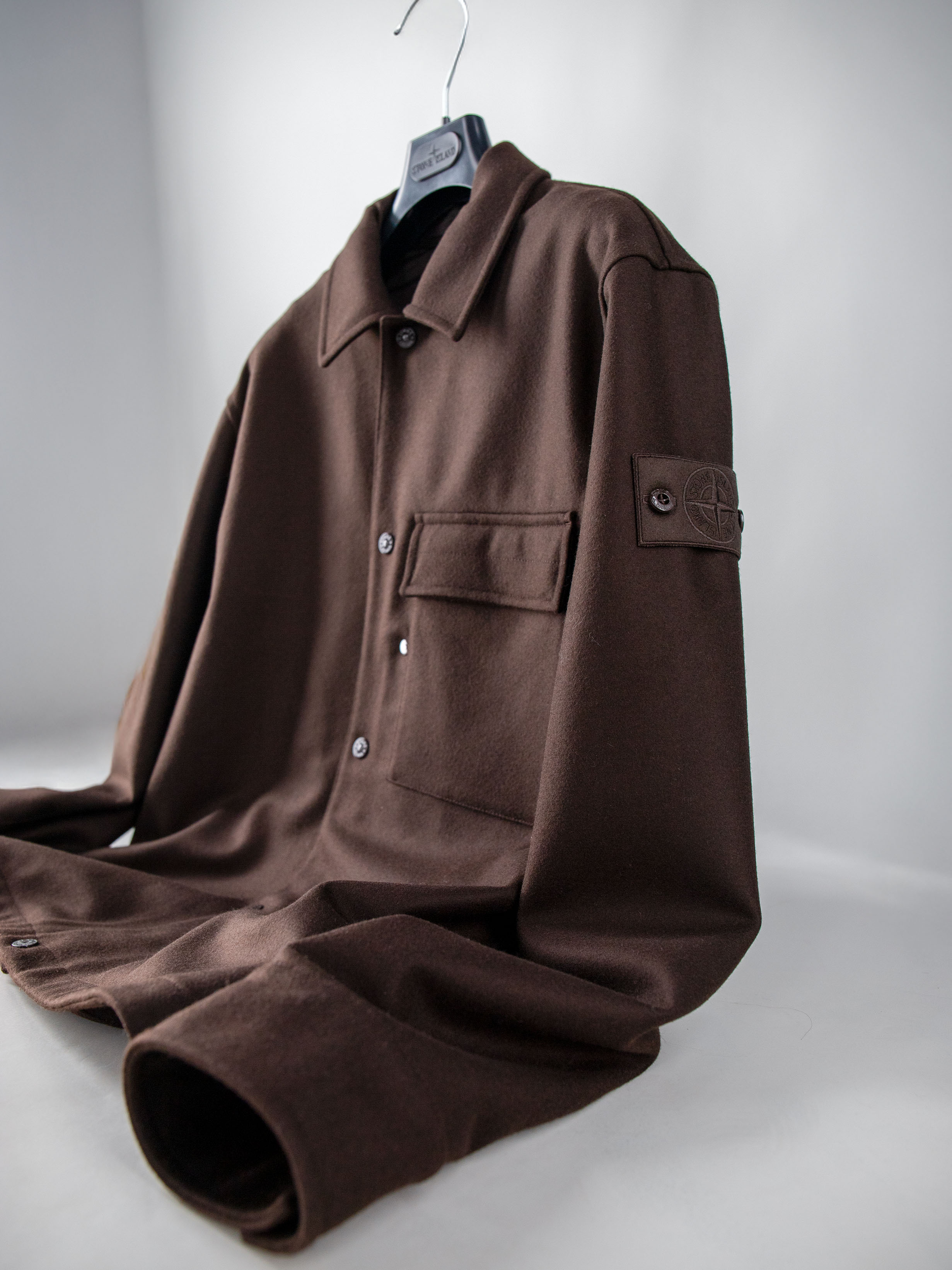 Dit wollen overshirt uit de Stone Island Ghost collectie is stijlvol en tijdloos. Op de linkermouw van het item vind je de Ghost badge in een monochrome kleur terug. De bruine kleur is veelzijdig en is perfect te stijlen op verschillende outfits.
