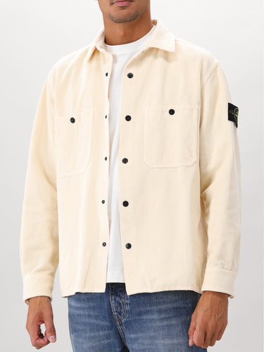 Dit beige overshirt van Stone Island heeft een ribfluweel motief. Op de linkermouw vind je een badge terug. Dankzij drukknopen wordt dit overshirt gesloten. Het overshirt bestaat volledig uit hoogwaardig katoen