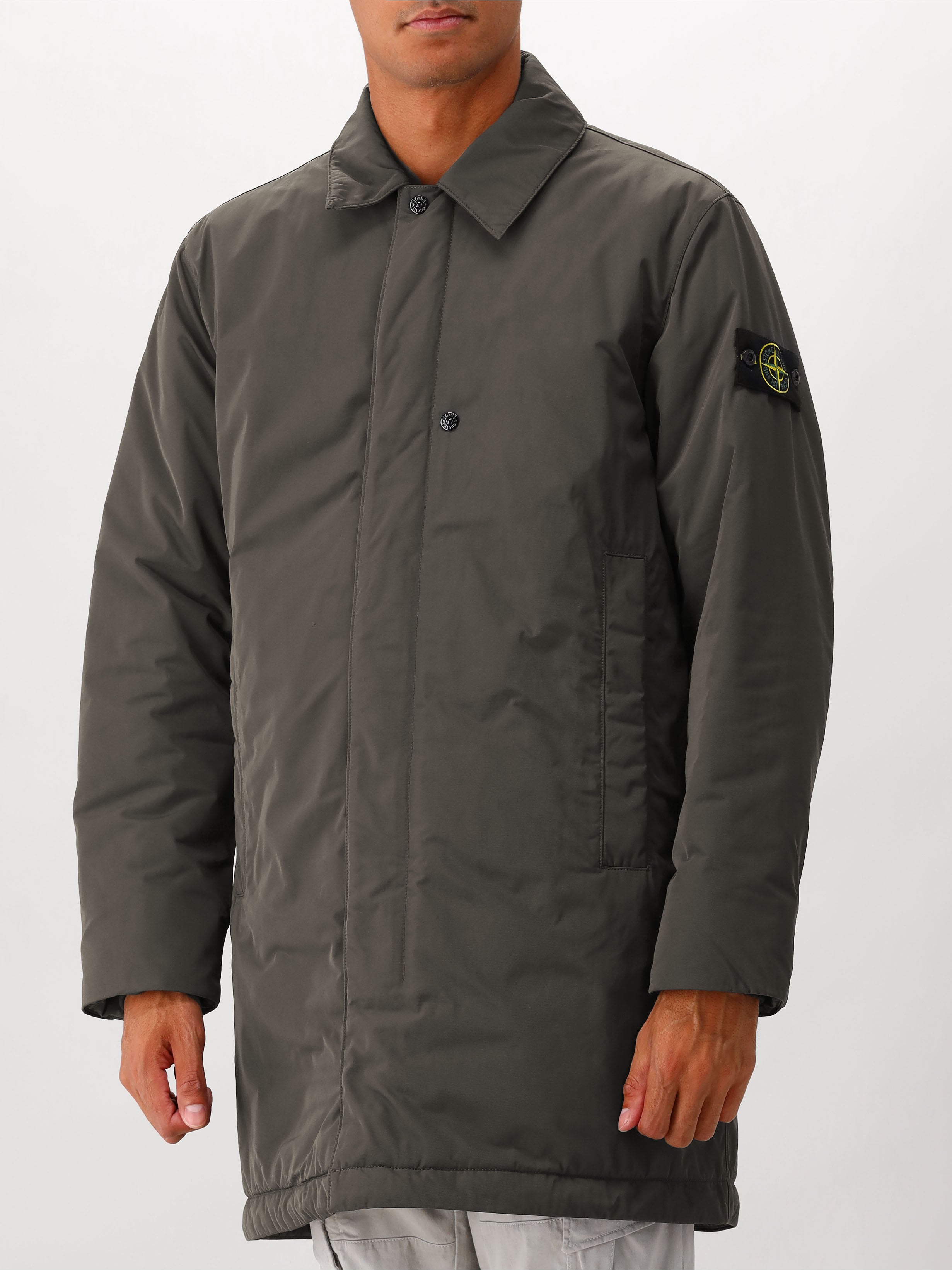 Deze grijze parka van Stone Island heeft een groenige tint. De parka is gevuld met een primaloft isolatie een duurzame optie t.o.v. dons, het houdt je warm op de koudste momenten! De jas wordt gesloten met een rits, deze kan worden afgedekt met onzichtbare knopen. Twee knopen zijn zichtbaar, deze heeft Stone Island branding. Op de linkermouw vind je de Stone Island badge.
