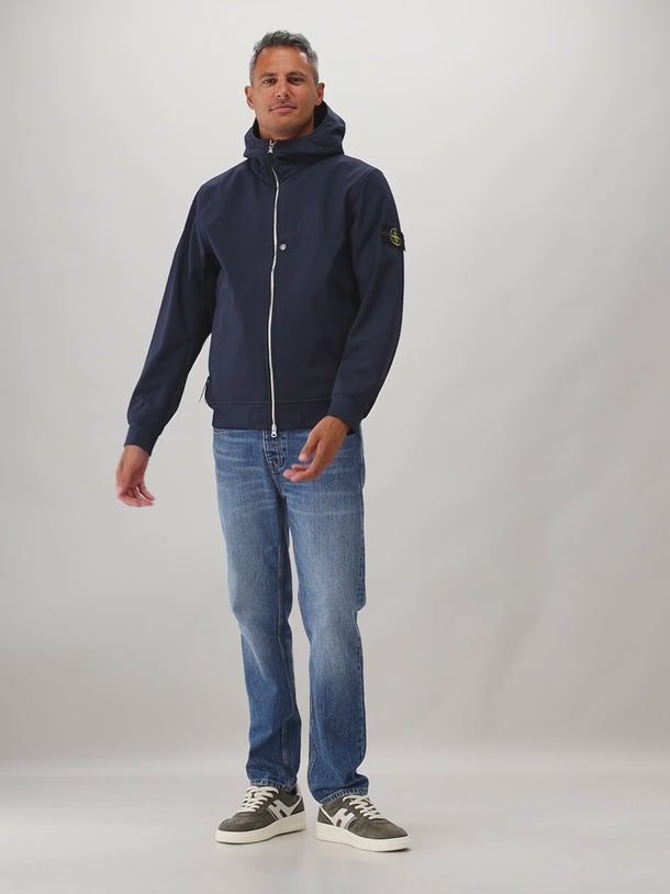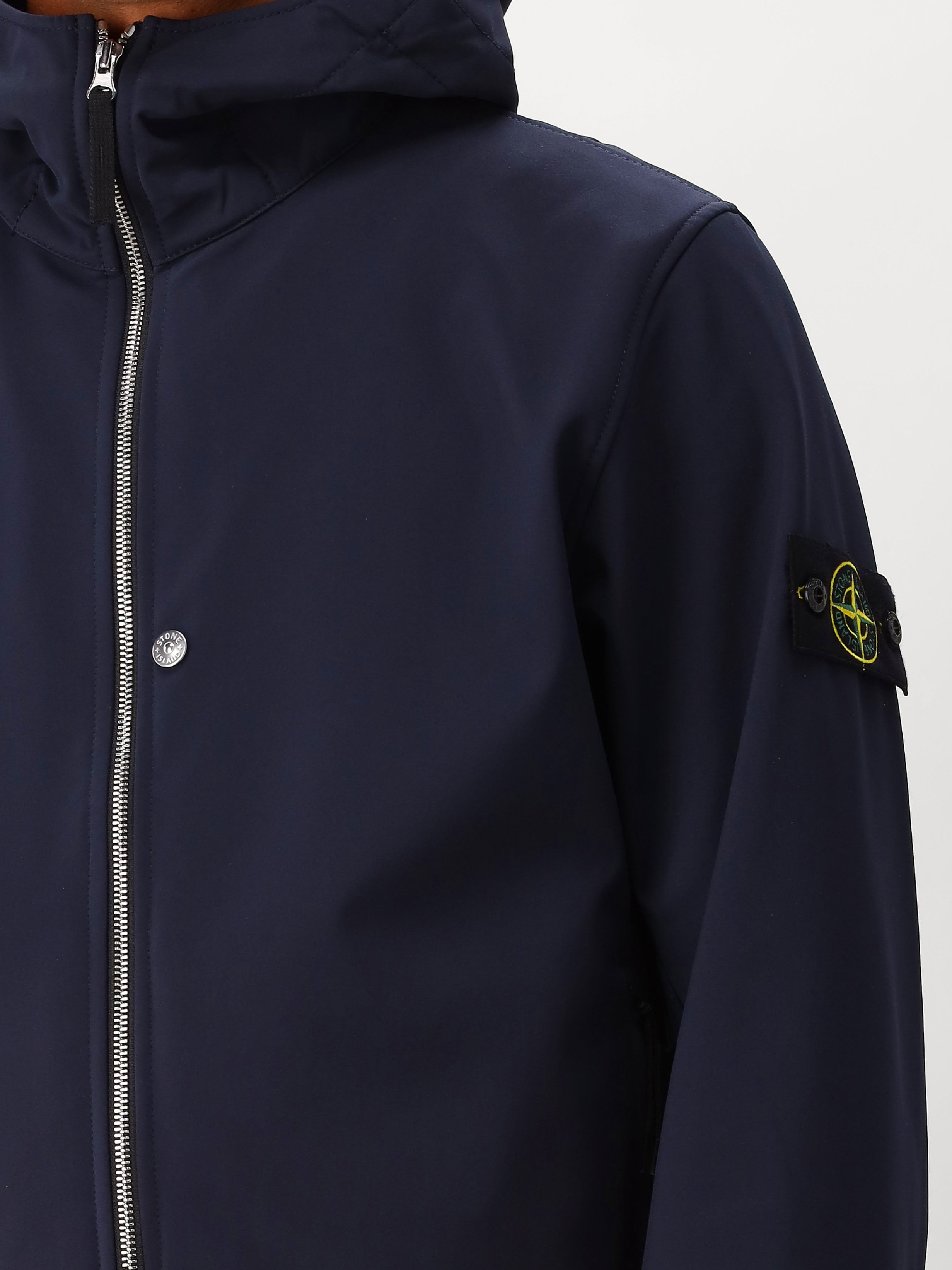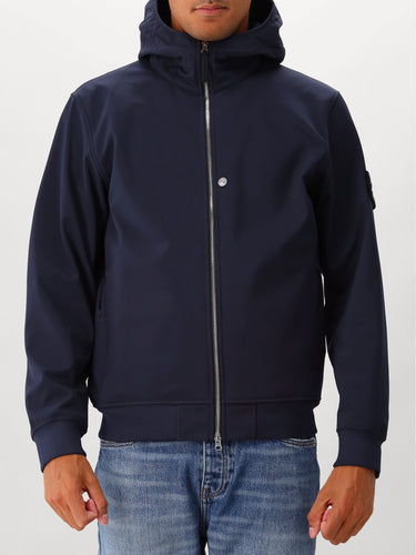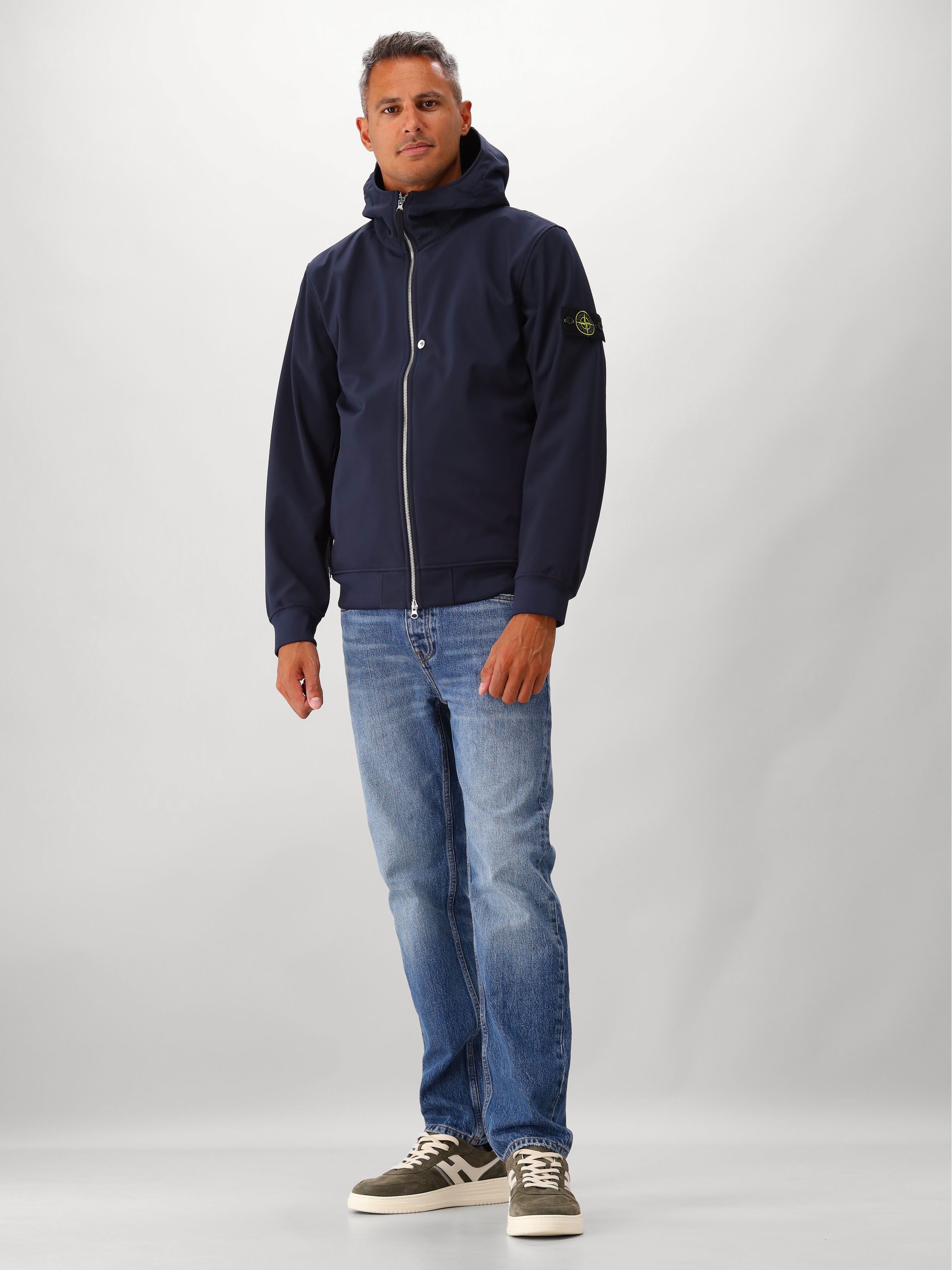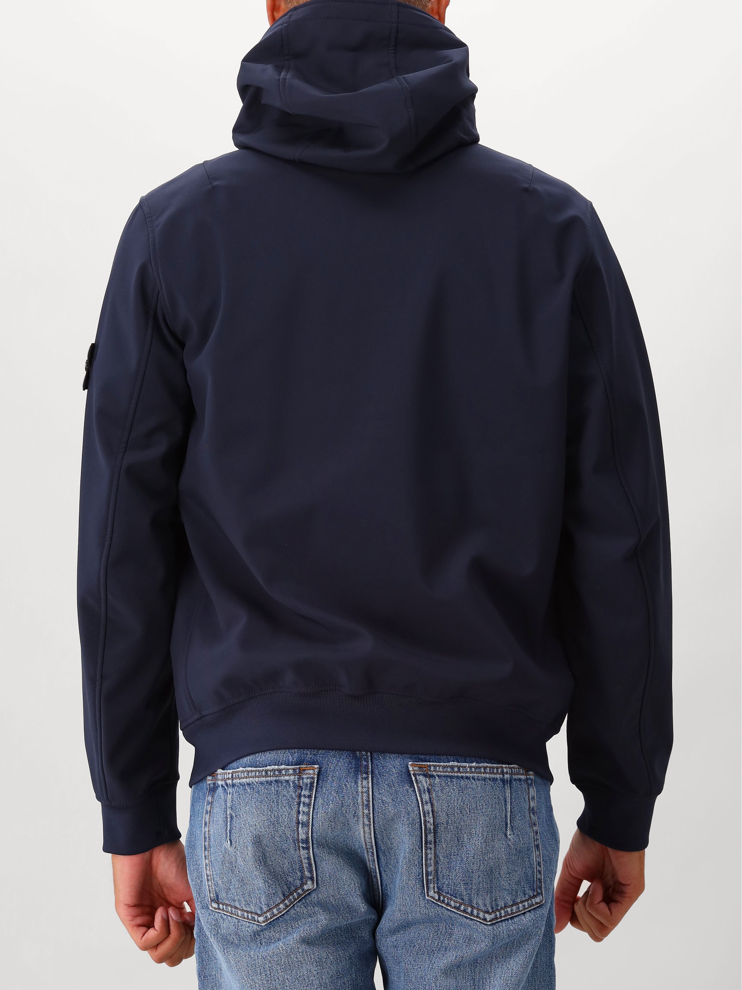 Stijlvol en comfortabel de deur uit met deze navyblauwe softshell van Stone Island. Het item bestaat uit een mix van polyester en elastaan. Op de linkermouw vind je de Stone Island badge terug. In het midden van de softshell vind je een knoop met merkdetails terug.