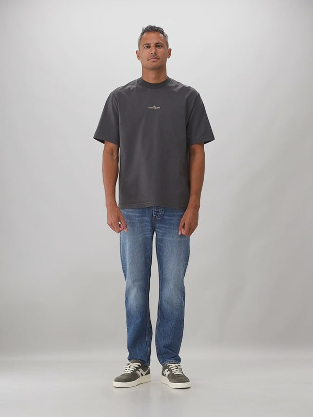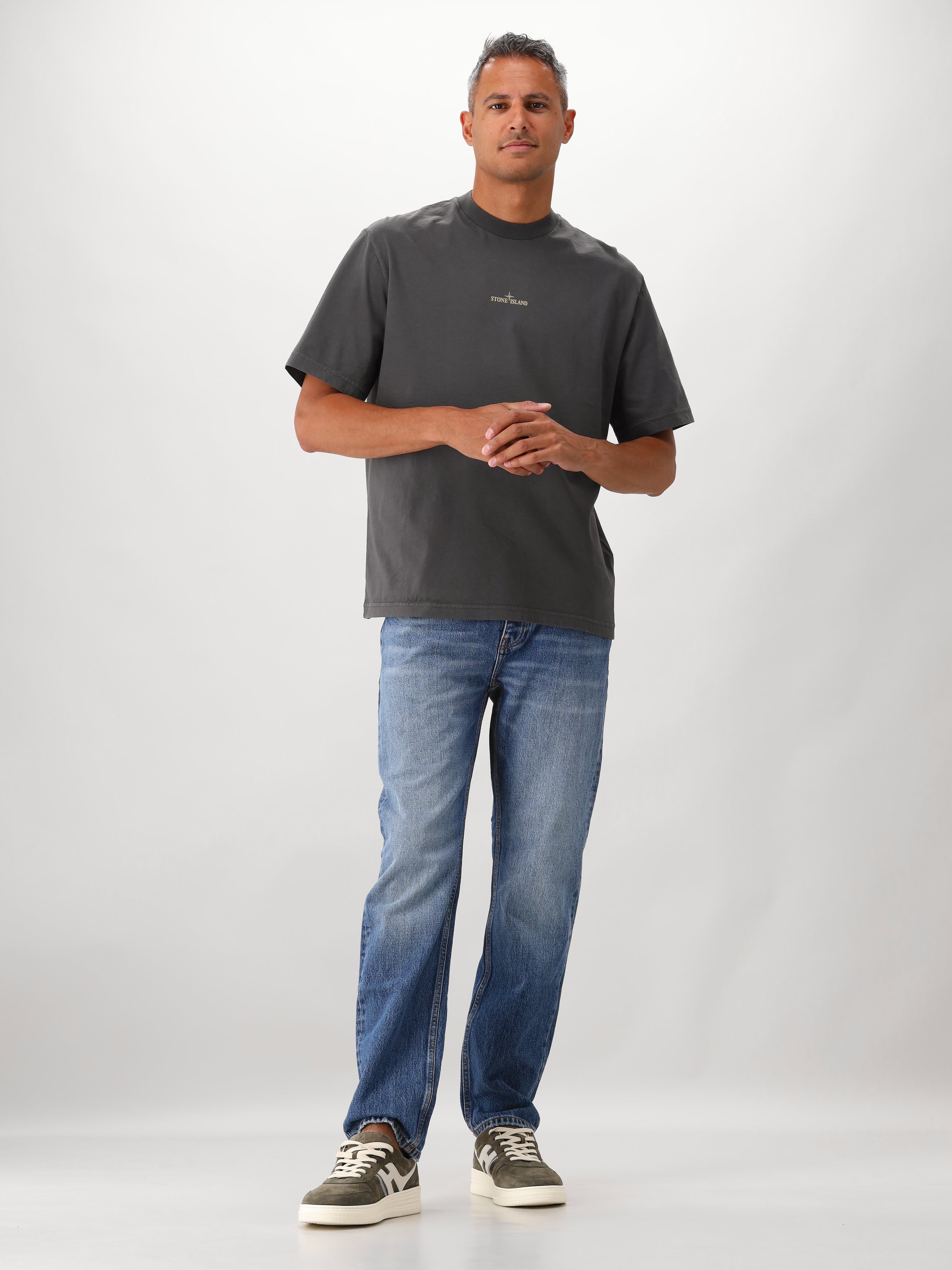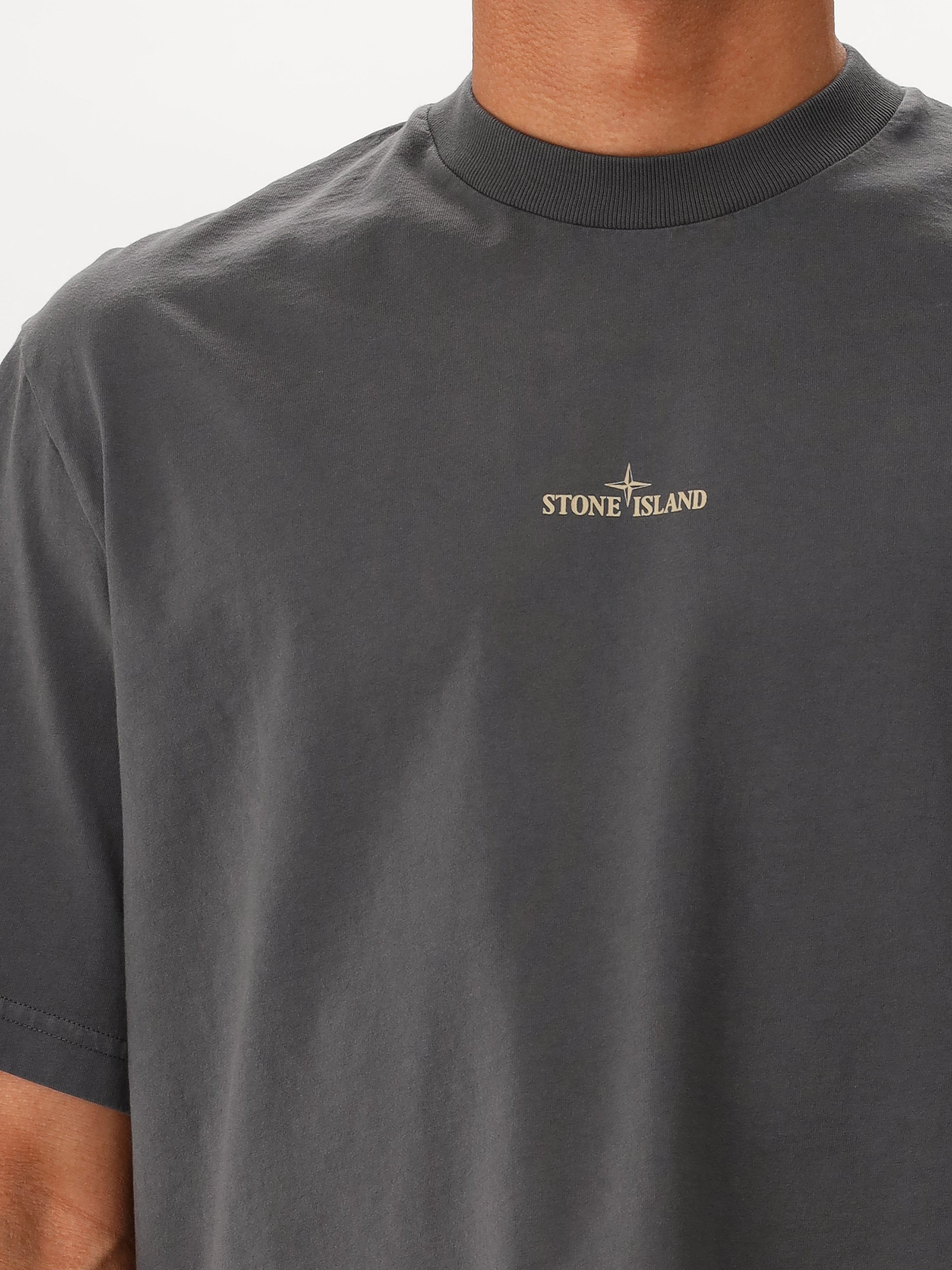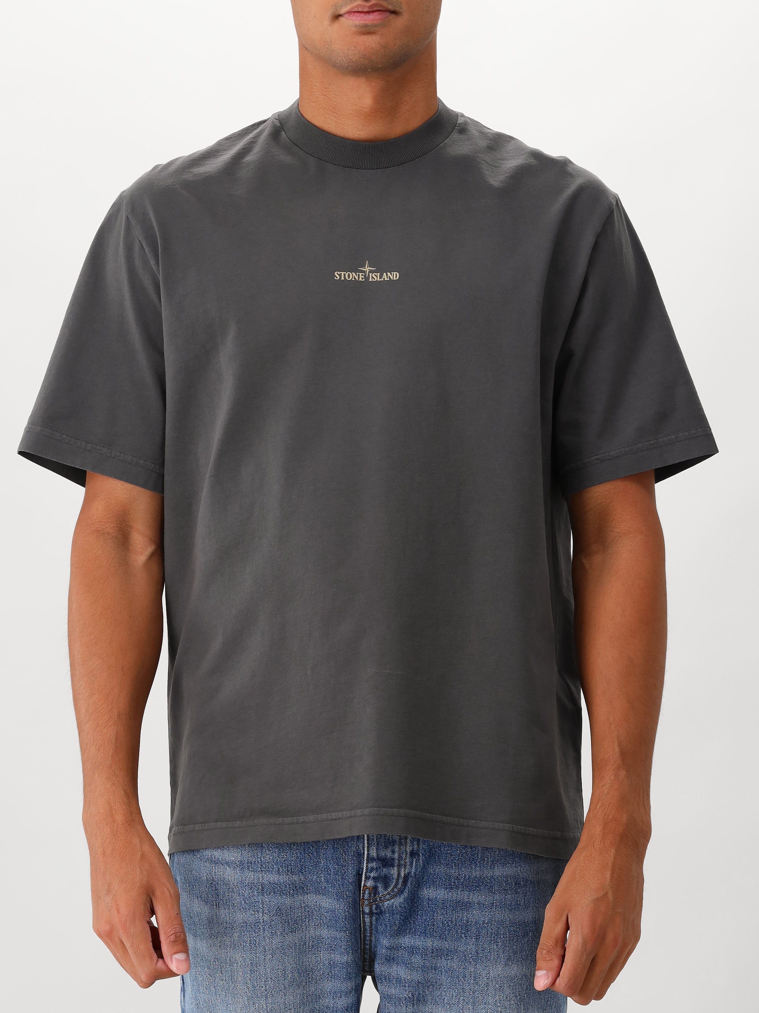 Dit donkergrijze T-shirt van Stone Island bestaat volledig uit katoen. Op de rug vind je een groot merkdesign van Stone Island. Het T-shirt heeft een relaxed fitting en bestaat 100% uit katoen.