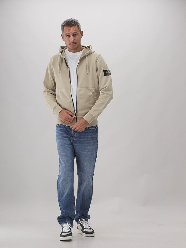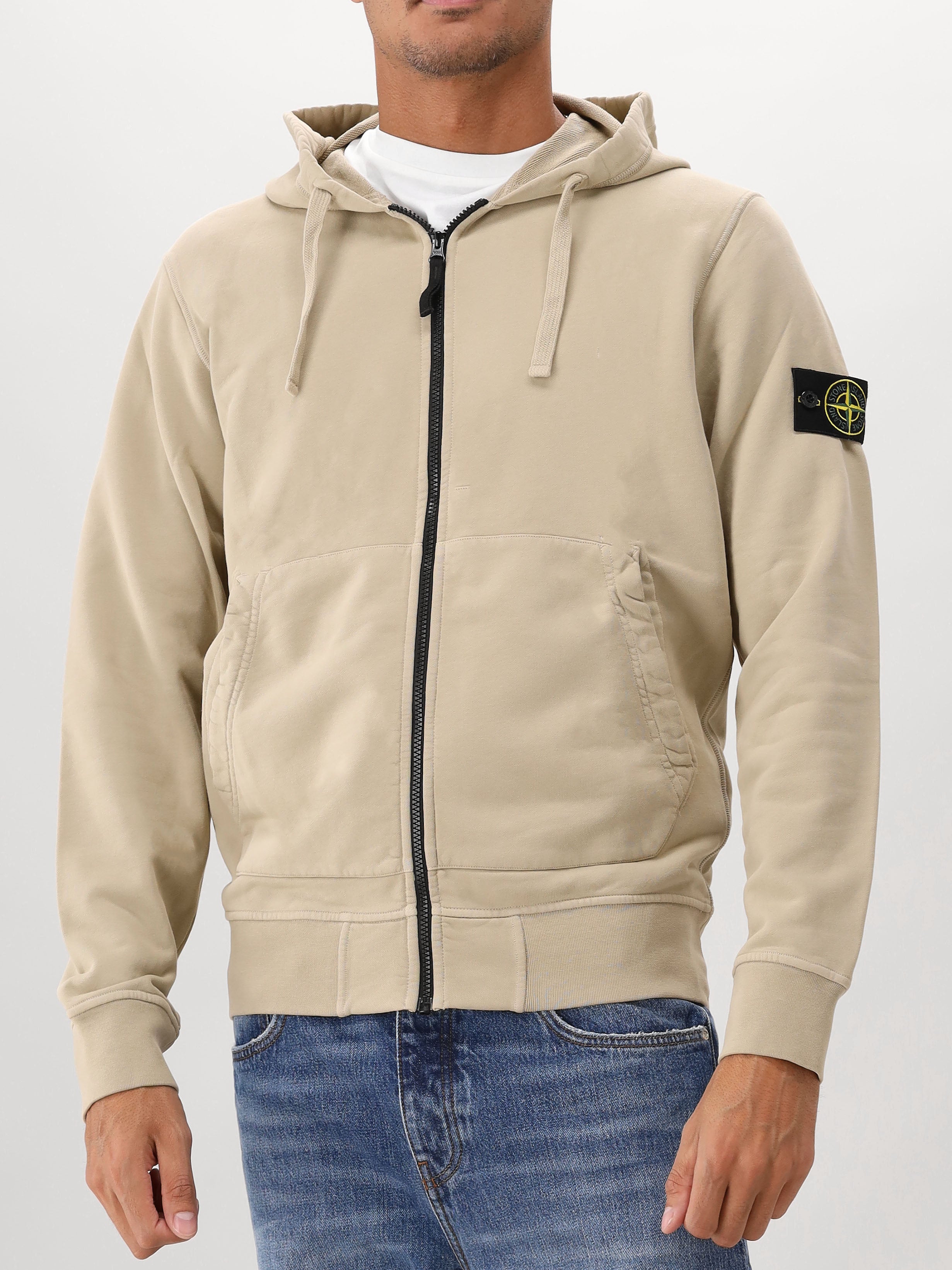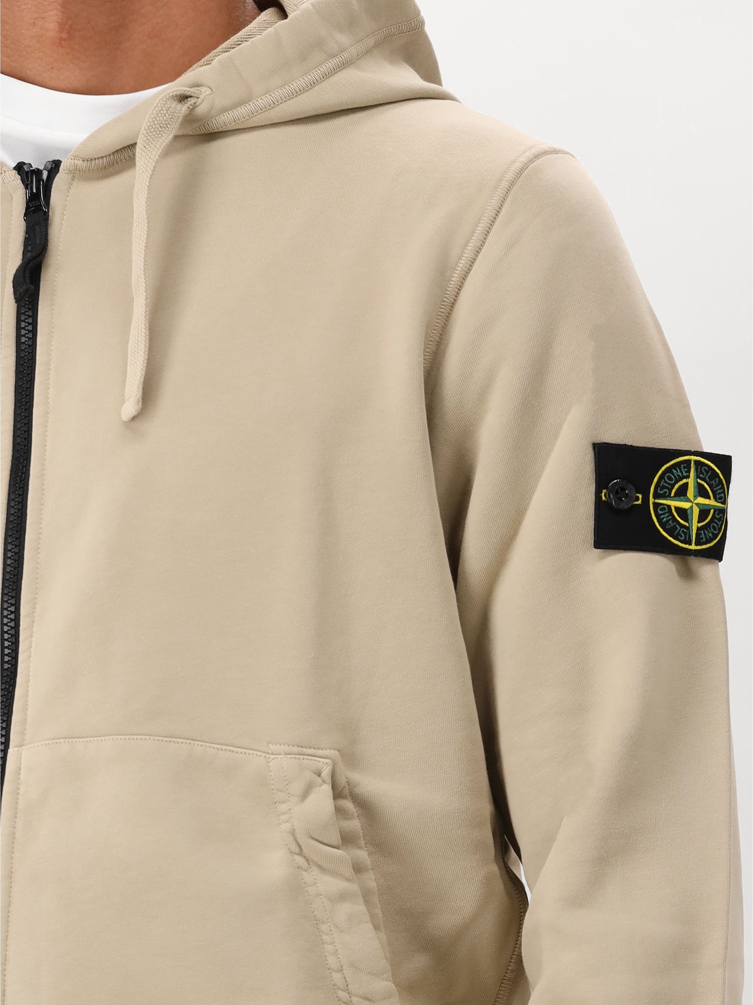 Kies voor dit beige sweatvest van Stone Island. Op de linkermouw vind je de badge terug. het item bestaat voor 100% uit katoen. De zwarte rits contrasteert mooi ten opzichte van het item zelf.