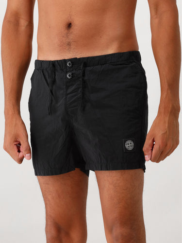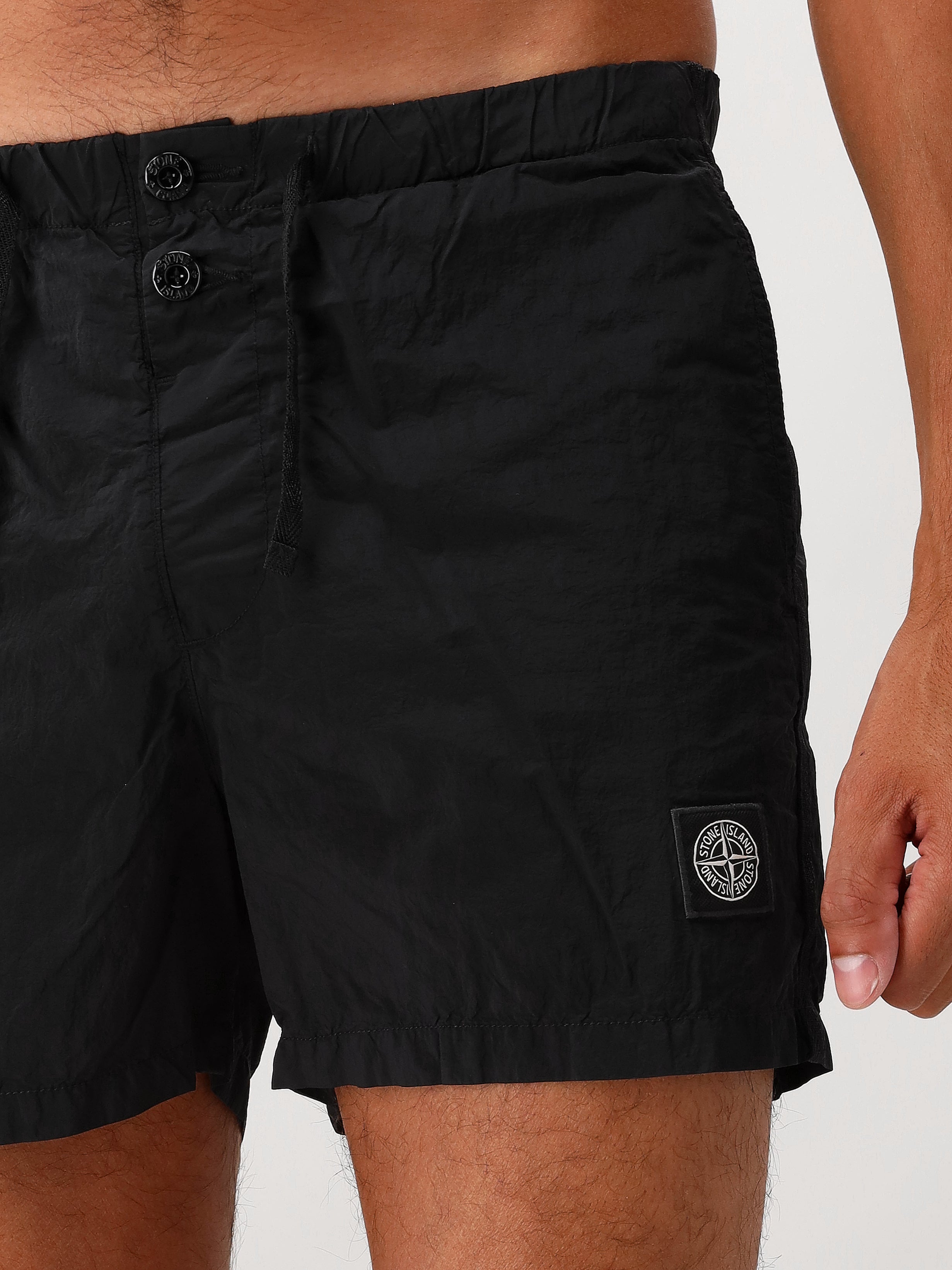 Deze zwarte zwembroek van Stone Island heeft een patch op het linkerbeen. De broek wordt met zowel een koord door de tailleband als een knoopsluiting gesloten. De zwarte kleur is geschikt voor ieder moment!