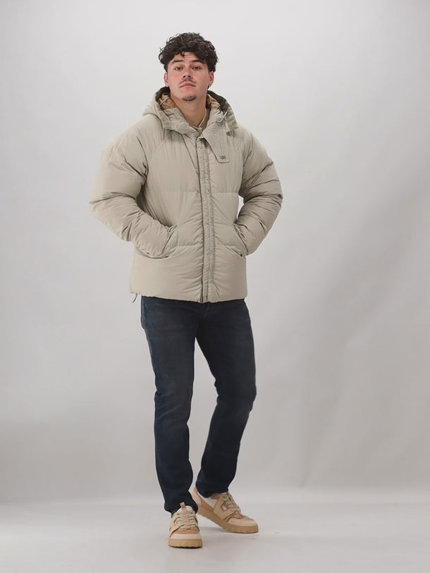 Deze winterjas van Ten-C is gevuld met dons en houdt je heerlijk warm tijdens koude dagen. De jas sluit met een rits én knopen en heeft een capuchon voor extra bescherming tegen wind en regen. De buitenkant is gemaakt van polyamide en de jas is voorzien van handige zakken die sluiten met een drukknoop. Functioneel, comfortabel en stijlvol.