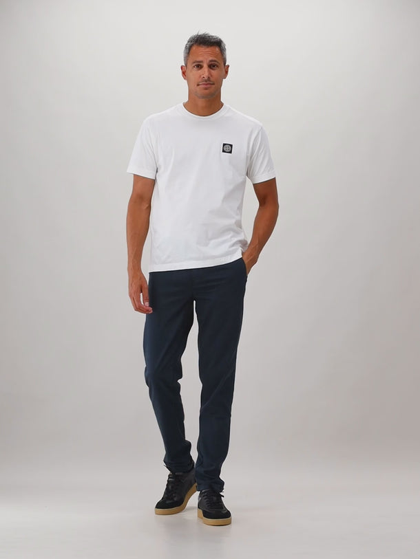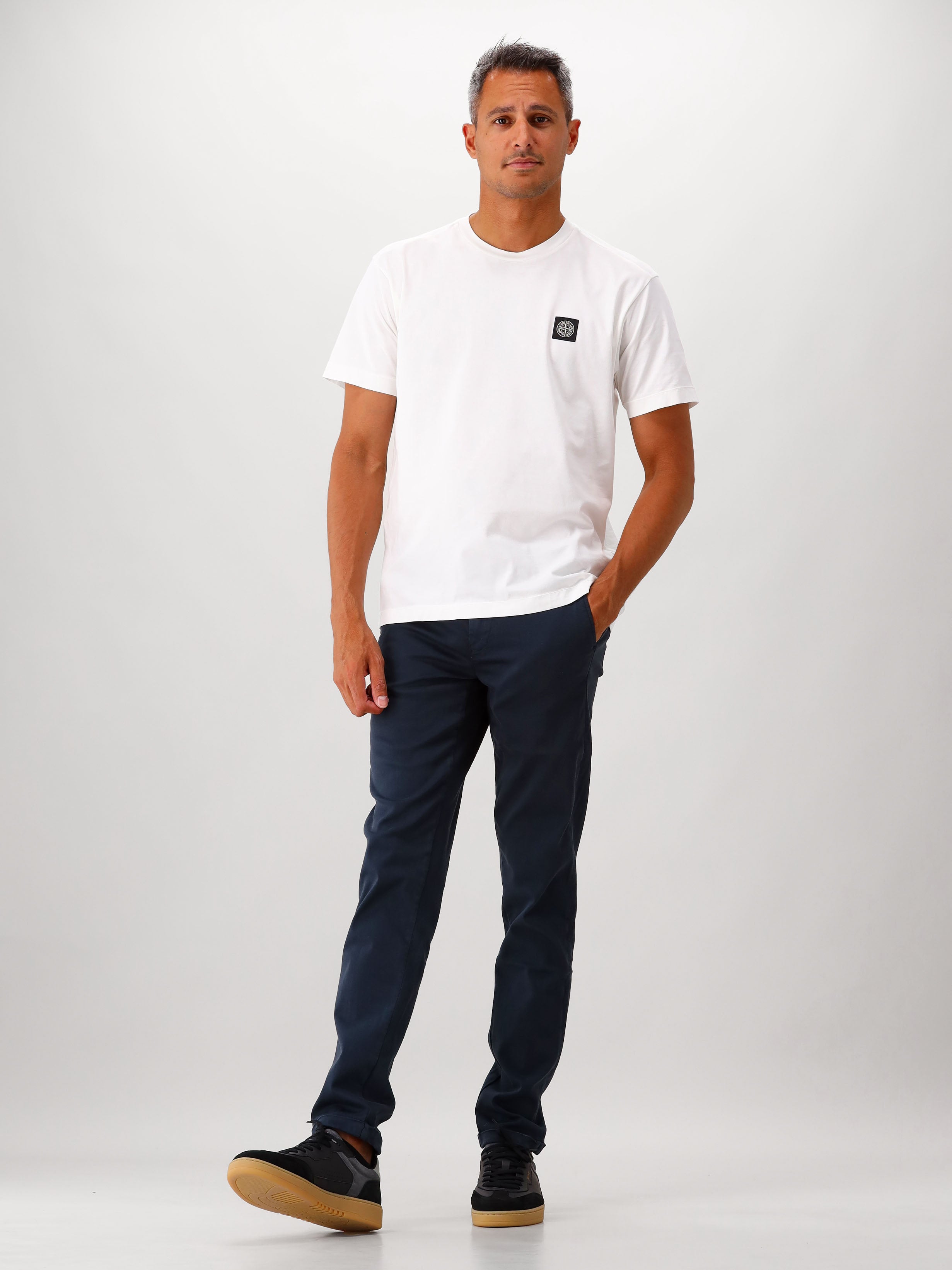 De Tramarossa Chino Blauw Luis GS365 Dark Blue is een herenchino in een donkerblauwe kleur, gemaakt van een comfortabele katoenmix met een lichte stretch. Het model heeft een slim fit pasvorm, wat betekent dat de broek een slankere snit heeft die aansluit bij het lichaam zonder te strak te zitten. De chino is voorzien van een rits- en knoopsluiting, schuine zakken aan de voorkant en achterzakken.