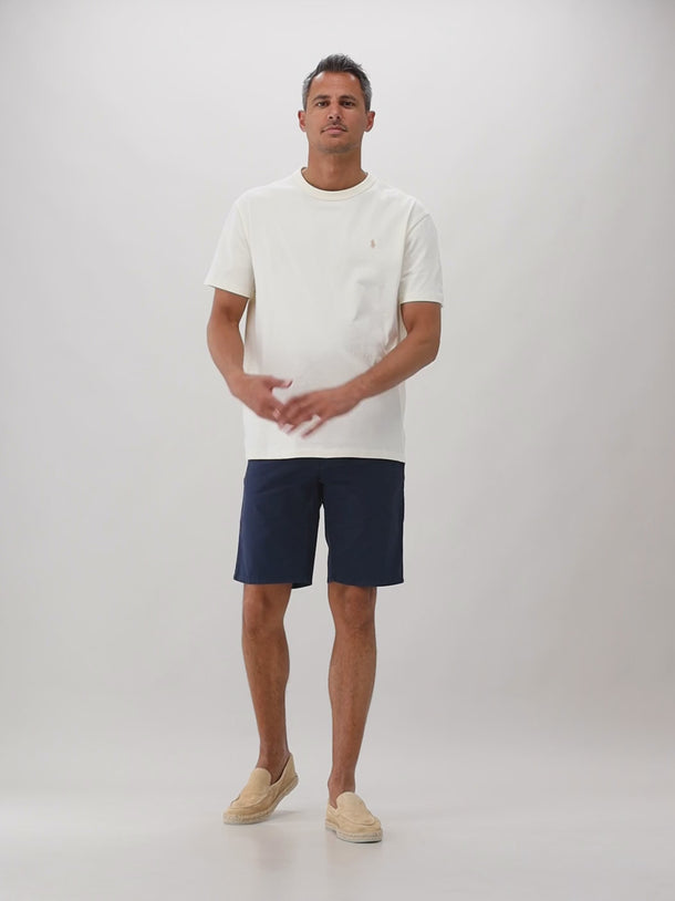 Deze Tramarossa korte broek in donkerblauw is gemaakt van een hoogwaardige katoenblend met een lichte stretch, wat zorgt voor optimaal draagcomfort. De korte broek heeft twee steekzakken en twee achterzakken. Ook heeft het ontwerp riemlussen.