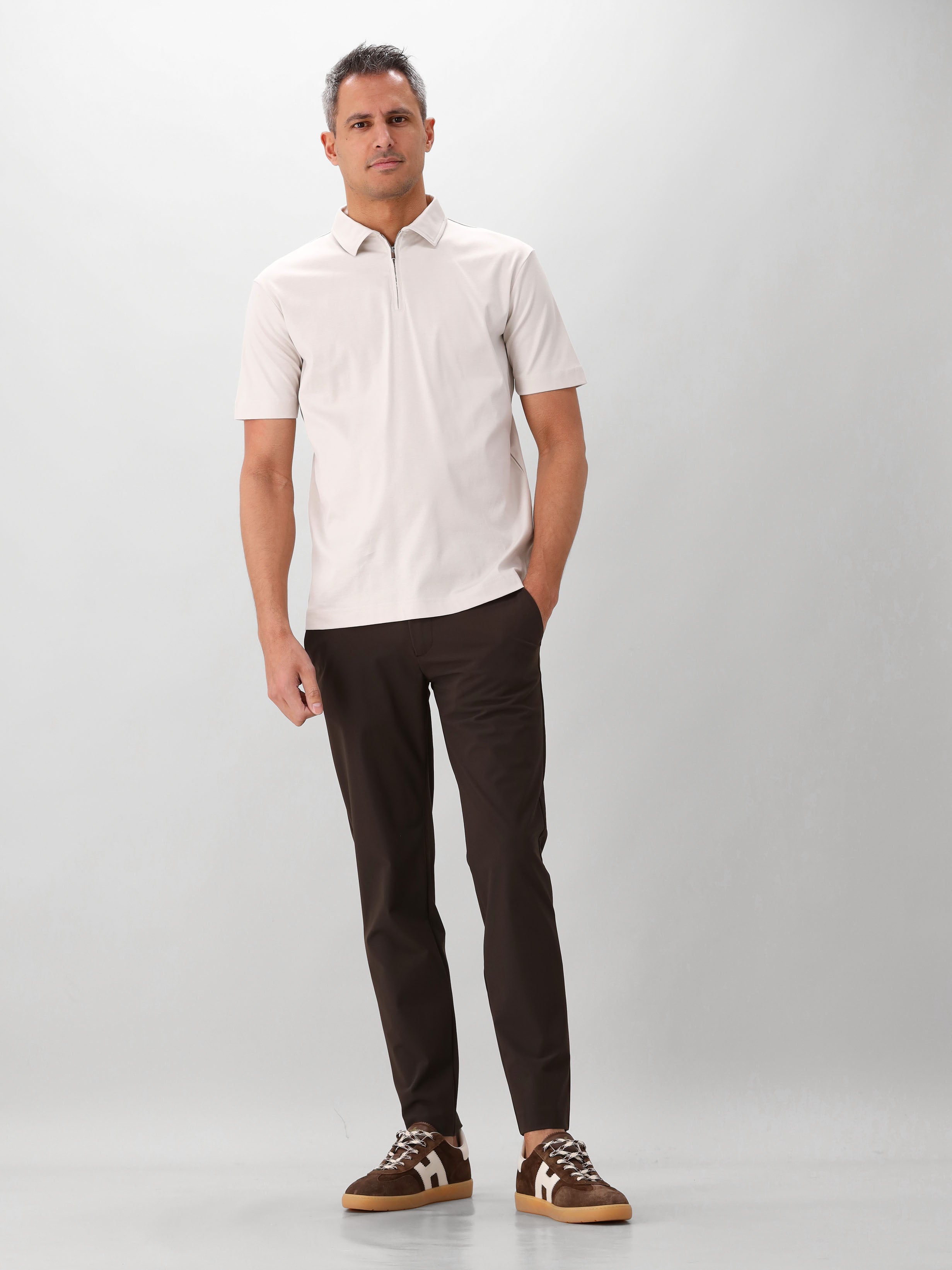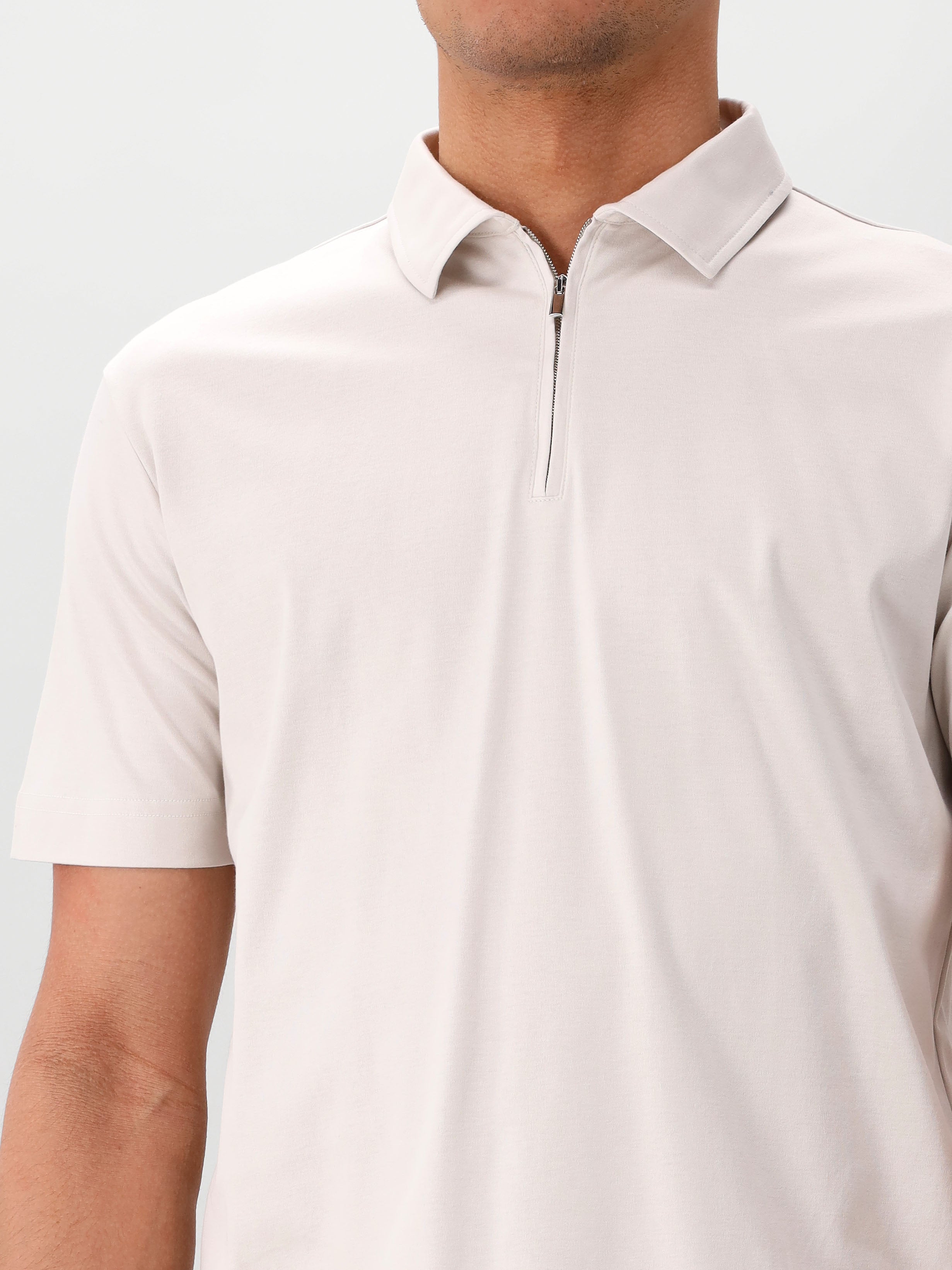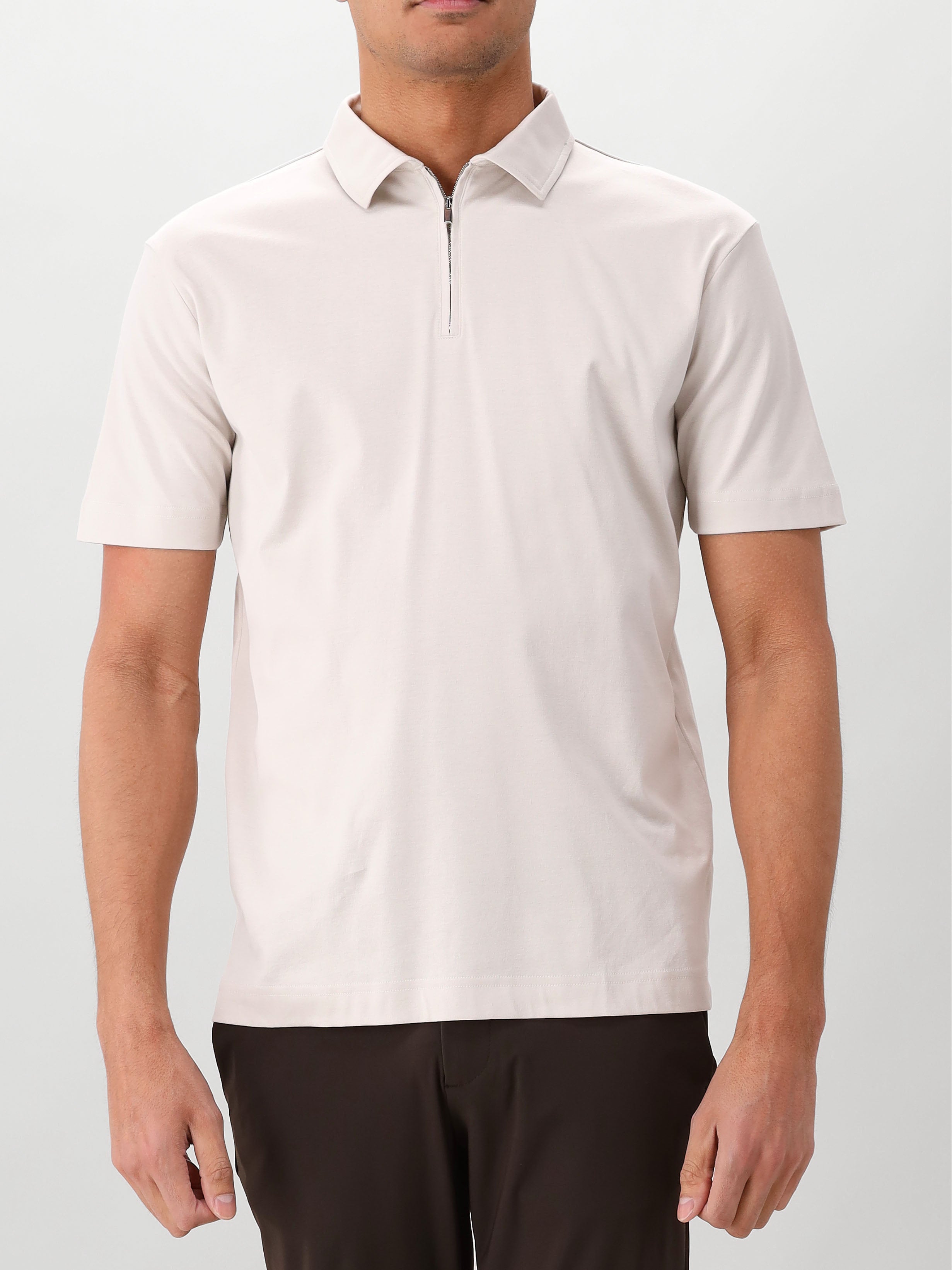 De pearl grey kleur is neutraal en gemakkelijk te combineren met verschillende broeken en shorts. Perfect voor zowel casual als smart-casual gelegenheden. De tailored fit zorgt voor een getailleerde en elegante pasvorm. De ritskraag geeft je de mogelijkheid om de polo zowel gesloten als open te dragen.