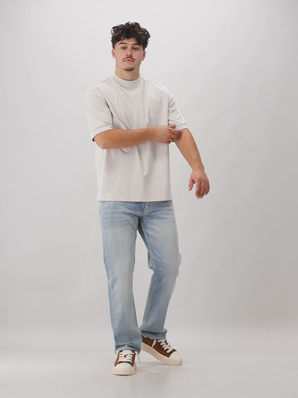 Dit beige T-shirt van Valenza heeft een oversized fitting en bestaat volledig uit Supima katoen. Het T-shirt heeft een glanzende look. Het T-shirt heeft geen opzichtige branding.