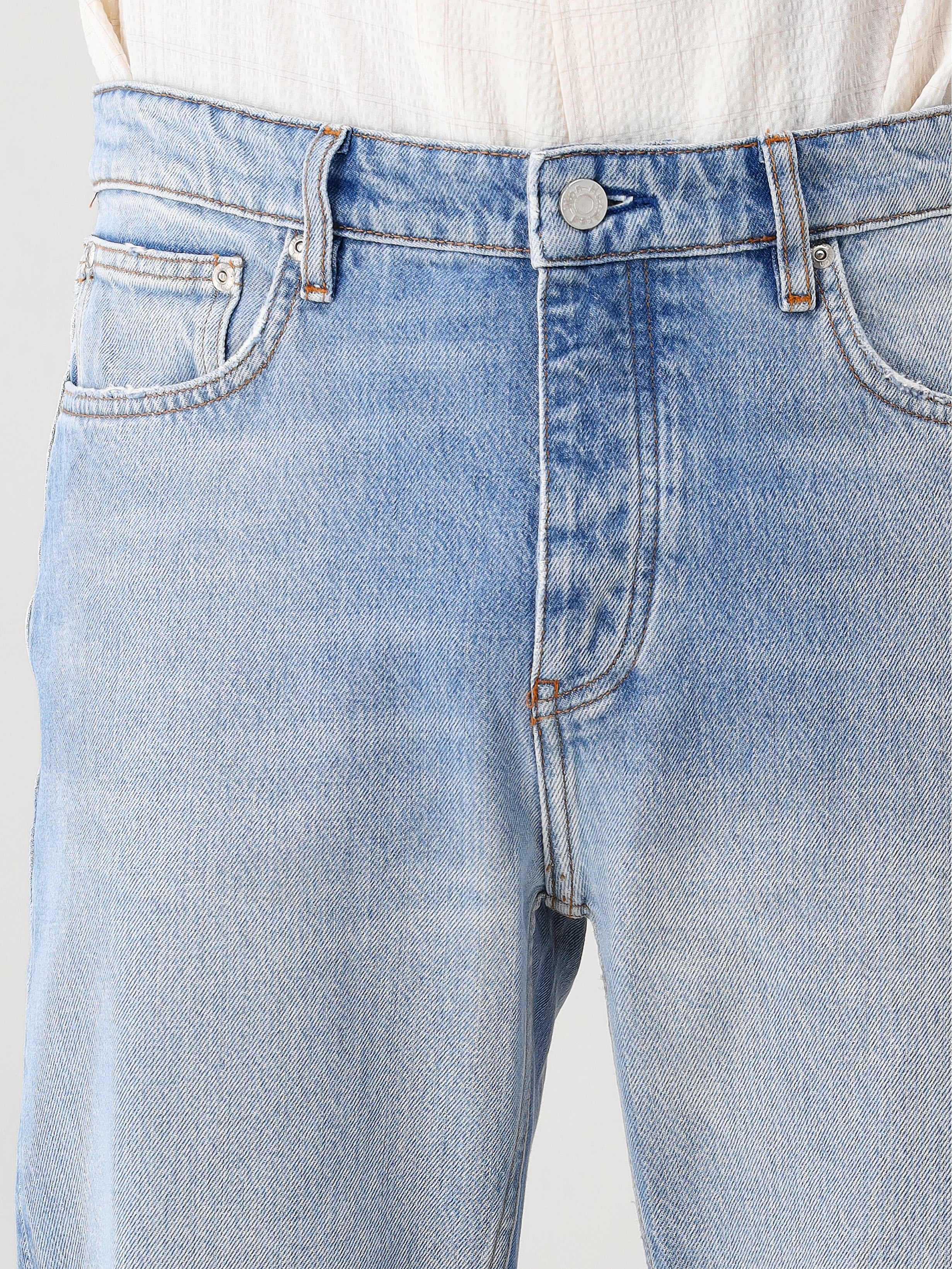 Chek deze blauwe straight leg jeans van het merk Won Hundred, de jeans heeft een lichtblauwe kleur en is gemaakt van 100% katoen. De broek heeft zakken aan de voor en achterkant en de gul sluit met knopen. Op de kontzakken van de broek zie je het bekende Won Hundred detail.