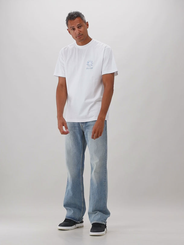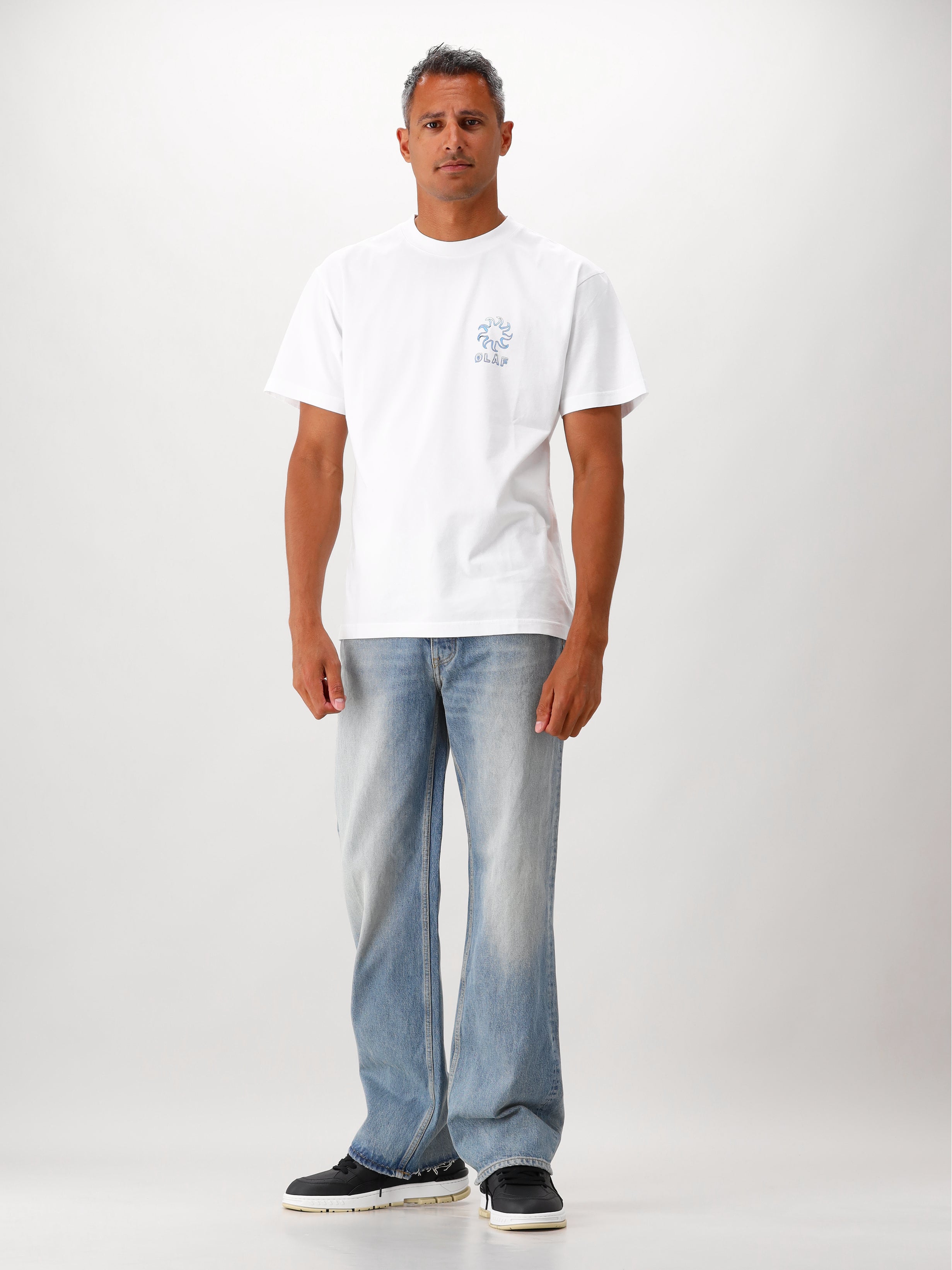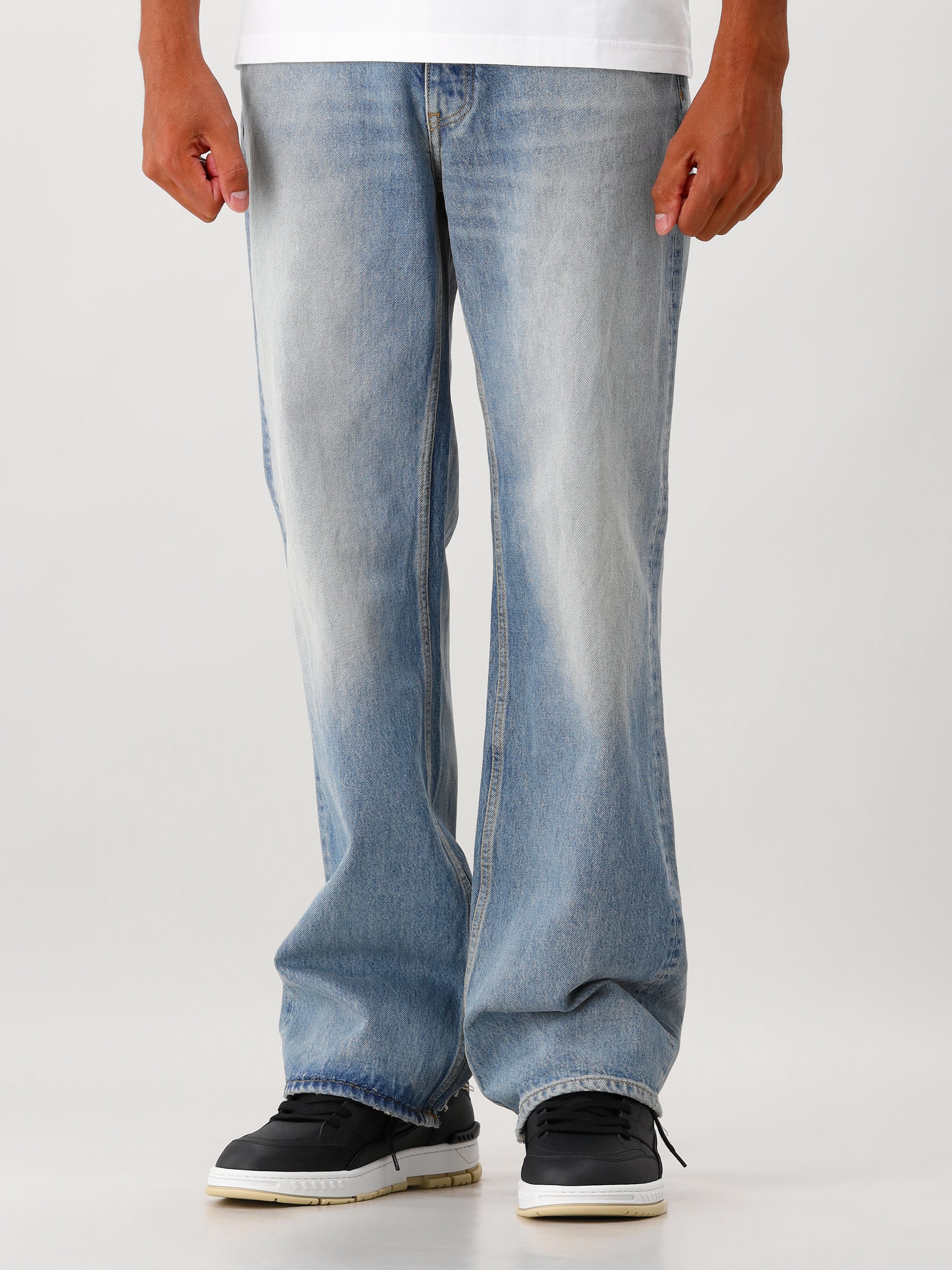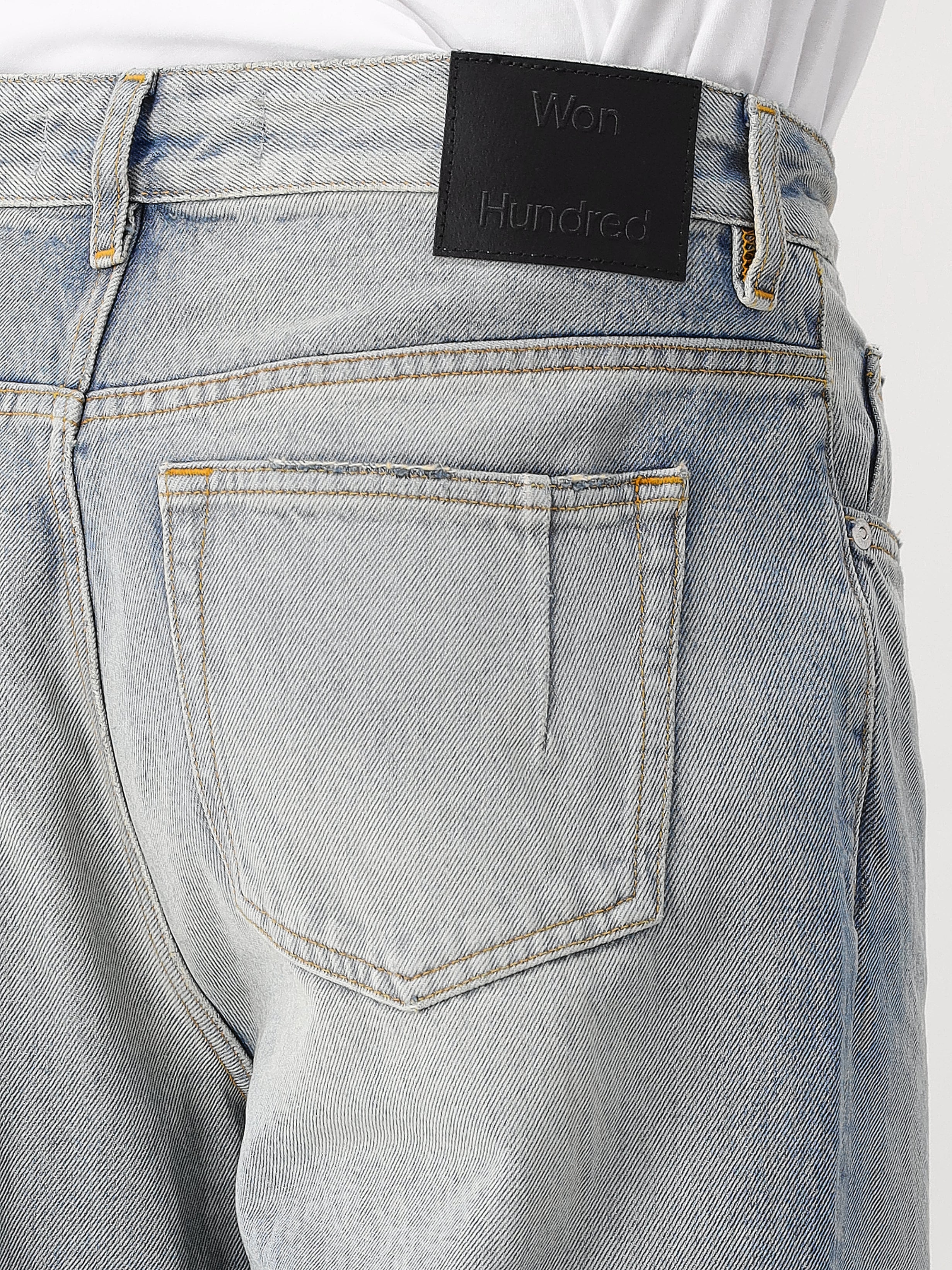 Deze Won Hundred jeans in het blauw heeft wijde pijpen en een lichte wassing. Het leren logolabel en de kenmerkende dart op de achterzakken benadrukken het minimalistische Scandinavische ontwerp. De jeans heeft vijf zakken, een knoopsluiting en riemlussen.