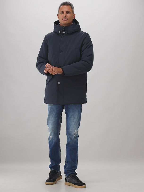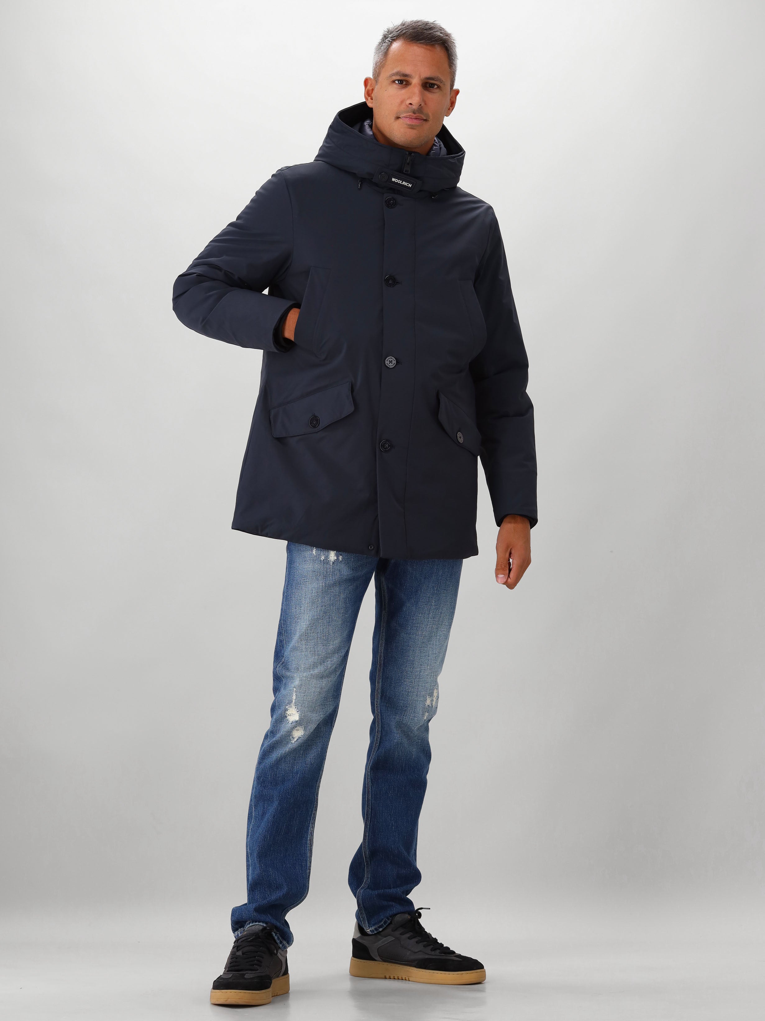 Deze donkerblauwe parka van Woolrich is stijlvol en biedt comfort op de koudste momenten! De jas is gevuld met twee verschillende isolatielagen. Een laag dons en een laag met Primaloft een synthetisch materiaal wat extra comfort in de kou biedt. De jas heeft een tijdloos silhouet, ede knopen met brandign stralen klasse uit.