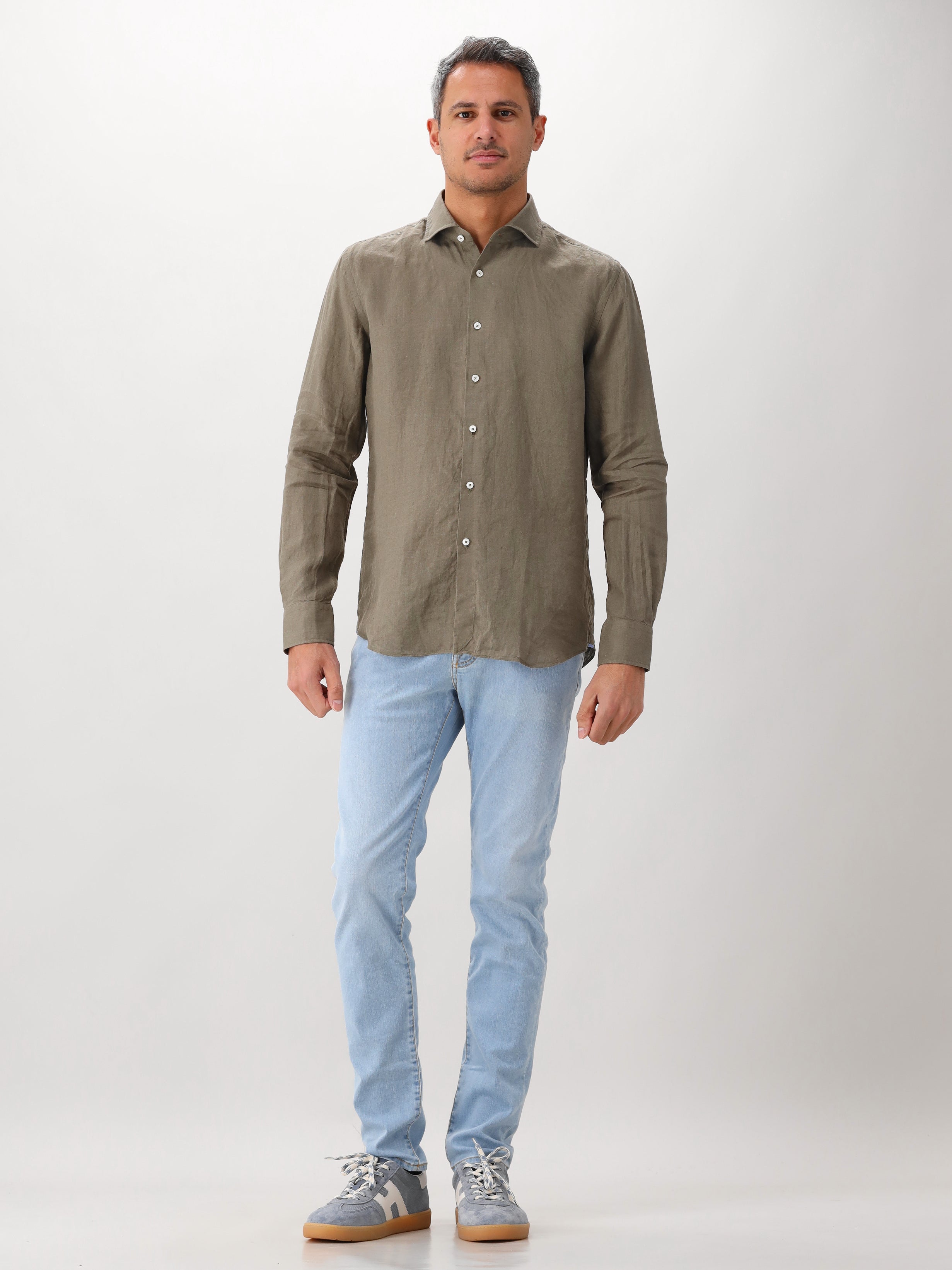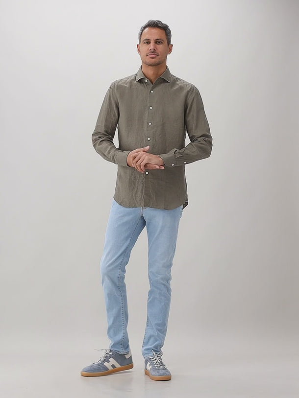 Xacus Linnen Overhemd Groen Tailor Fit 748ML 11297 032