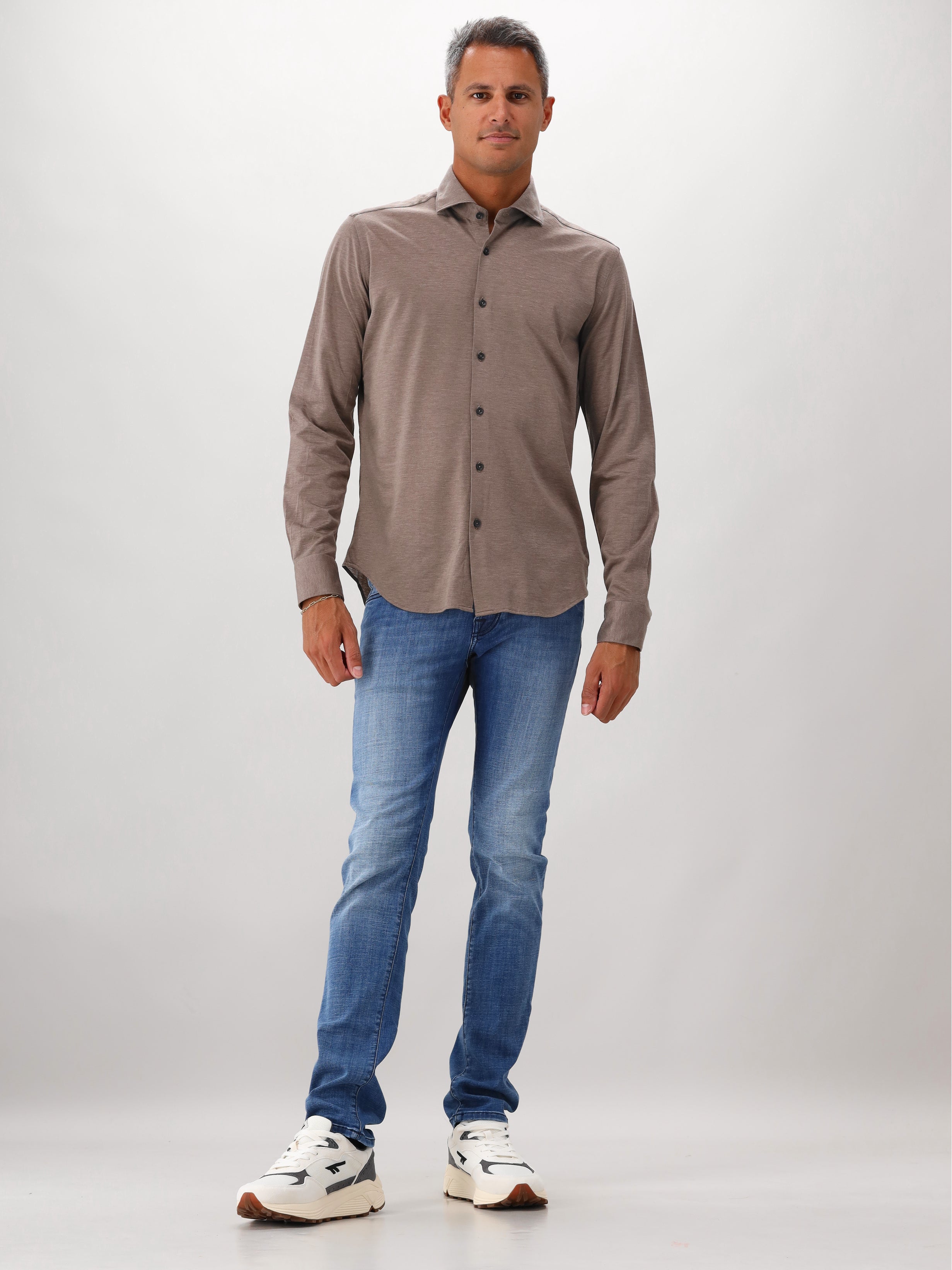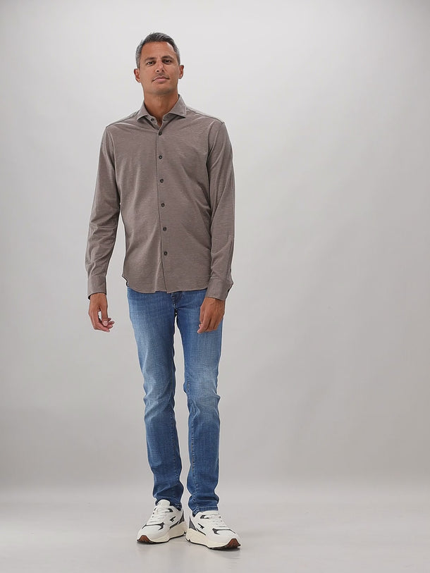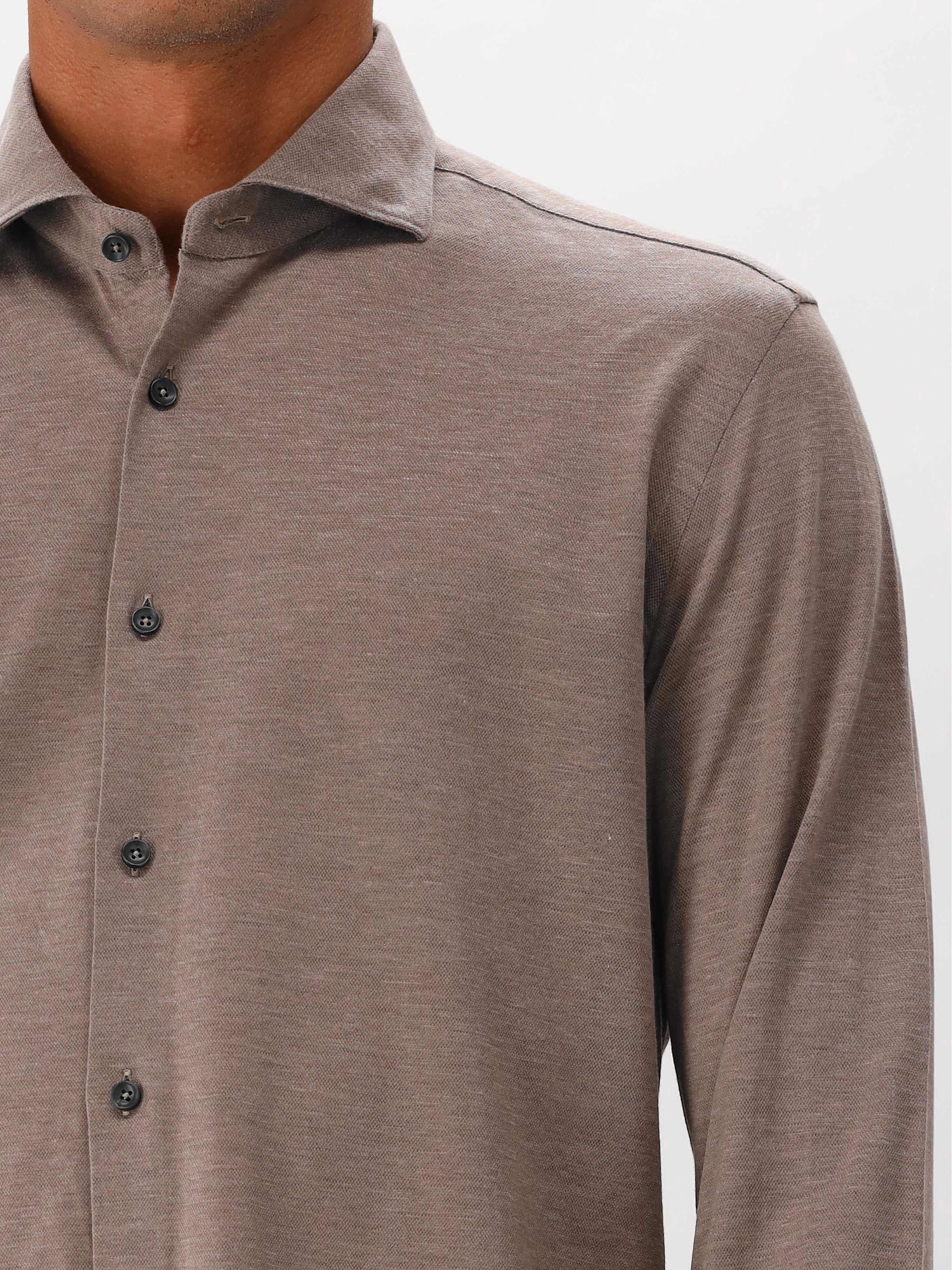 Xacus Overhemd Bruin Knitted Shirt Tailor Fit