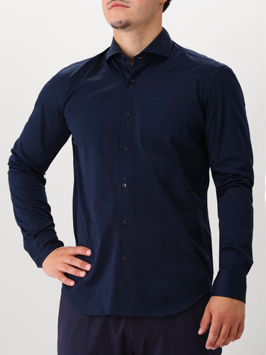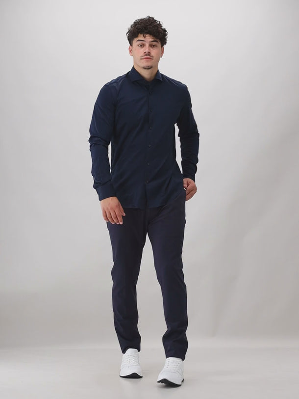 Dit donkerblauwe overhemd van Xacus bestaat voor 100% uit hoogwaardig katoen. Het overhemd is gebreid en heeft zwarte knopen. De donkerblauwe kleur is tijdloos en stijlvol. Het overhemd heeft een getailleerde fitting.